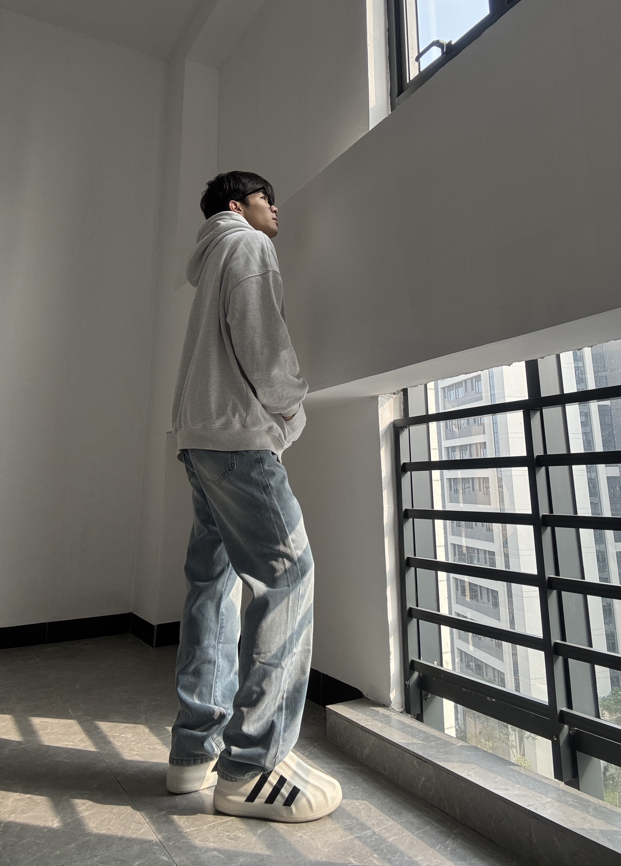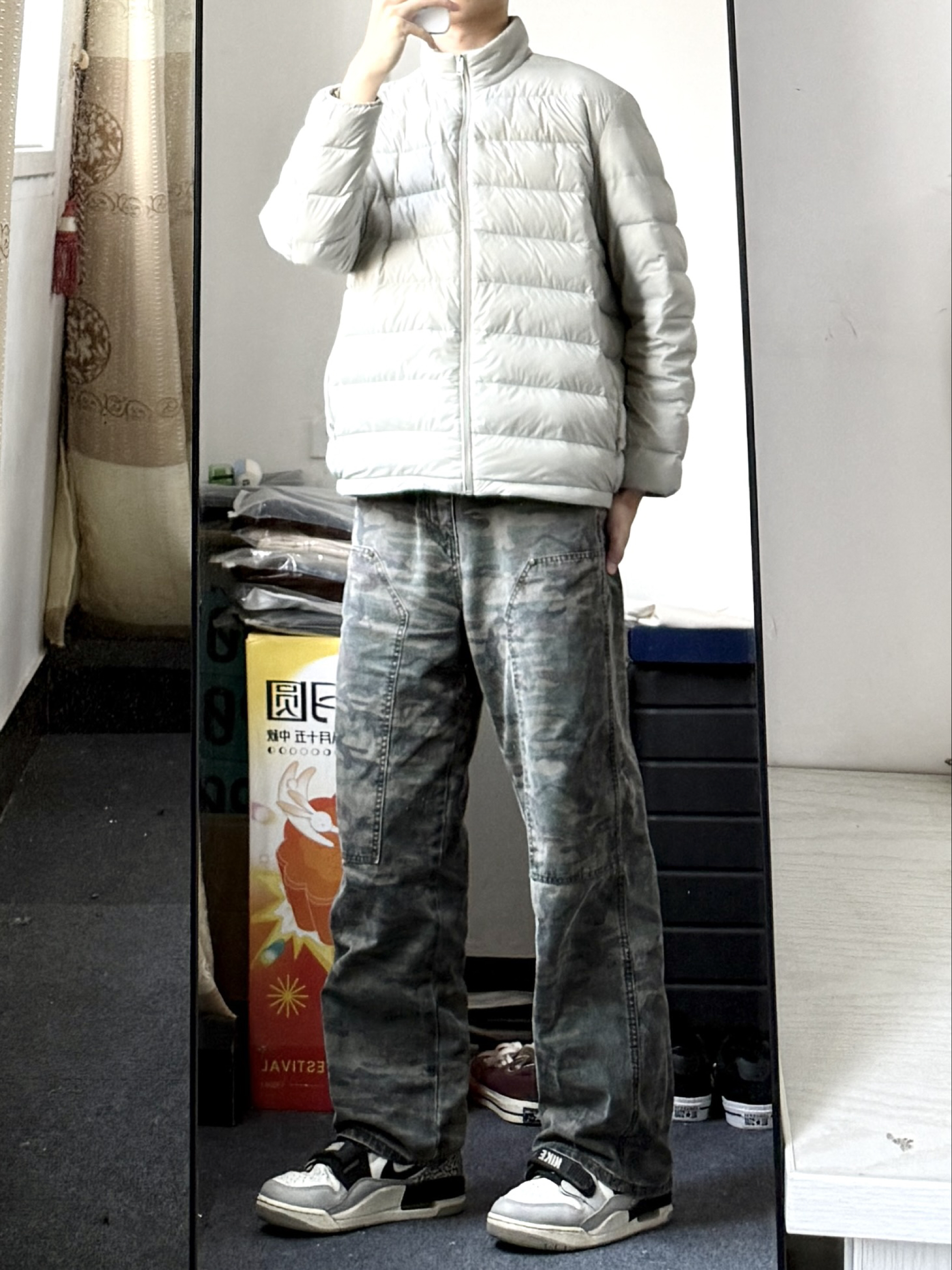 这条浅蓝水洗牛仔裤真的是我的近期最爱!版型是恰到好处的直筒阔腿,不会过分宽松显得拖沓,反而能把休闲慵懒的调调拉满。面料软乎乎的,贴身穿也舒服,水洗做旧的纹理感让裤子更有质感,不会显得单调。