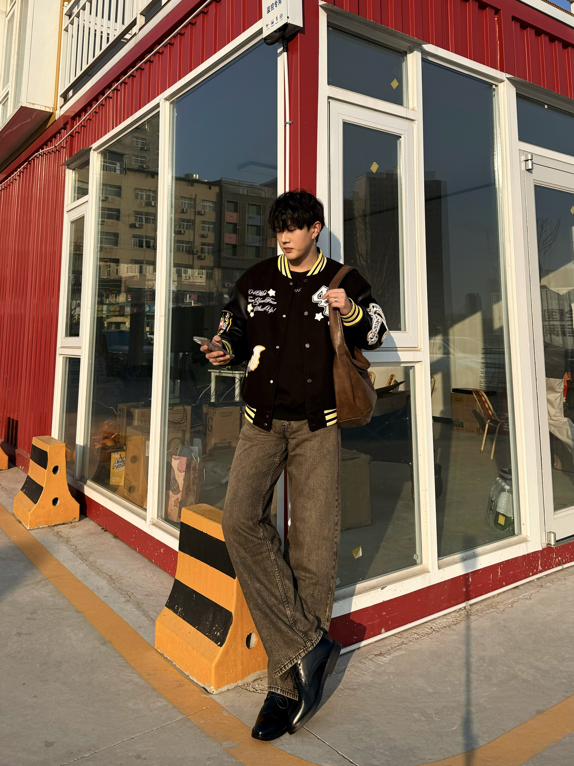 街头想要帅起来依旧得看复古风呀~ 整体黑咖黑拼接撞搭是我的街头公式📝 外套选择的 404MOB 这件黄黑🟡⚫️拼接棒球服,多处的刺绣图案很能吸睛👁️ 下身选择搭的 Levis 的这条直筒牛仔裤 做旧的咖啡上身就自带复古滤镜🍂 不挑腿型的直筒设计,穿上去很显腿细 牛仔面料弹性也不错蹲下去也不会特别紧绷😎 最后一双板鞋或者皮鞋都不错,我选择的一双亮面皮鞋👞搭上让整体质感⬆️ 尺码参考: 🧑🏻1...