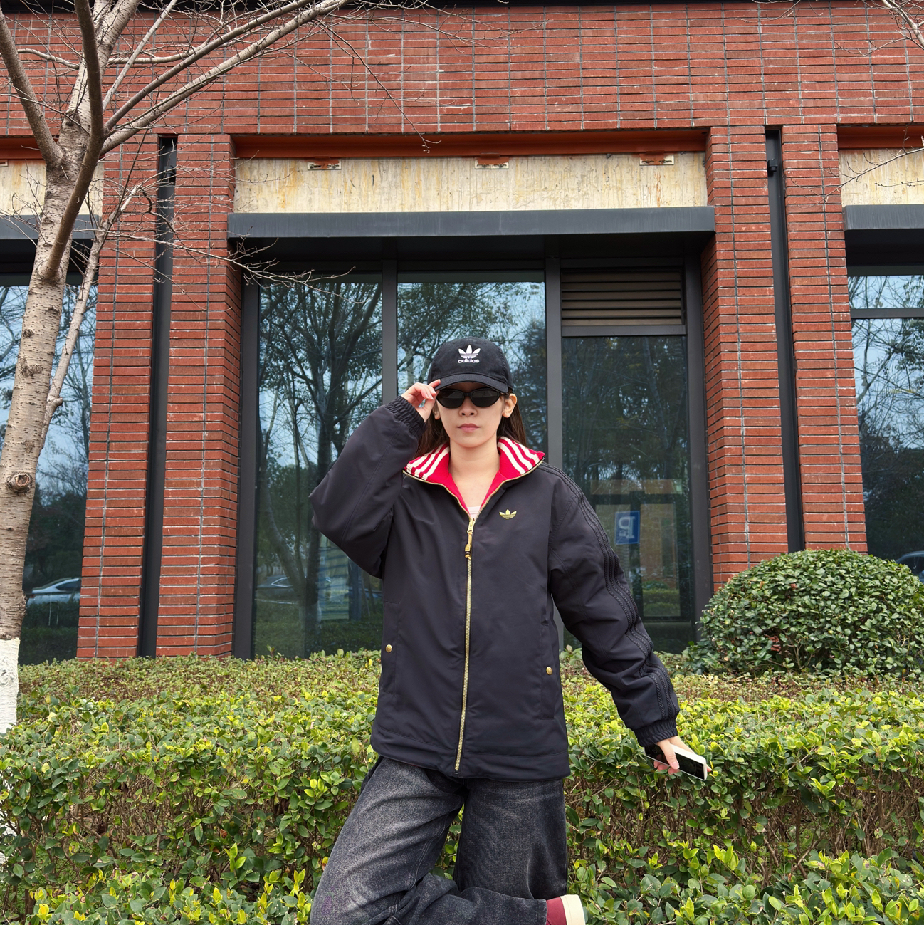 三叶草2025AW双面棉服直接戳中懒人痛点!一面黑+金标酷到没边,配牛仔裤就能炸街;翻过来红白条纹自带节日氛围,搭卫衣秒变松弛感潮人。 落肩袖裹得暖还不显壮,金色拉链细节直接拉满质感。通勤/逛吃/约会一件通杀,冬天的衣柜“省空间KPI”靠它完成! 图源网络,侵删