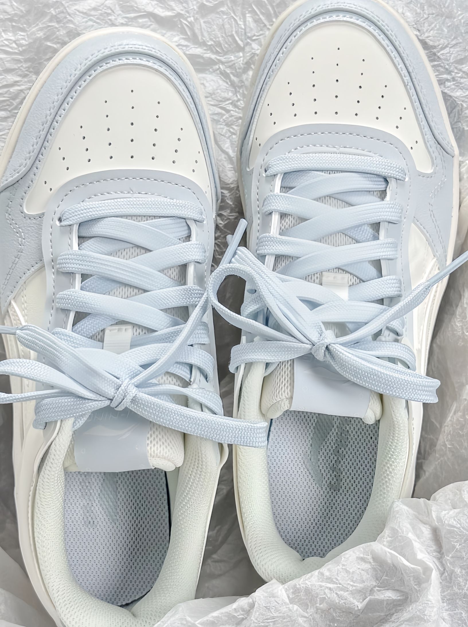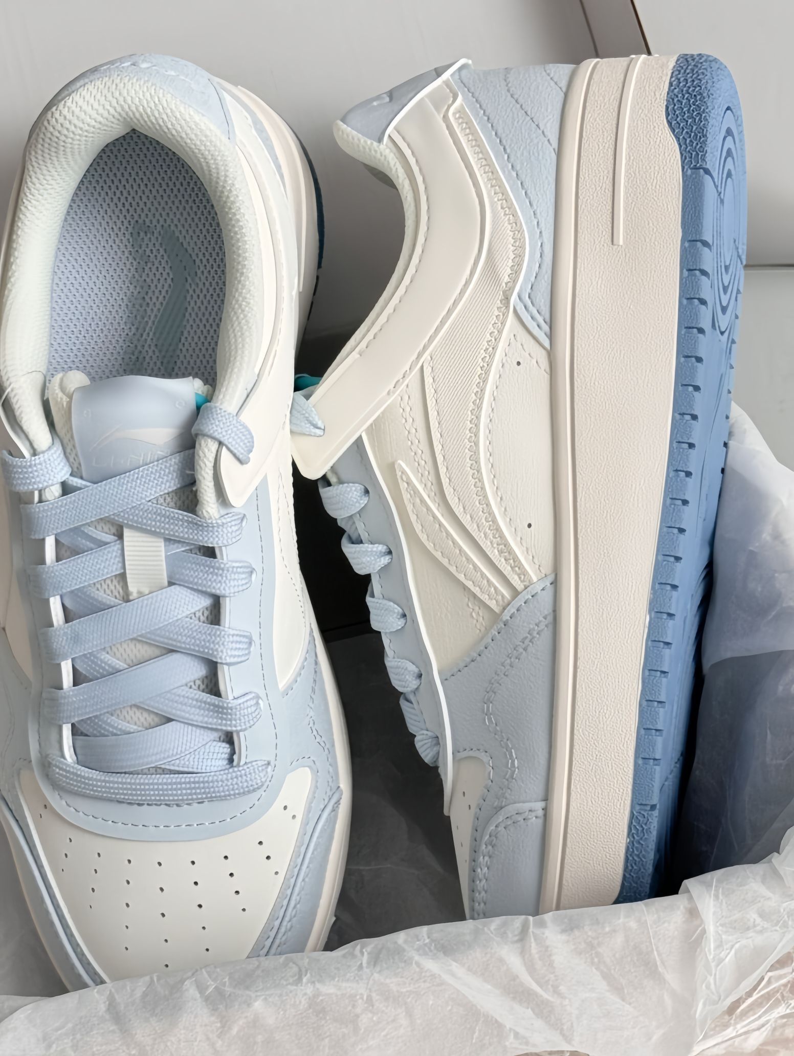 李宁天迹~这跨年板鞋还不错呀!!! 配色😍海盐蓝 美我心巴上啦 马上就是圣诞节🎄啦 送闺蜜也很🆗啊 女孩子👧🏻应该很难拒绝一双这样的板鞋叭 穿上清清爽爽的感觉😎搭配牛仔裤也是OK的 拍照📸也出片的嘞 出游可以🉑穿 上脚🦶蛮舒服 不会磨脚啥的
