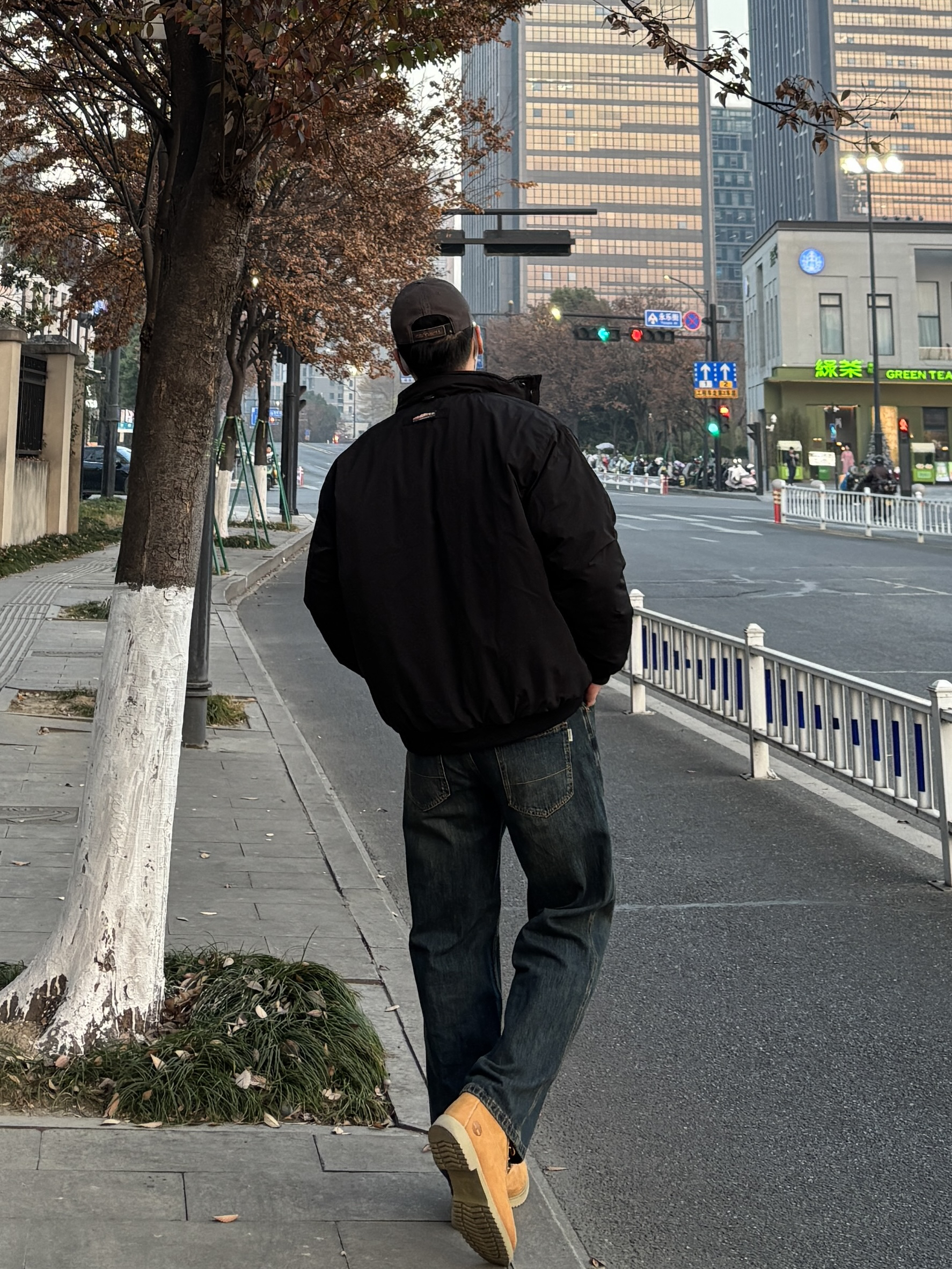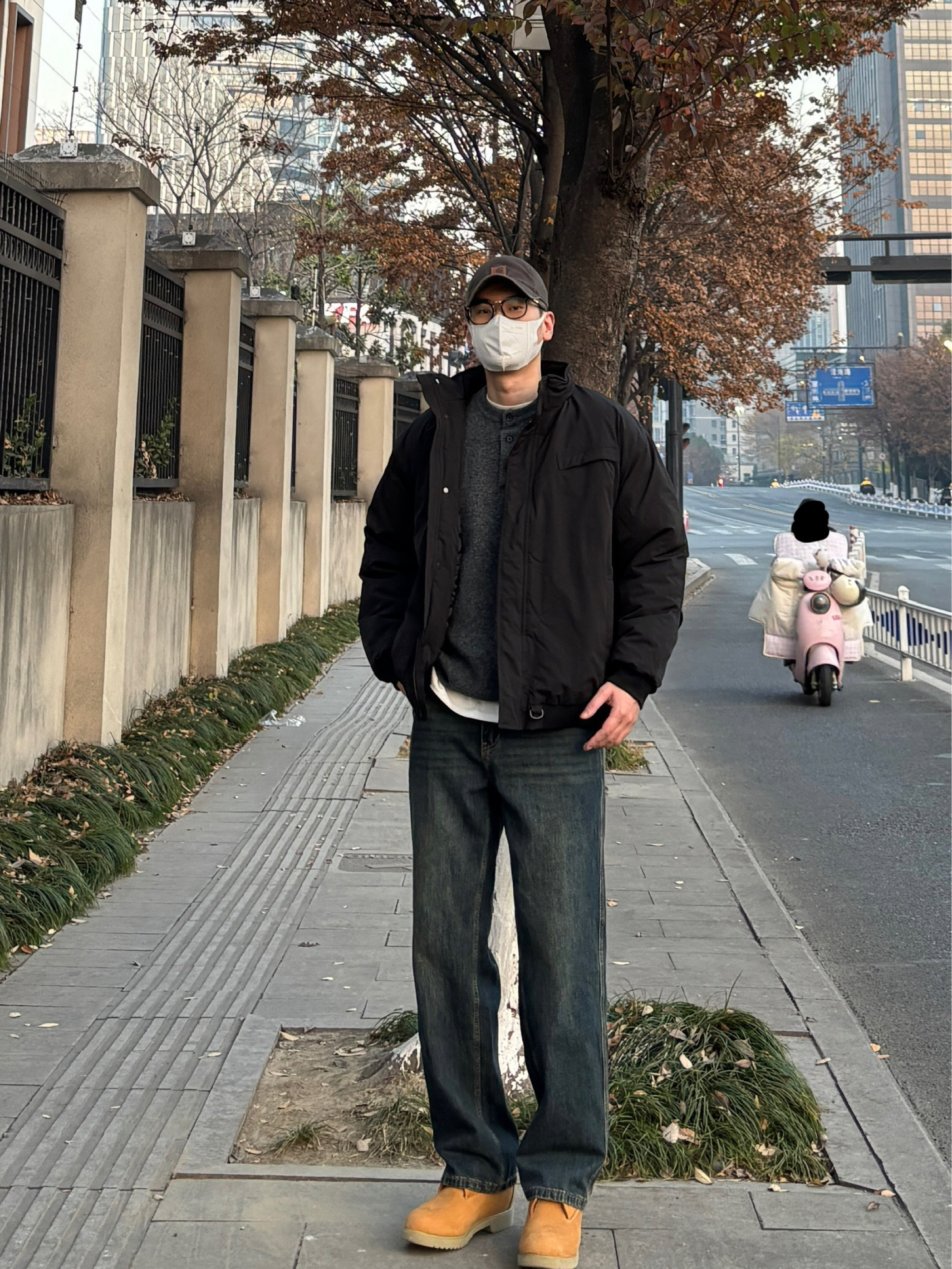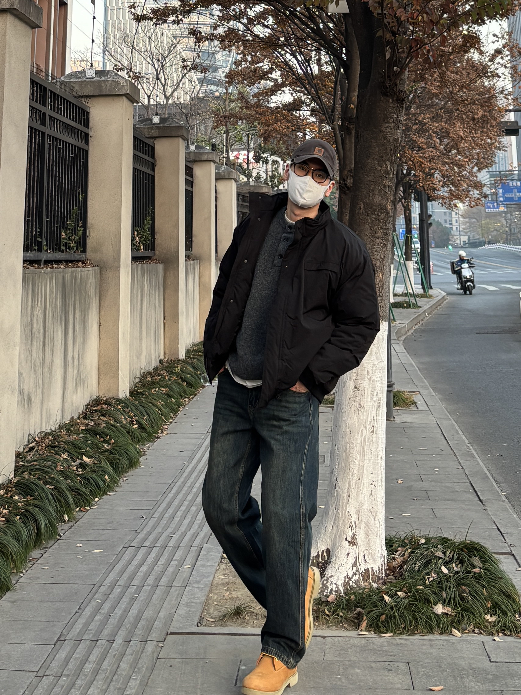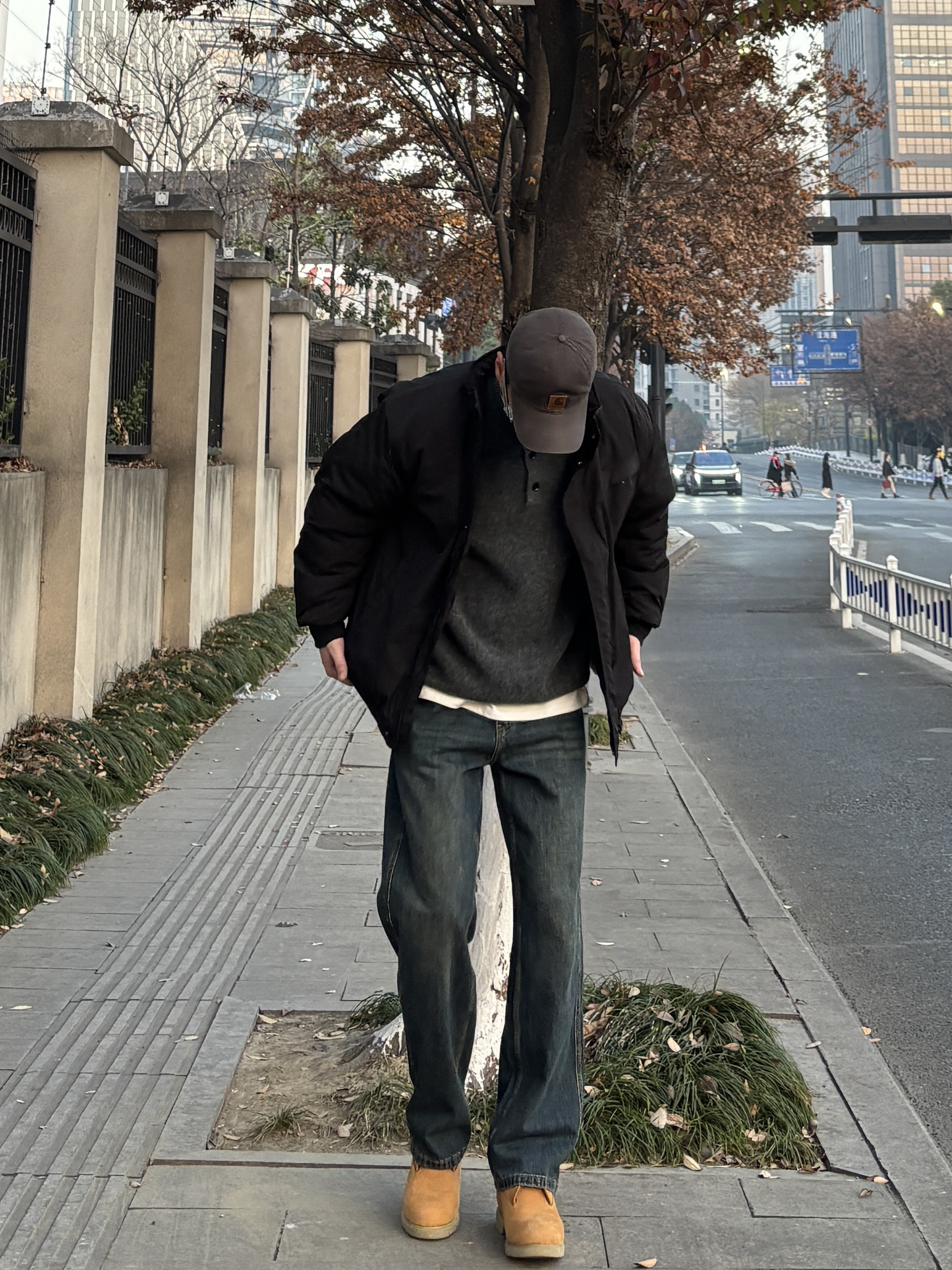 最近在尝试“基础款叠穿”,发现深色系真的不容易出错,你们冬天会优先考虑保暖还是风格呢? 黑色立领工装棉服是衣橱里的百搭款,内搭灰色亨利领毛衣形成深浅层次,怕冷的话再叠穿一件白T,领口露出的白边算是无心插柳的小细节。下装选了直筒水洗牛仔裤和复古工装靴,这样一身真的简约利落还硬朗感满满👍 - 今日穿搭 衣服裤子:NICE LILI 鞋子:timberland