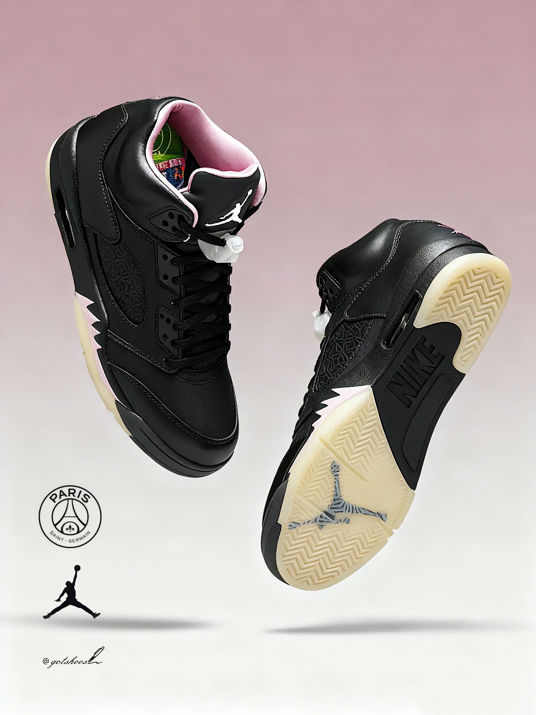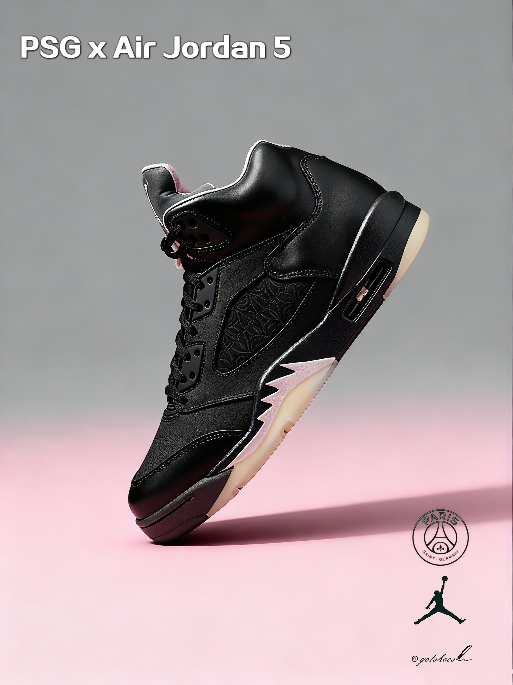 在先后推出高帮与低帮版本后,PSG 再度选择 Air Jordan 5 作为联名蓝本,无疑证明了其对该鞋型的偏爱。恰逢 AJ5 三十五周年,这款全新联名也以不俗的设计回应了期待。 鞋面一改常规,采用格纹织物与皮革的混搭设计,侧边网眼内隐藏的 PSG 徽标细节感十足。格纹织物与皮革拼接的鞋面很有复古质感,隐藏徽标设计细节控必爱。而真正提升整体规格的,在于其鞋垫的出彩设计,成为点睛之笔...