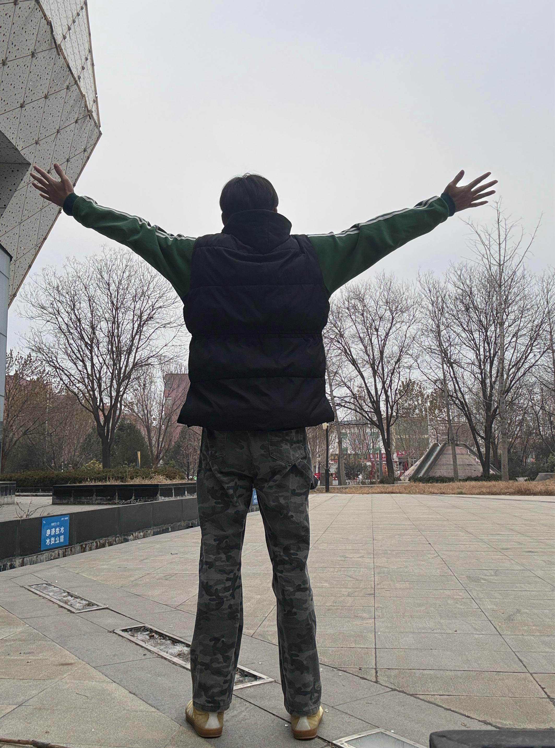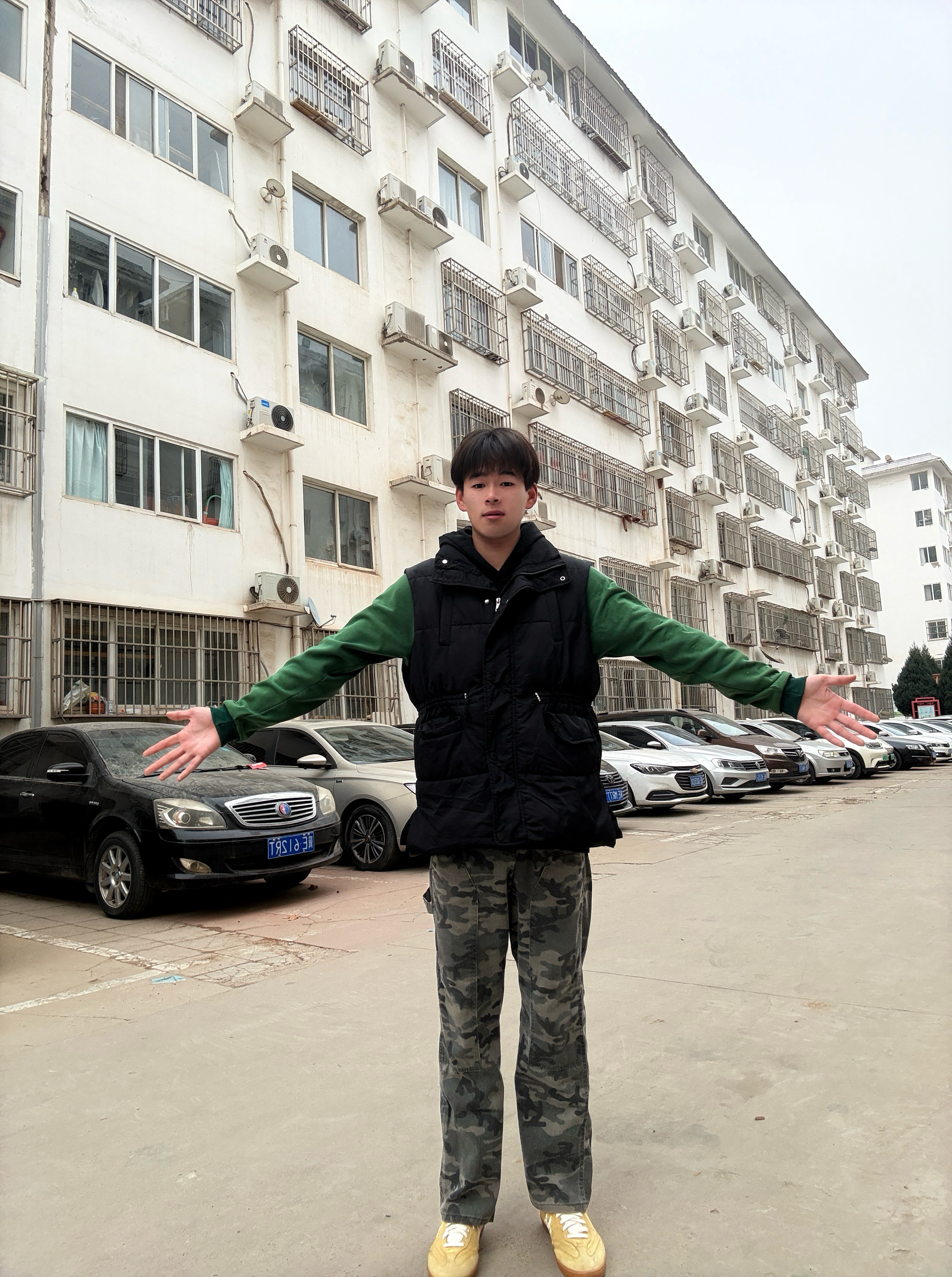 家人们,分享一套超适合秋冬的日常穿搭! 上身选了黑色棉马甲叠穿绿色加绒卫衣,保暖又有层次感,马甲的版型很挺括,不显臃肿~ 下装搭了迷彩工装裤,直筒版型超藏肉,对高个子超友好,裤长也刚好不会堆脚。 鞋子配了姜黄色板鞋,和整体的暗色系撞一下,瞬间提亮整套搭配!
