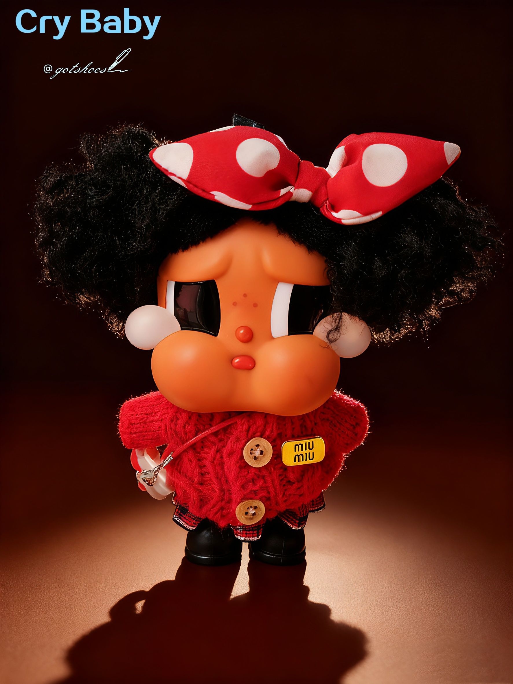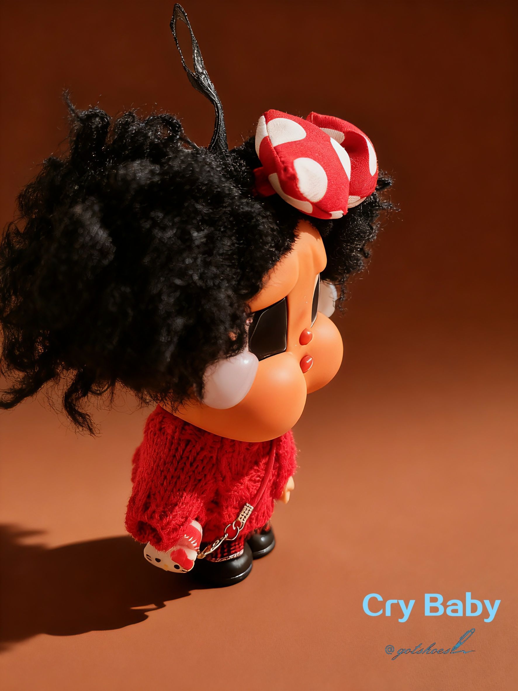 带着眼泪的萌娃-crybaby,虽然原本是穿着比基尼👙,但给她换上毛衣后更加萌! #哭娃海边度假系列 #泡泡玛特哭娃海边度