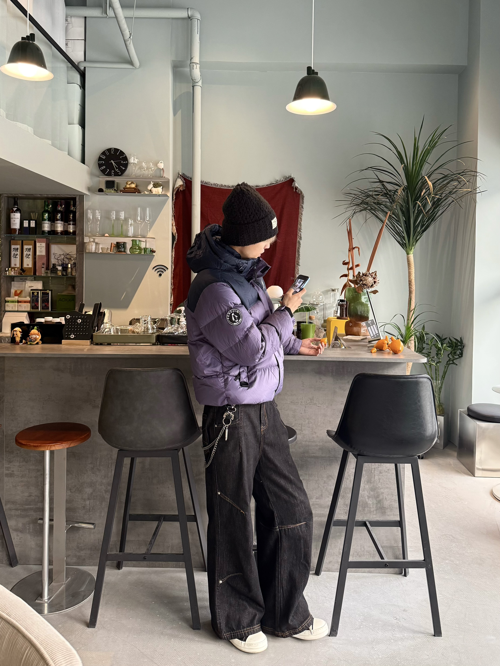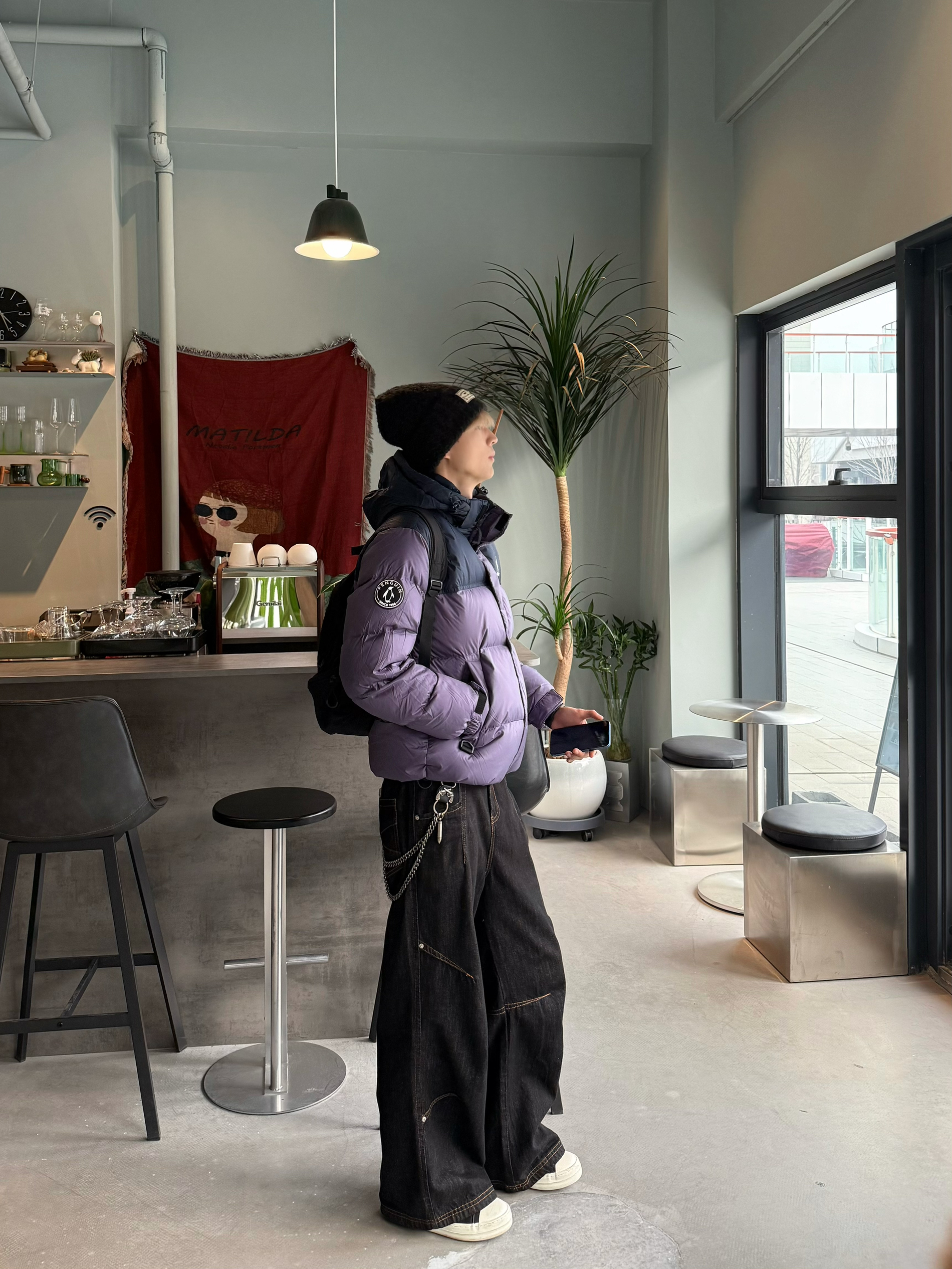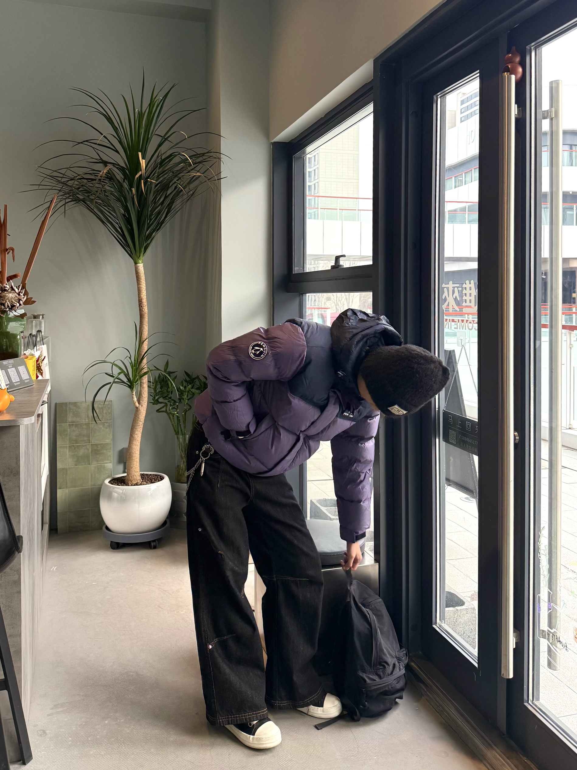 东北零下十七度🌨️是真顶不住 出门手一露 没一会就僵了🥶 下午有点馋果茶了 出去搞一杯 你别说 喝着茶🍶看着街景 还挺悠哉的 今天穿的都是低饱和色系⬇️ 紫黑藏青撞色羽绒搭配上阔腿黑牛 250克的厚重✅刚好应对这该死的凉风 临走蹬上大黄靴 背个双肩包 发现这种随时能出门的随意劲儿 反倒最舒服😌 就这样喝着茶 看看街景 好像冬天也没那么难熬✌️