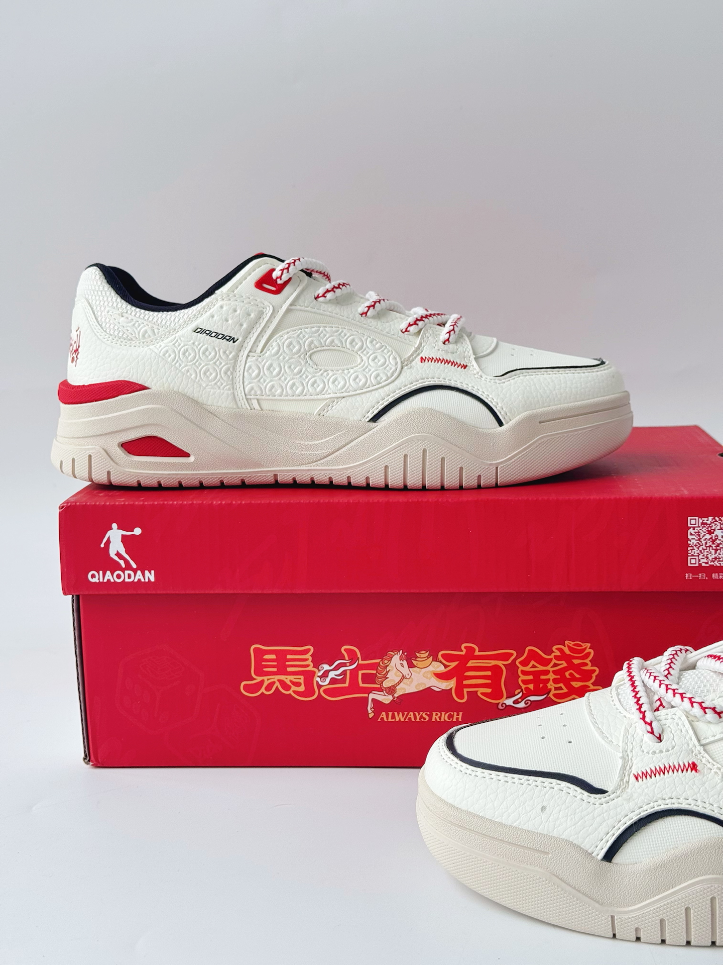 中乔这双新年配色的米白 + 红板鞋太戳我了,低饱和的色调搭啥都不突兀 —— 配牛仔裤是休闲通勤风,搭运动裤直接变球场帅崽,日常、运动切换毫无压力。 上脚比我想象的轻,鞋型裹脚但不挤脚,走一天路脚底也没那种酸累感,鞋底的支撑也够稳。细节里的小挂坠还挺有新年氛围感,低调又有点小设计感,属于越看越耐看的款。 这双算是我近期挖到的 “多场景百搭选手” 了! 你们新年的新鞋安排上没?@乔丹QIAODAN官方...