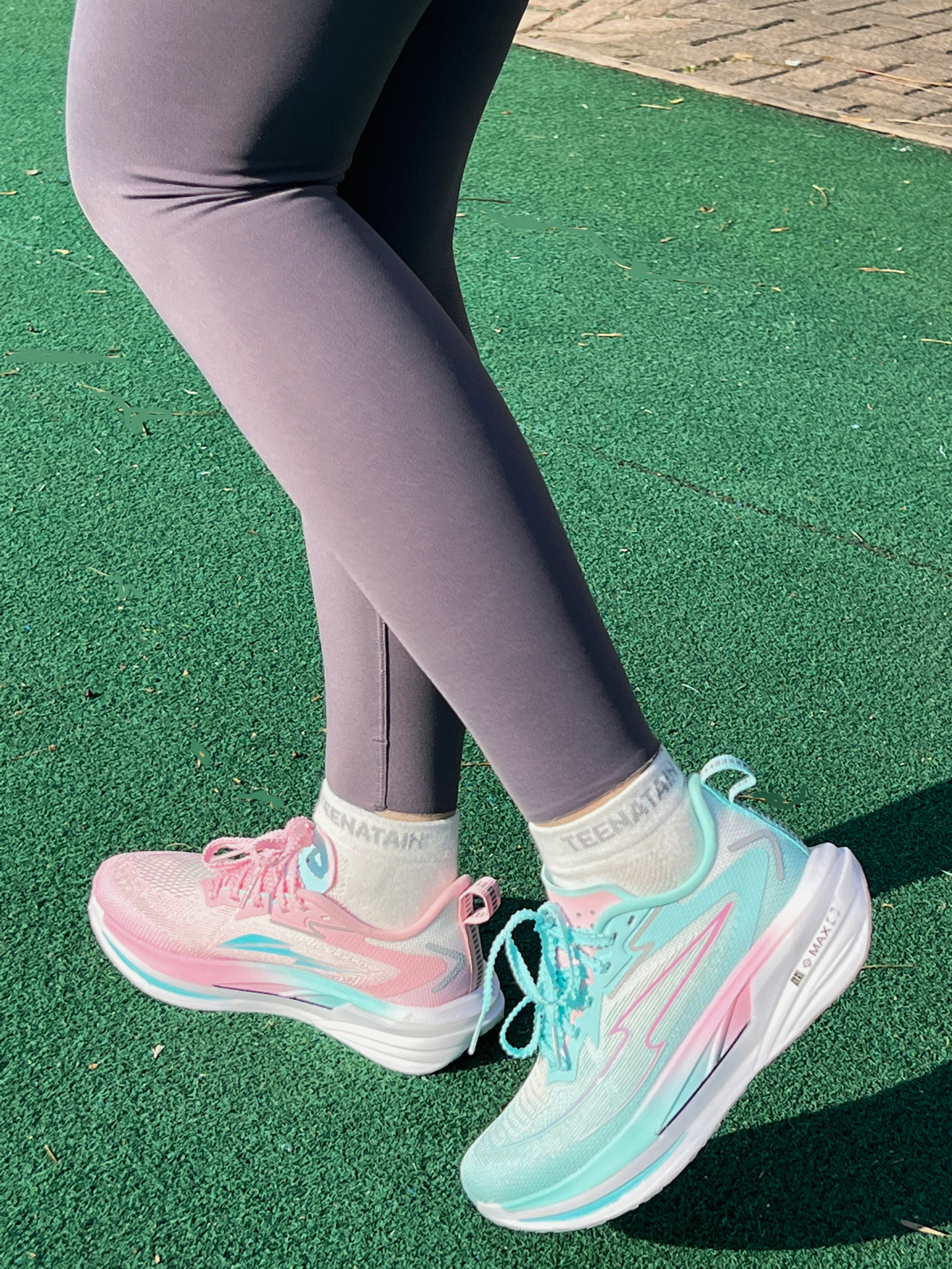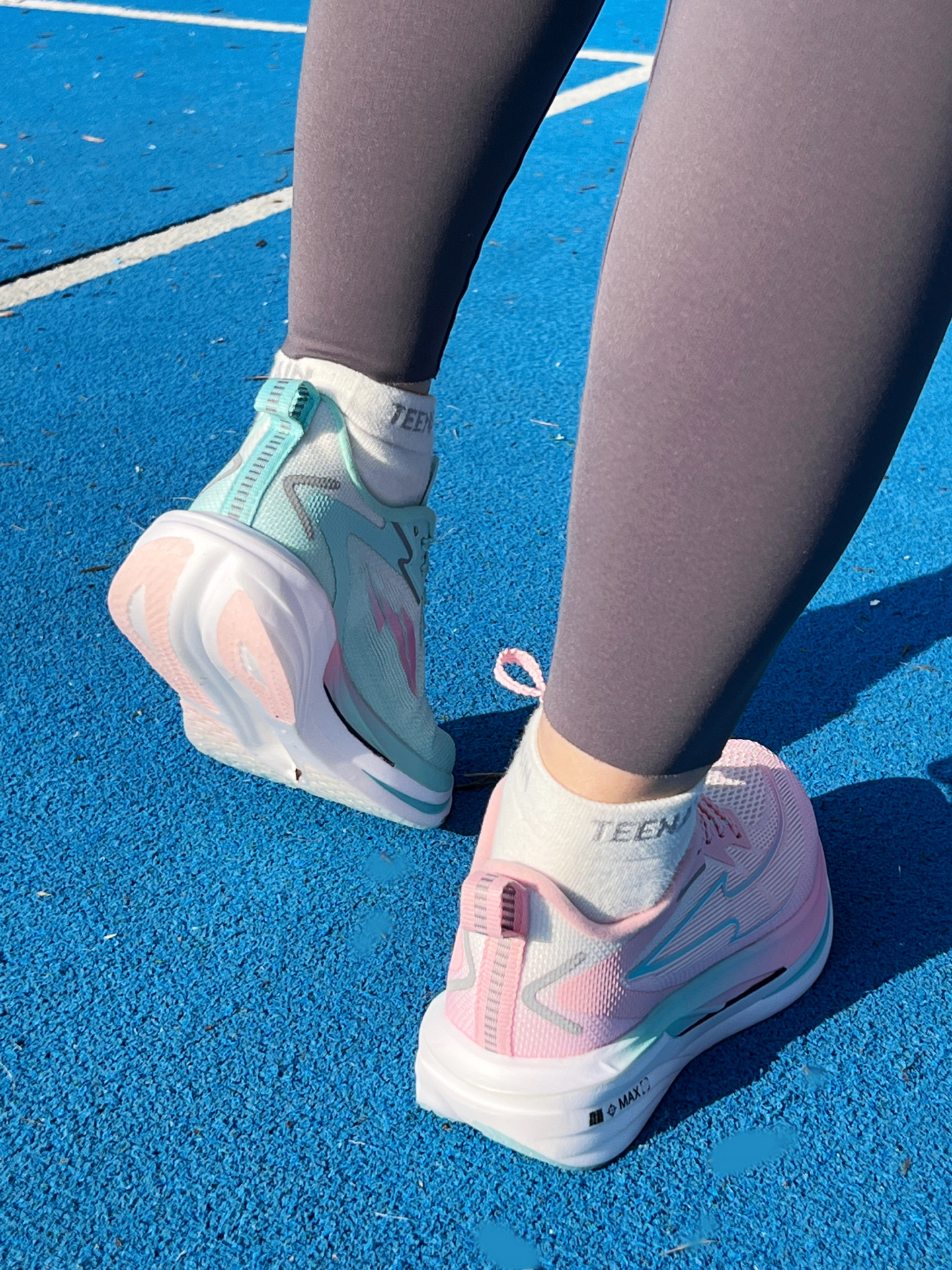 👟到手一双超甜的粉蓝撞色的高颜值跑鞋——这少年与山豹变1.0。 🎨先说颜值,整体粉与浅蓝的渐变裹满鞋身,鞋侧带有流线纹路在阳光下泛着细闪,满满的全是青春的味道! 🏃🏻♀️上脚的第一感觉——「轻」。鞋身自测38码200多的克重,全掌T700的碳板对脚掌的支撑不错,弯道的推进感与支撑感,尤其是CPU大底抓地还是非常稳得,让人踩上去很踏实。 龘MAX中底很软有踩云朵的感觉,刚上脚稍微需要几天踩开才会更...