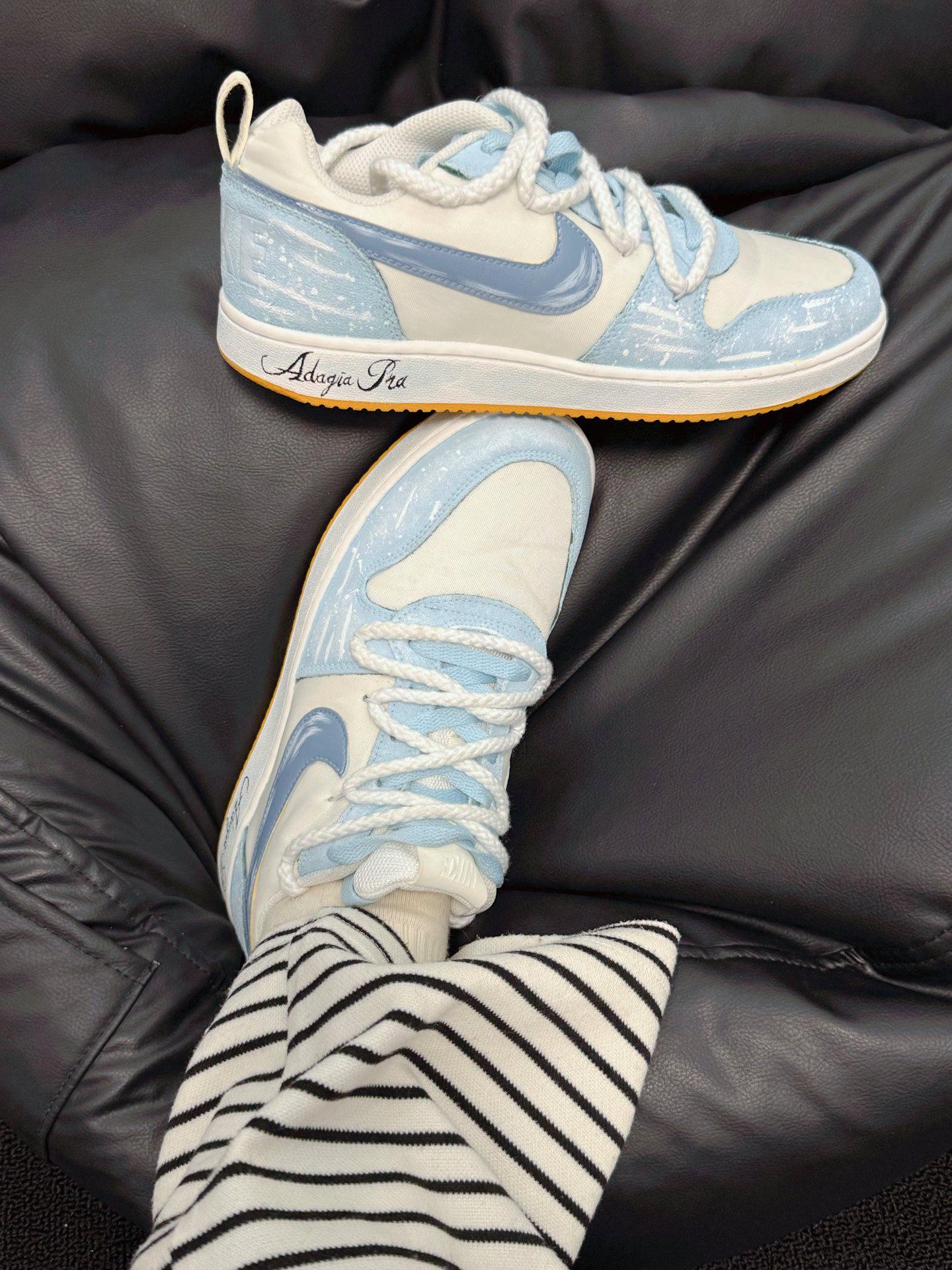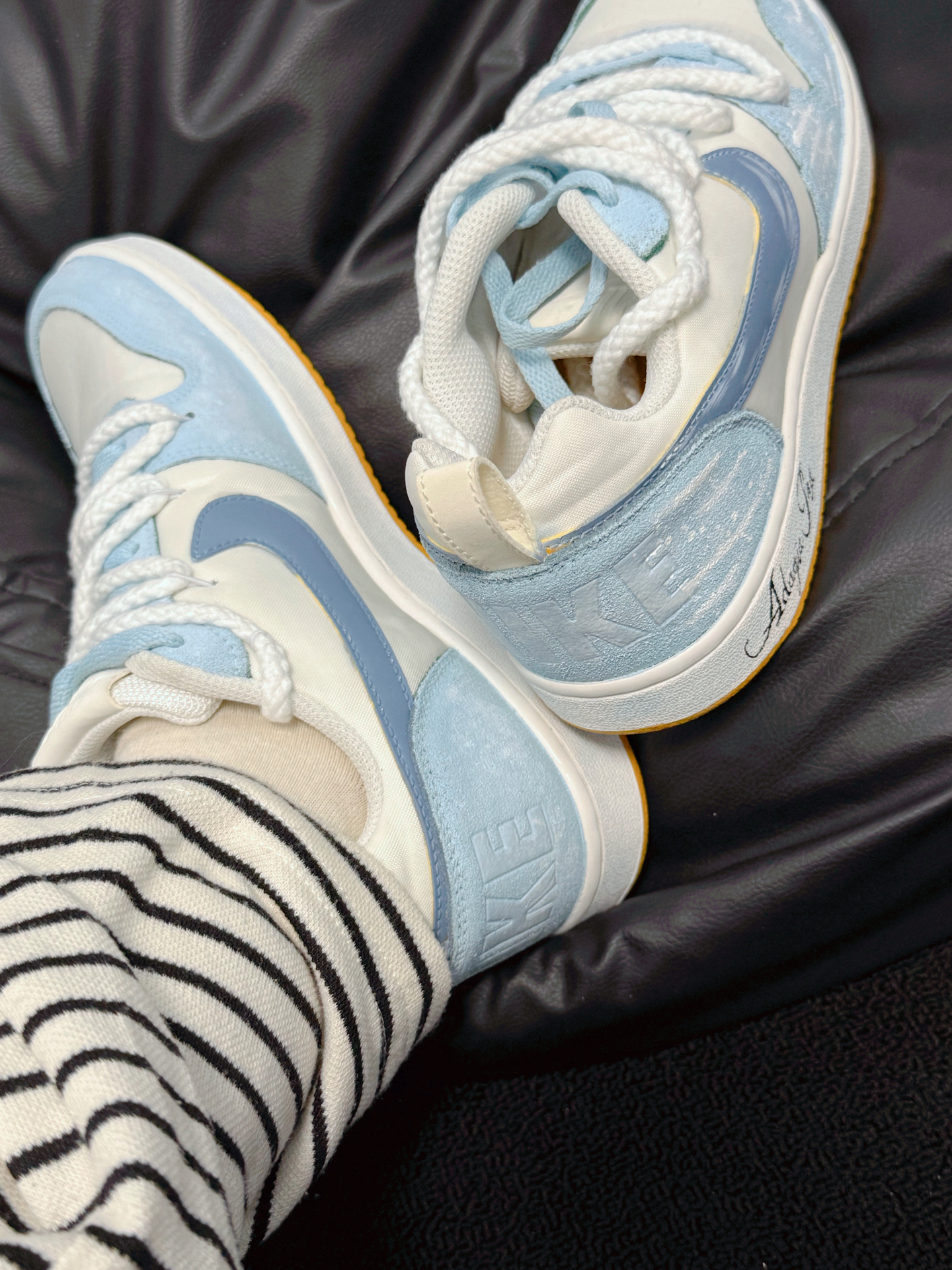 是谁还没收到提前收到圣诞礼物呀~~😌 我的姐妹也太懂我噜!这双Nike定制小板鞋送到我心巴上了❗️[爱心_blue][爱心_blue][爱心_blue]哈哈哈哈!我拥有全天下最好的姐妹👭💗 奶这个鞋子整体是白拼baby蓝的配色,感觉色系很治愈又很清爽,鞋身的手绘涂鸦细节超有质感,不是那种廉价的印花,摸上去还有肌理感~鞋跟的手写体签名设计也超戳,感觉是属于我的独一无二😝 试穿了一下上脚踩起来刚开始还...