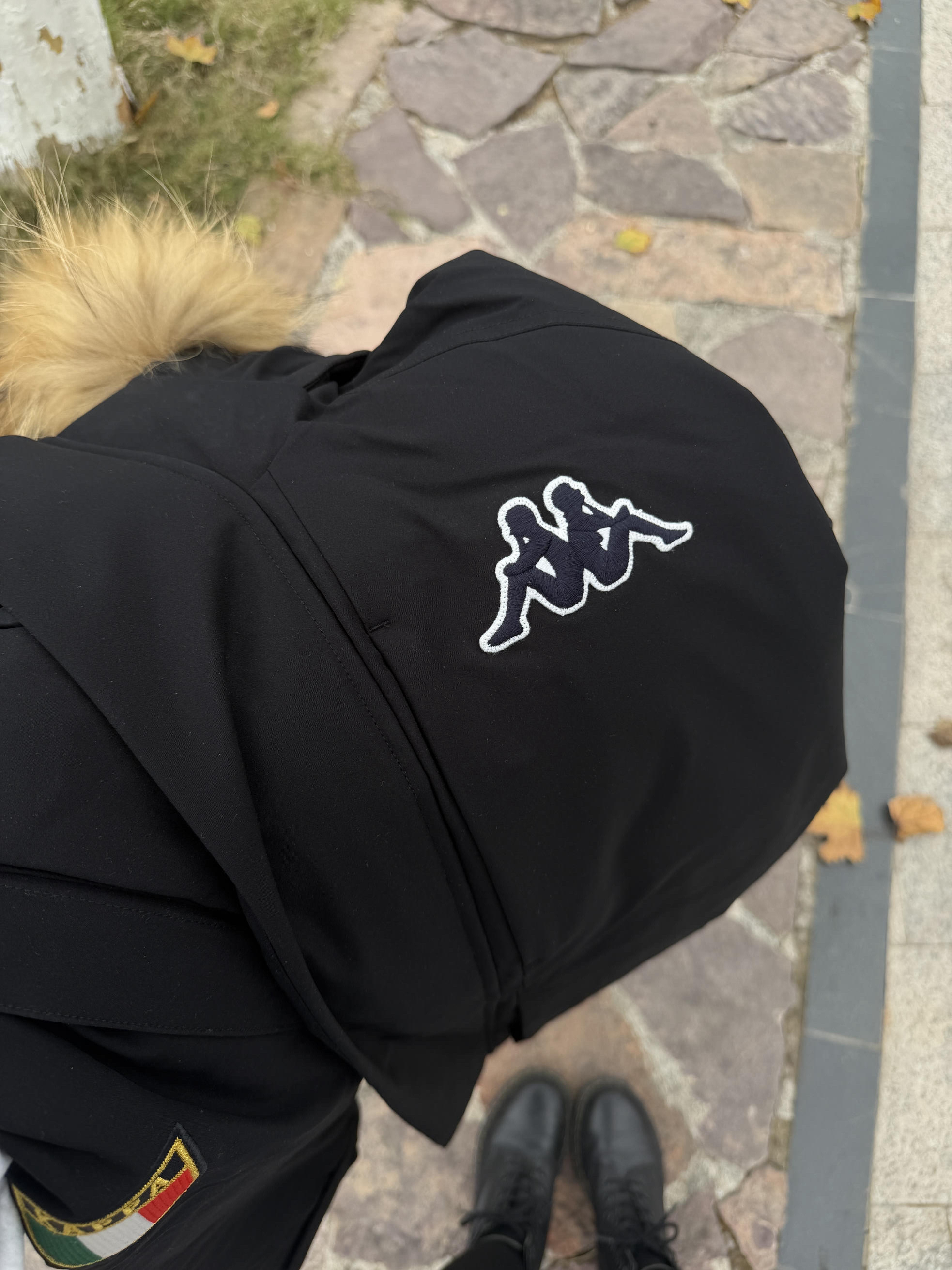 早说卡其棕羊毛羔这么显贵啊 上身版型嘎嘎在线 宽肩直角肩无痛实现 胸前logo很吸睛 背后的大logo也嘎嘎出片 没有隔层上身舒适保暖 163/100上身M码