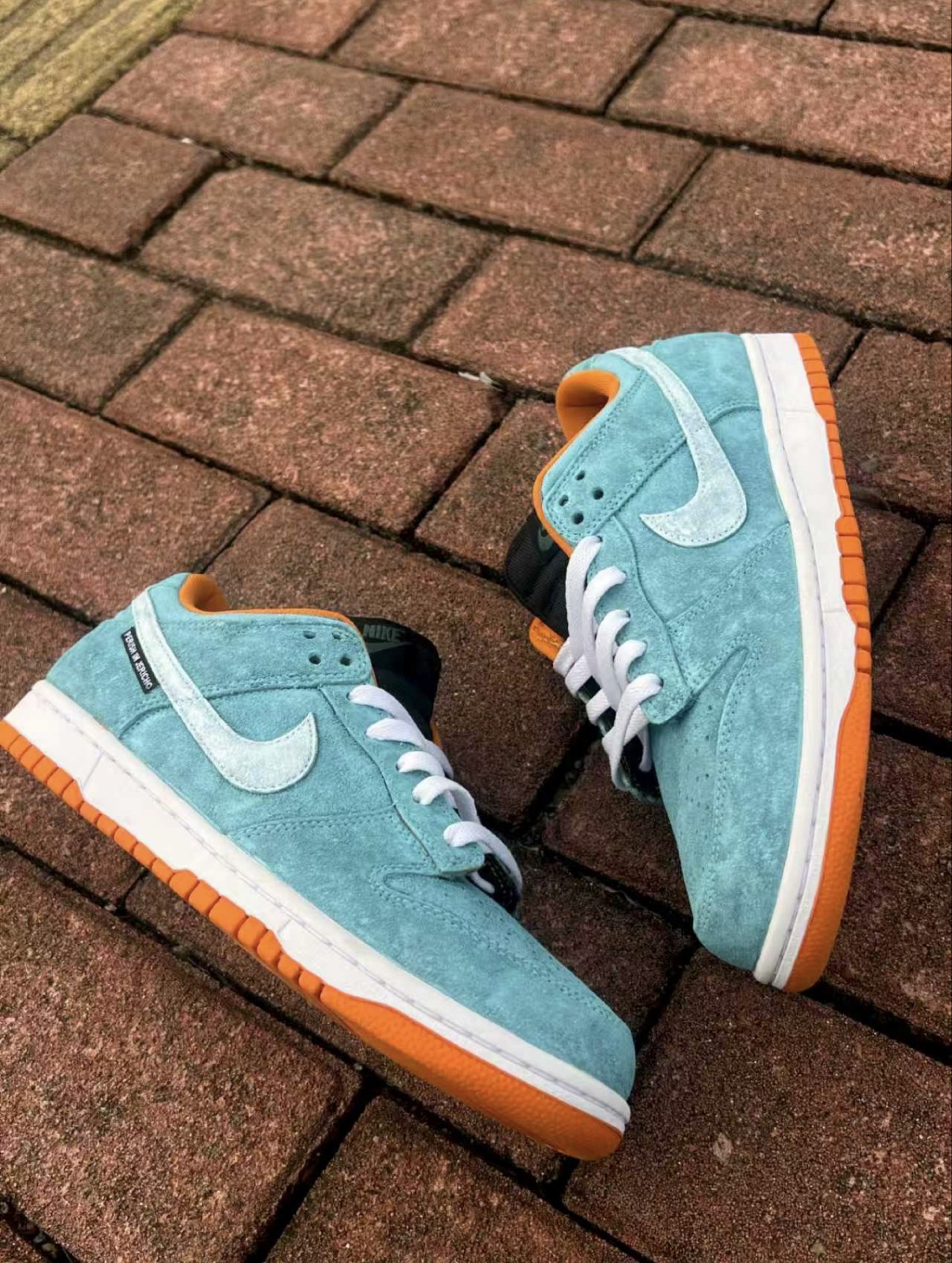 Nike SB Dunk Low ProClub 58 Gulf,真的戳中我对“好看又好穿”的所有期待 浅蓝麂皮的鞋面质感太绝,摸上去是软软的绒感,光线下又带着细腻的光泽,不是廉价的毛糙感;标志性的Swoosh是带点灰度的白,和鞋身的蓝配在一起特别清爽,后跟的“58”小徽章是藏起来的小心思,懂的人一眼就能get联名的专属感。 最惊喜的是脚感,Zoom Air 缓震一点不板脚,下班踩滑板晃一圈、周末...
