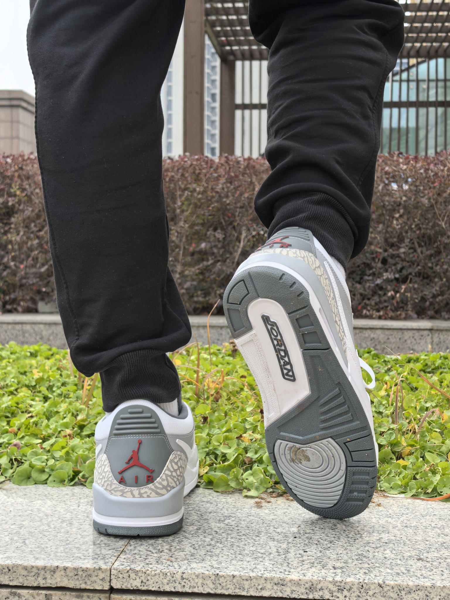 aj312这双鞋被称作“最强三合一”,拼接了Air Jordan 1的鞋头透气孔、飞翼鞋舌标,Air Jordan 3的后跟爆裂纹与可视气垫,还有Nike Air Alpha Force的中足魔术贴绑带,把三款经典鞋款的标志性元素结合。今天穿的这双白灰色上脚是挺舒服!鞋身轻,后跟的气垫踩起来软软的。搭配黑色束脚裤特别搭,平时穿出门不管是逛街还是遛弯都合适,整体太满意了!