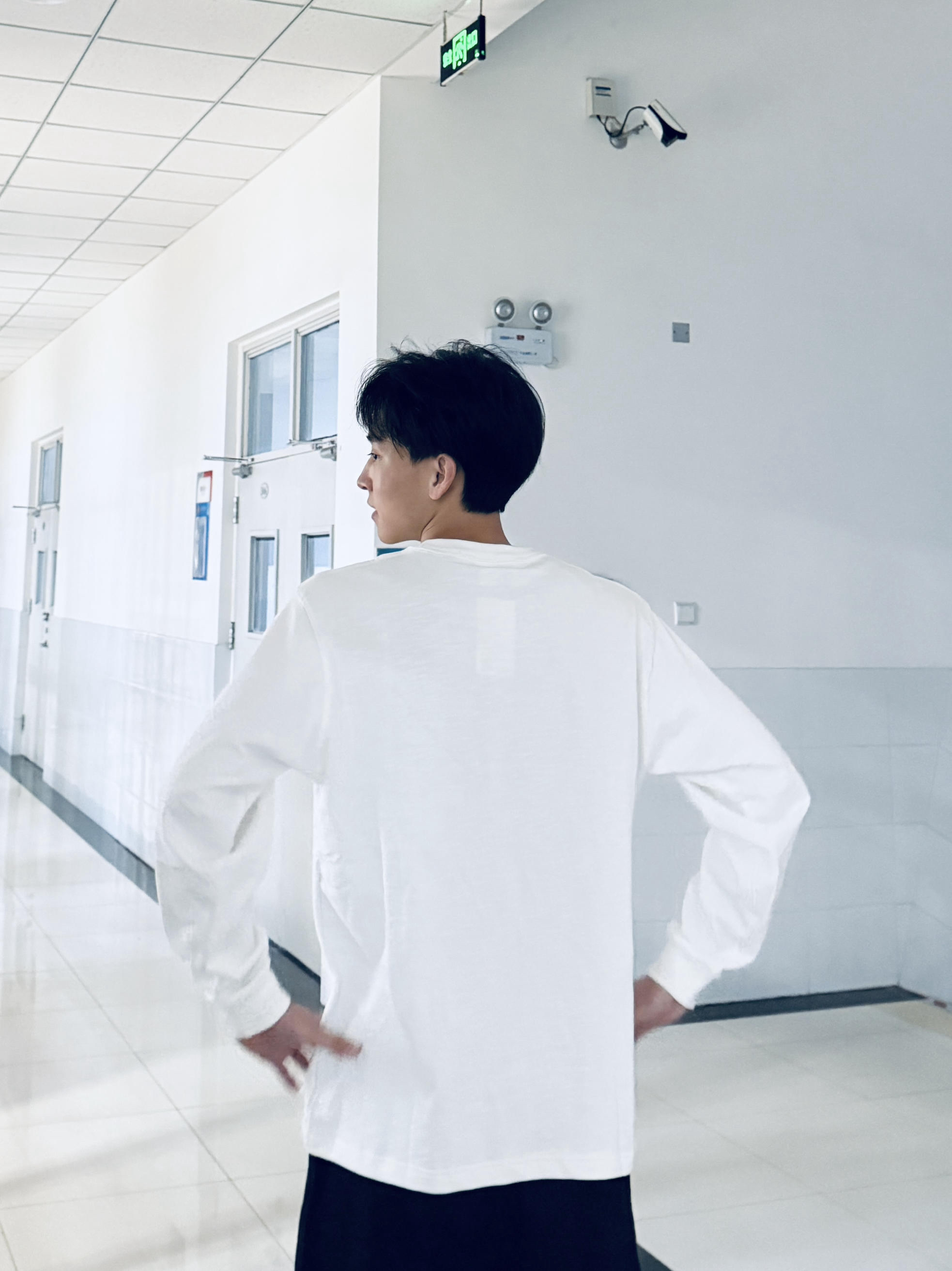 给朋友们分享一件非常好看且百搭的长袖,来自杜克恩家的长袖,白色一个永远不会出错的颜色。整件长袖面料亲肤摸起来柔软舒适,克重符合内搭的标准,潮流时尚单品值得入手。 本人身高183体重70选择2xl正正好,一件白袖搭配一条黑色西裤,穿上它走在校园里,阳光洒在身上超舒服,整个人都自信满满啦