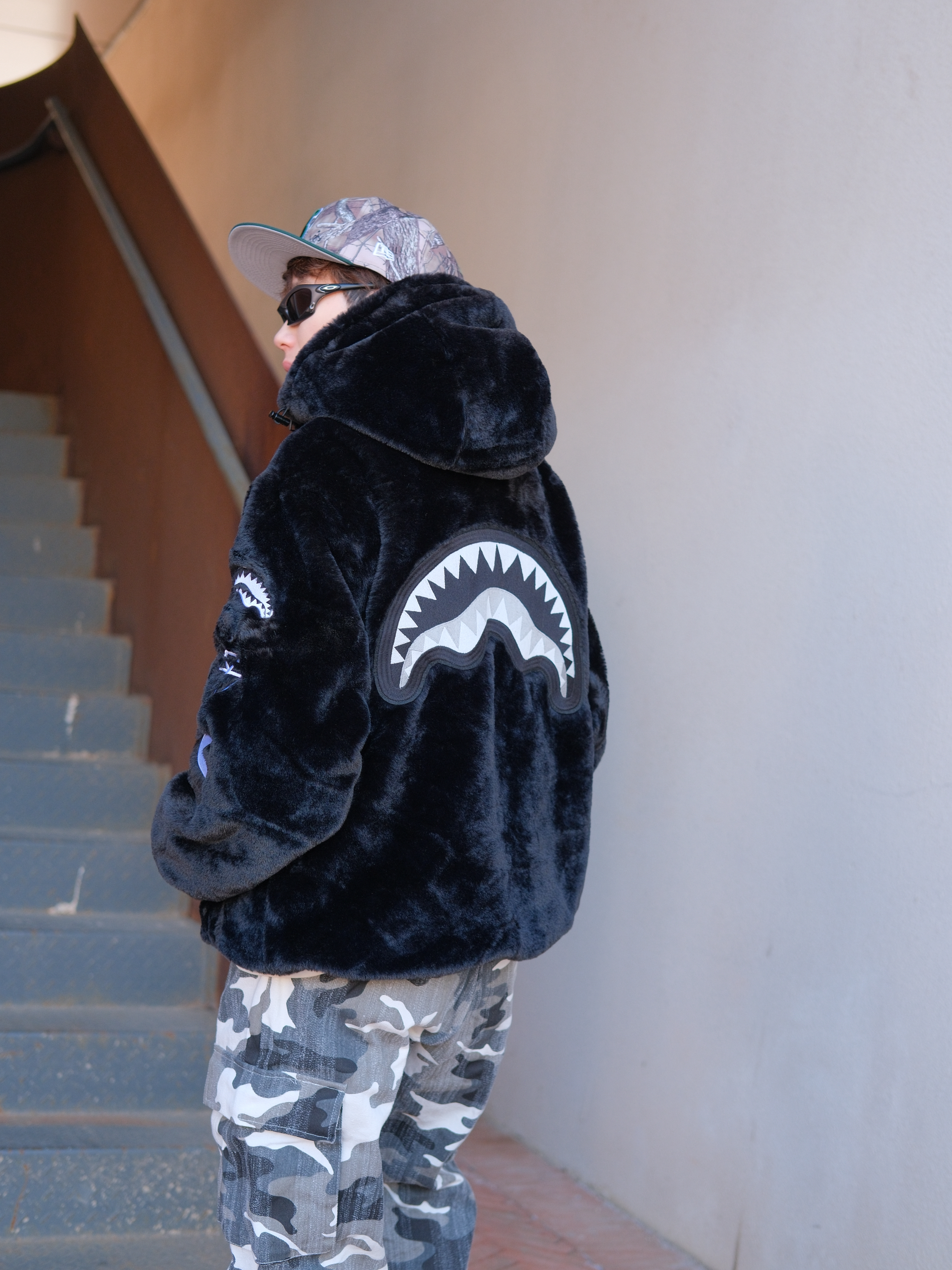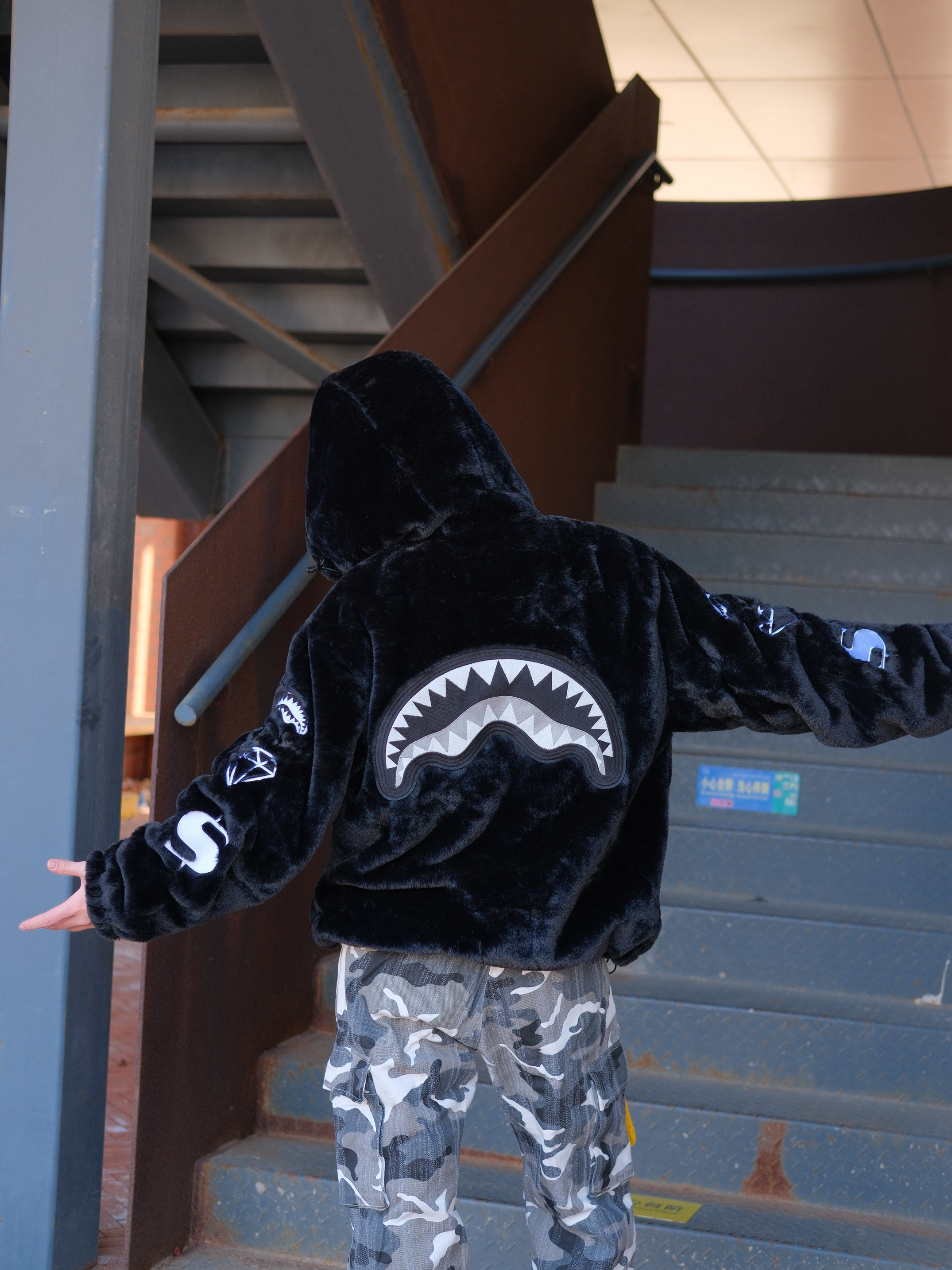 本篇笔记关联了【张桂源同款】sprayground 刺绣满印不规则花纹鲨鱼嘴防风加厚款仿羊羔绒感连帽双拉链长袖夹克 男女同款 WD931121 黑、sprayground 双拉链鲨鱼嘴毛绒连帽夹克 WE041102 黑等商品,为用户提供真实的使用体验和购买参考。