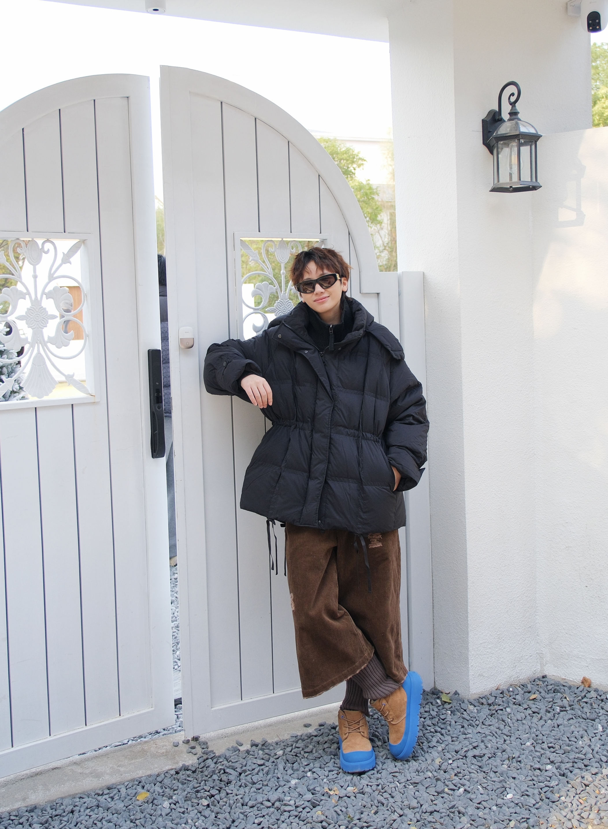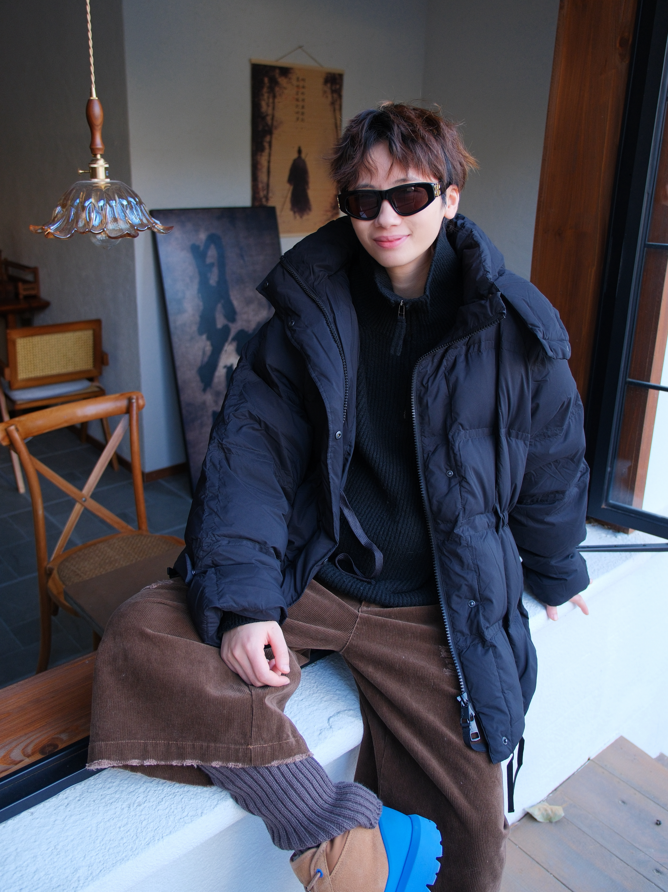 虽然和谢可寅的穿搭风格大相径庭 但是我们可以从同款同色系入手 上身选了谢可寅同款的 LINCchic 羽绒服 把咖色换成黑色,更适合我的风格 收腰设计可以很好的突出身材比例 600蓬穿起来轻便又保暖 内搭选了类似的黑色高领毛衣 下半身棕色皮裙换成棕色七分裤 毛毛鞋实在是找不到平替 换成了UGG的雪地靴 这一身同款挑战你打几分😎 尺码参考:163cm/46kg 上身M码