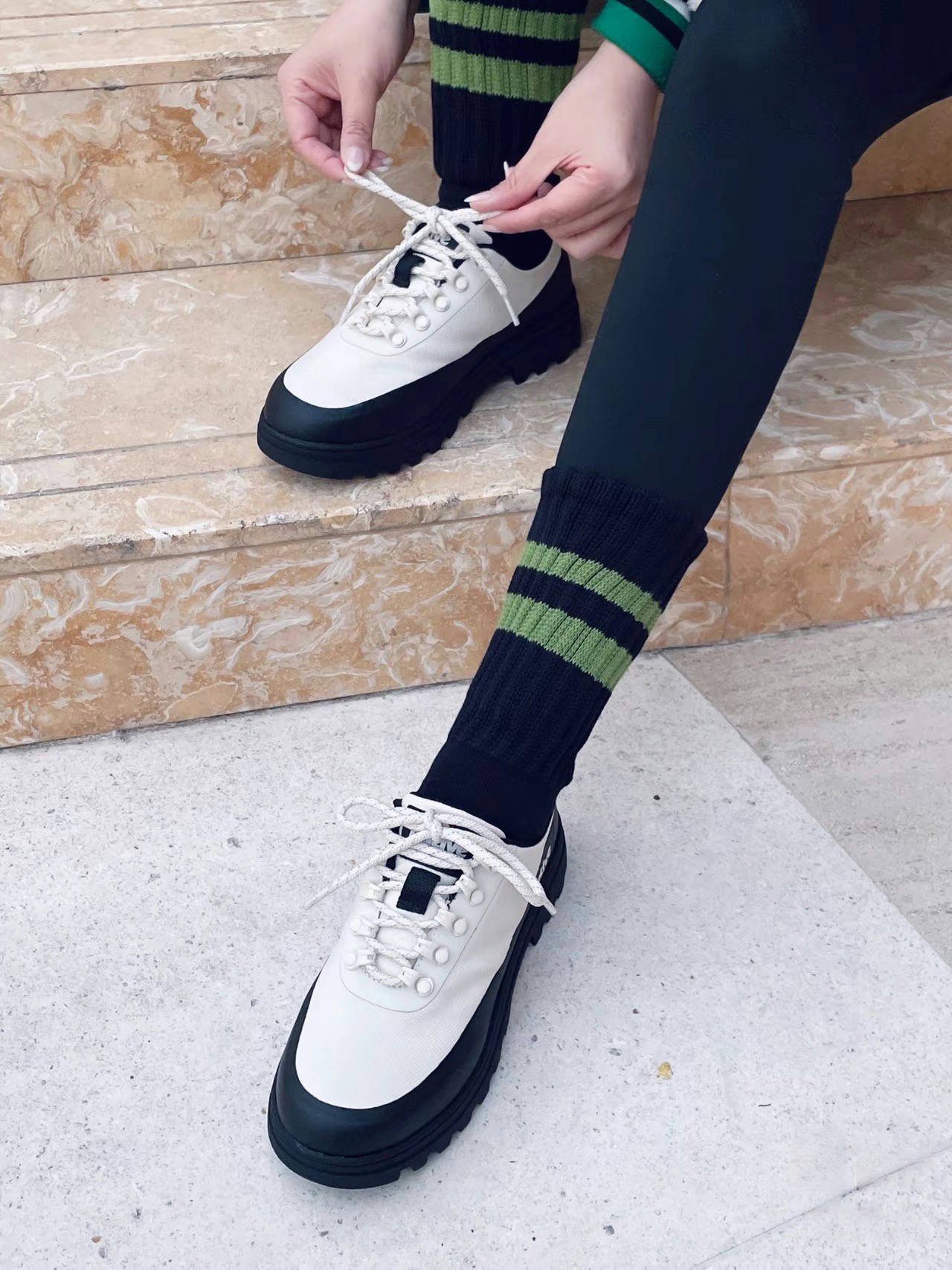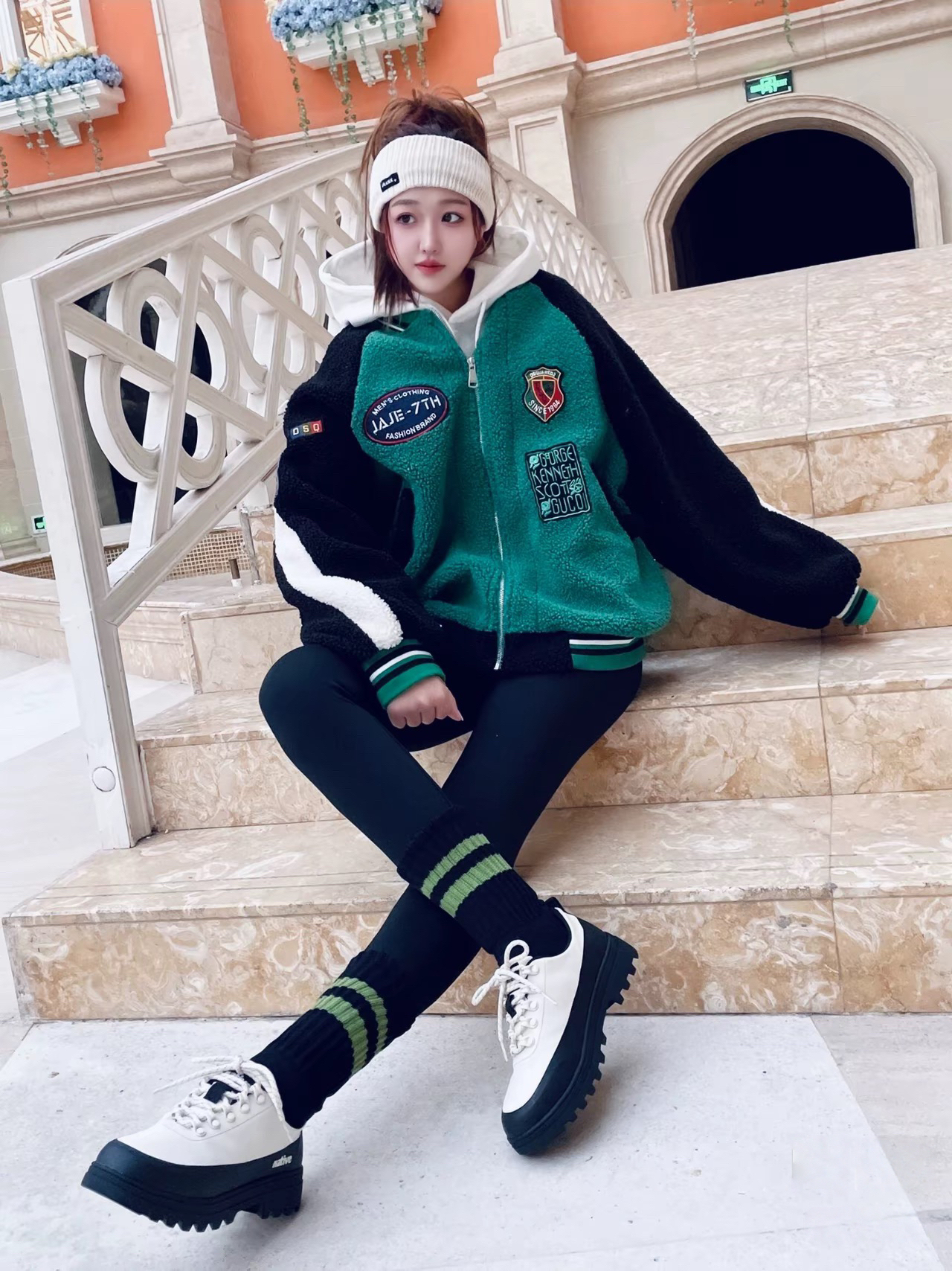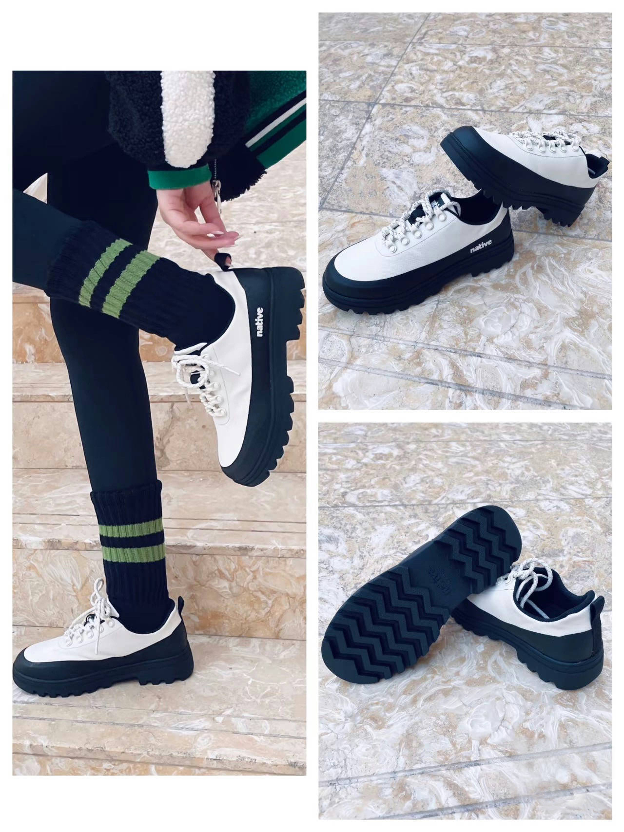 今天穿的有点好看哎 工装鞋搭配鲨鱼裤 加上oversize的棒球服 一整个时髦又帅气 我蛮喜欢这双休闲鞋 很英伦风又超百搭的 Native Shoes 简约的黑白配色 复古又经典 新年这样穿也蛮不戳的呢
