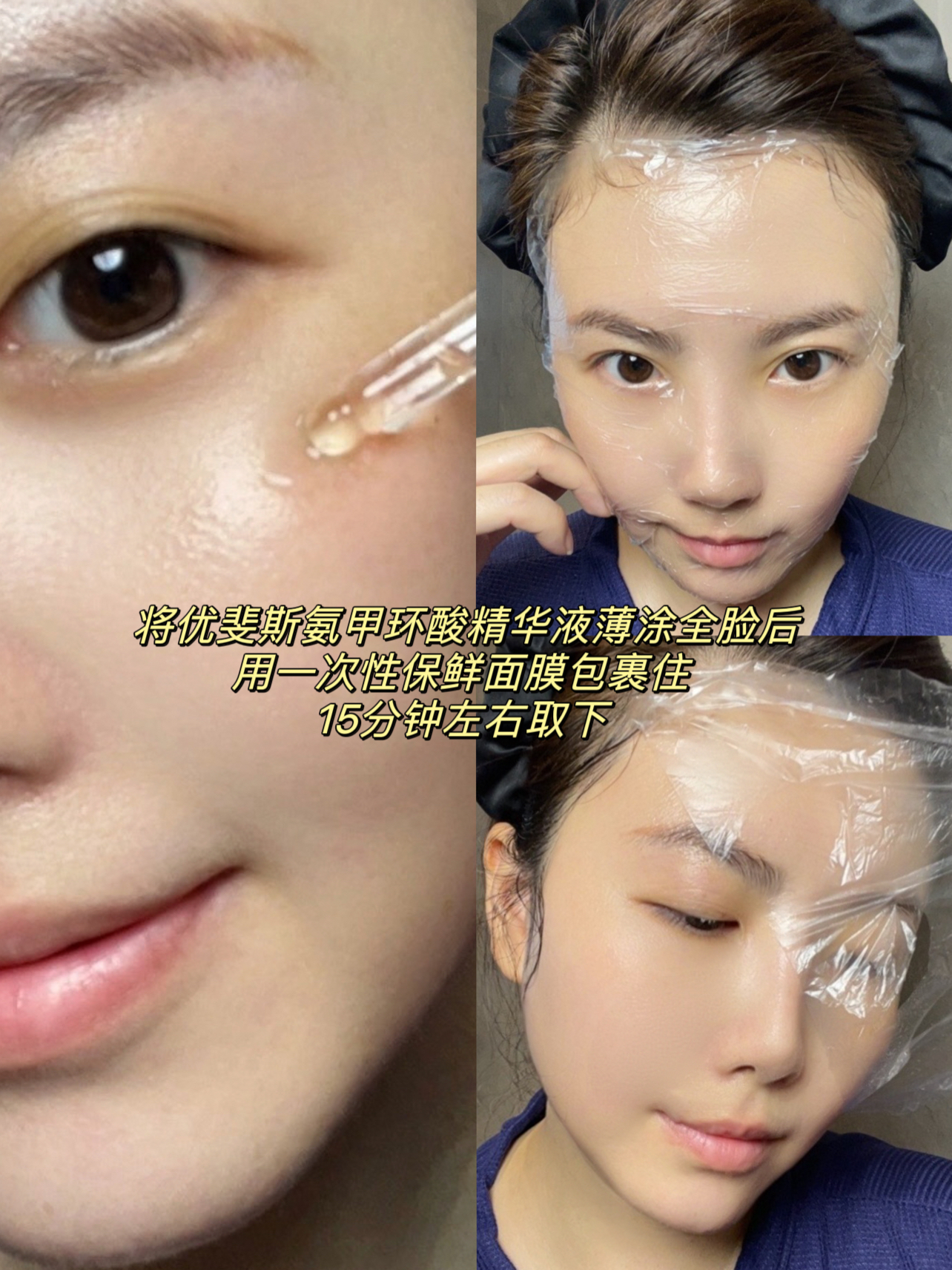 优斐斯不用多说 之前的笔记也分享过 院线品牌 光电项目必备哒 之前每次都特别怕项目之后会反黑黑 自从用上了这个 妥妥的安心呀 ta里面含有5%高浓度氨甲环酸精华液 今天给宝宝们分享一个进阶用法 🔹封包法 将优斐斯氨甲环酸精华液薄涂全脸后 用一次性保鲜面膜包裹住 等待15分钟左右取下 这样可以渗透性更强 ta的成分很温和 敏敏肌也都能放心使用哒 封包法真的超简单哒 快去试试看吧