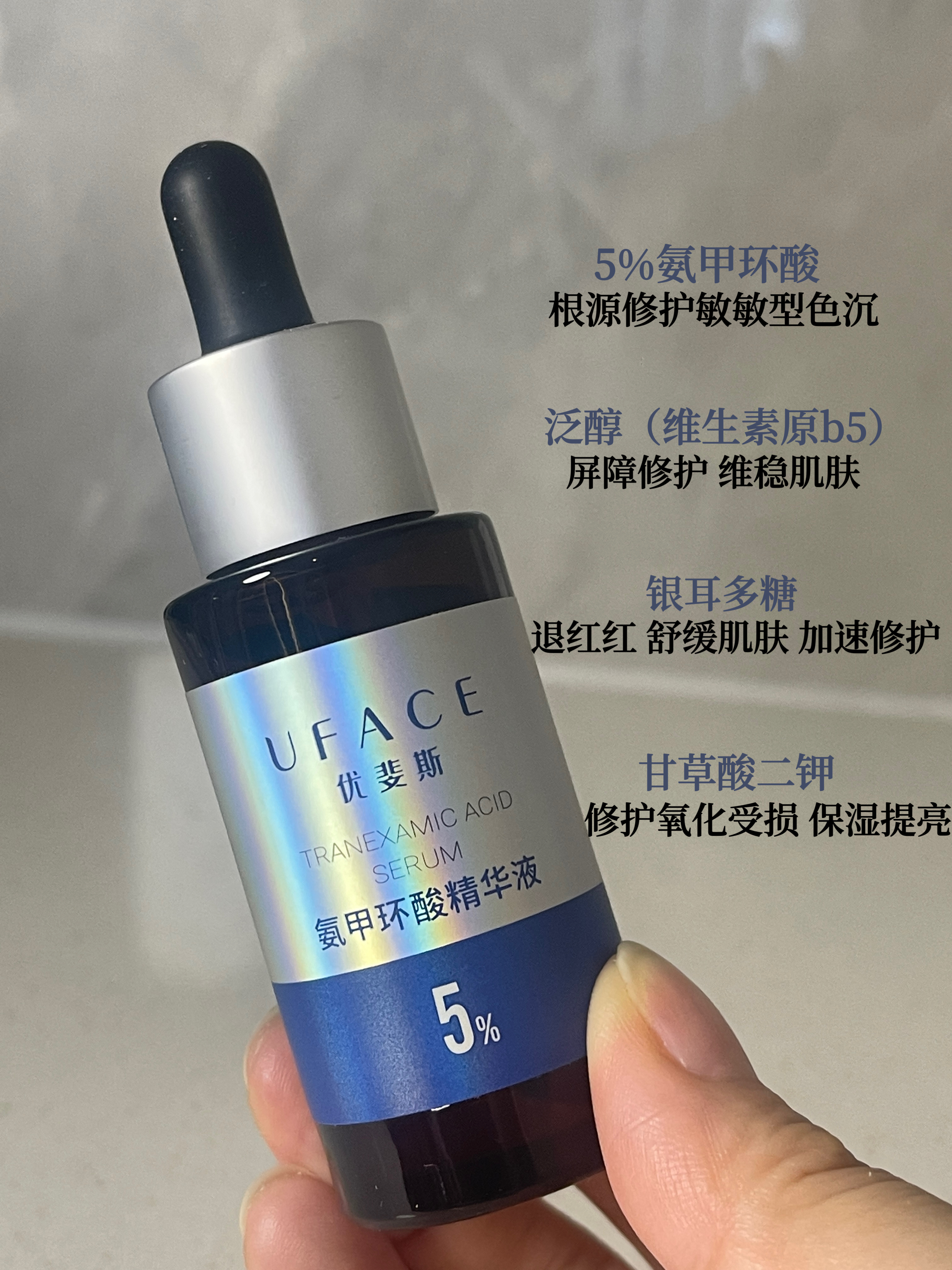 本篇笔记关联了UFACE/优斐斯 5%氨甲环酸精华液 高浓度强渗透倍润淡色斑改善色沉 淡色沉等商品,为用户提供真实的使用体验和购买参考。