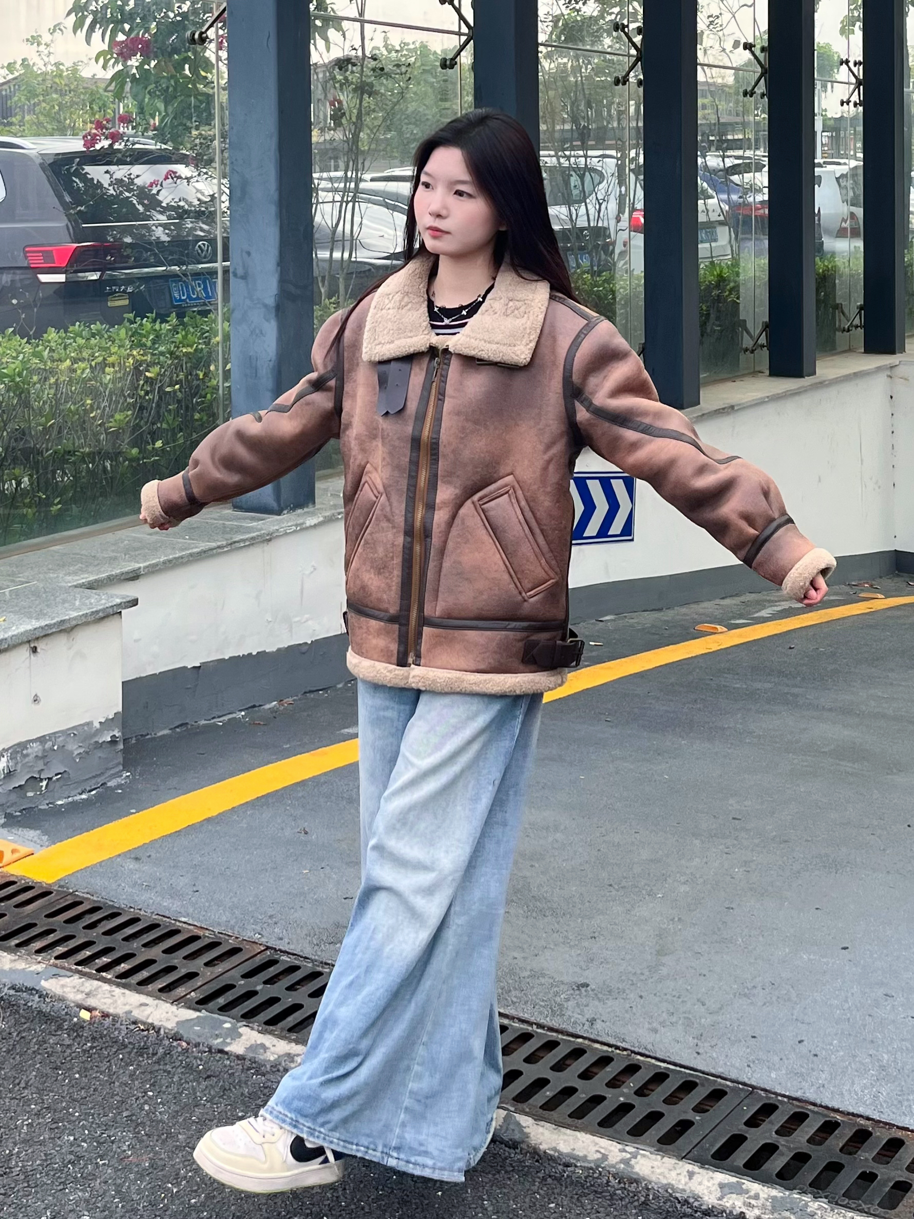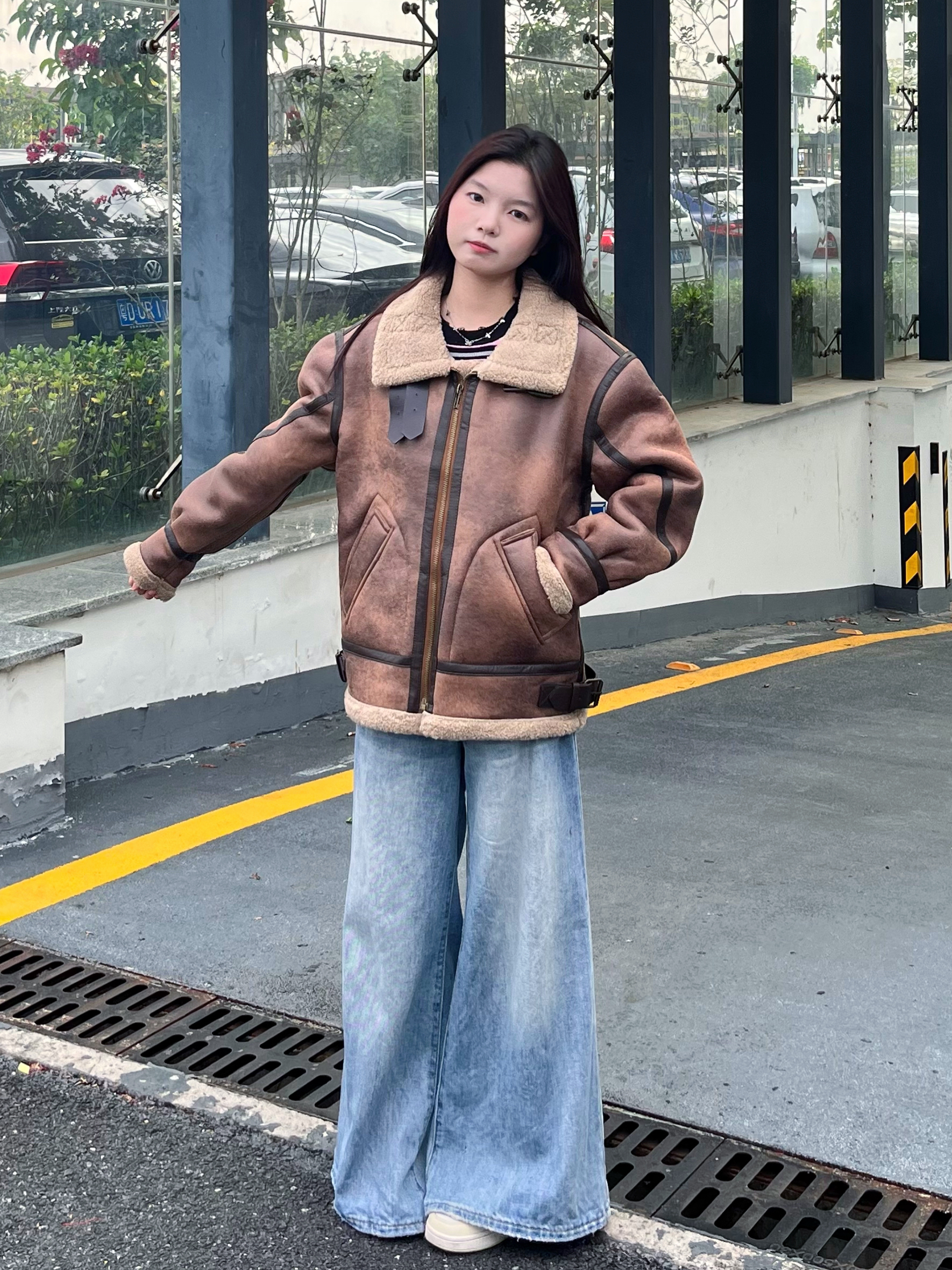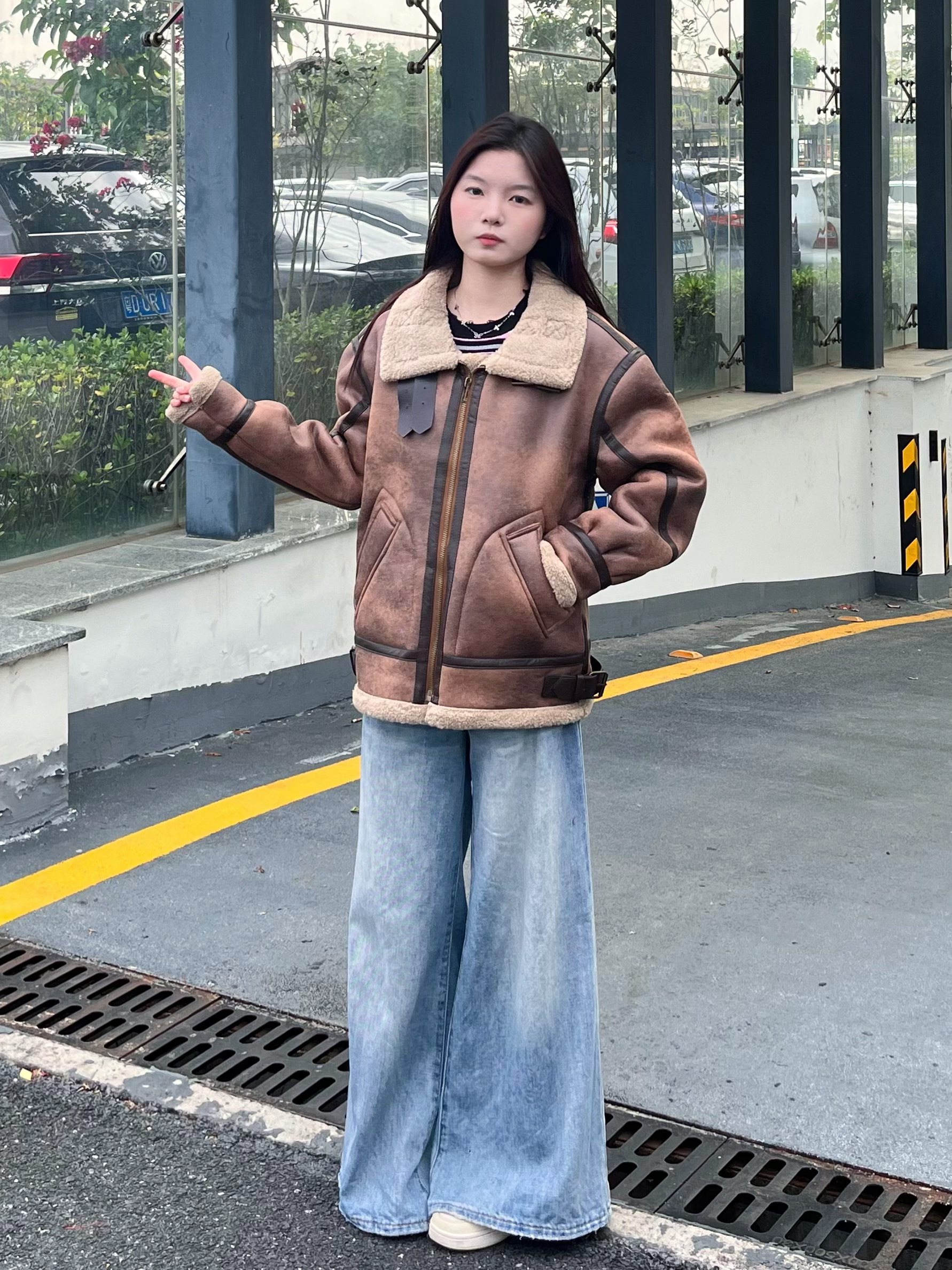 外套+阔腿宽松牛仔裤 你们觉得这样搭配怎么样