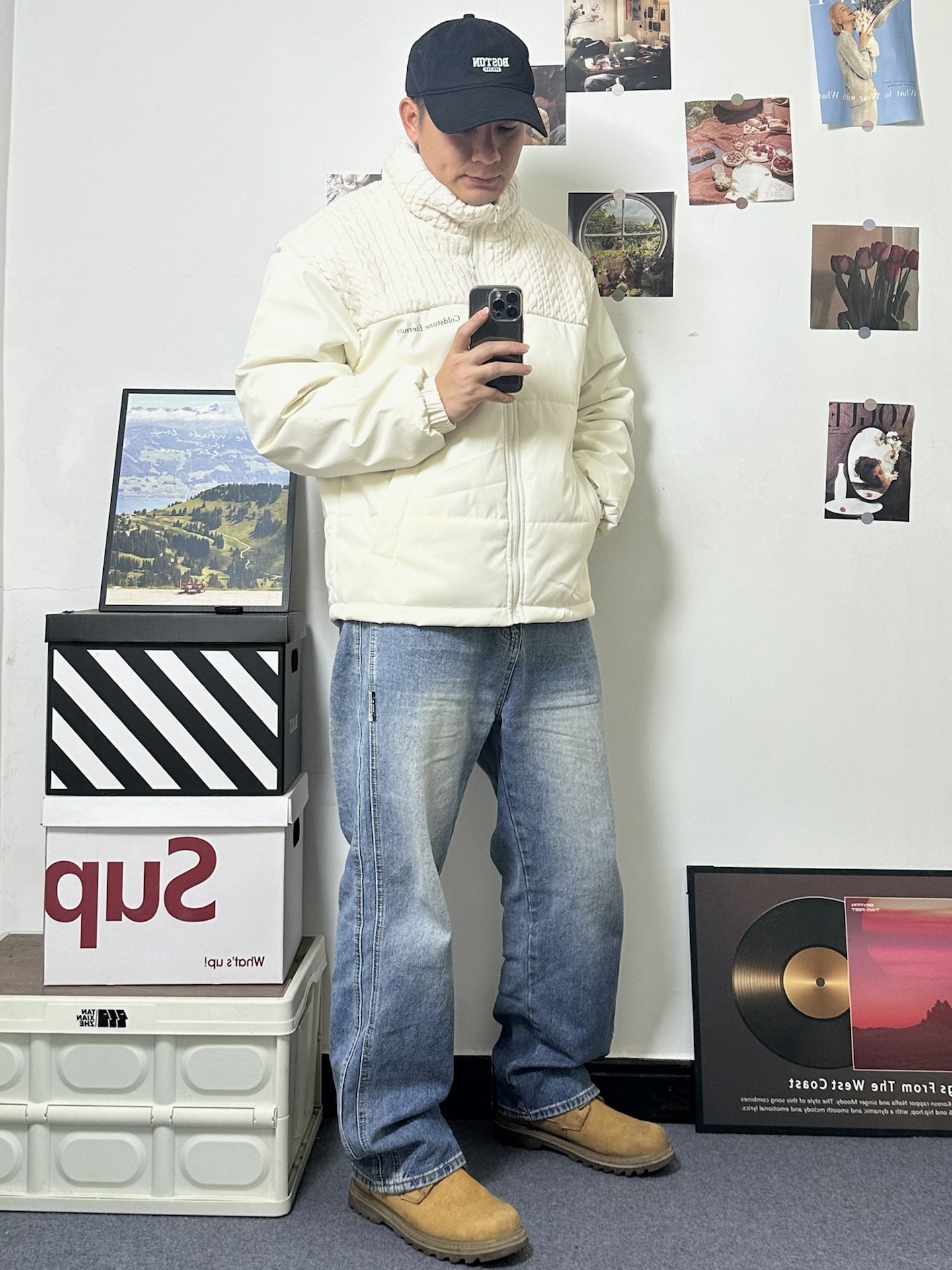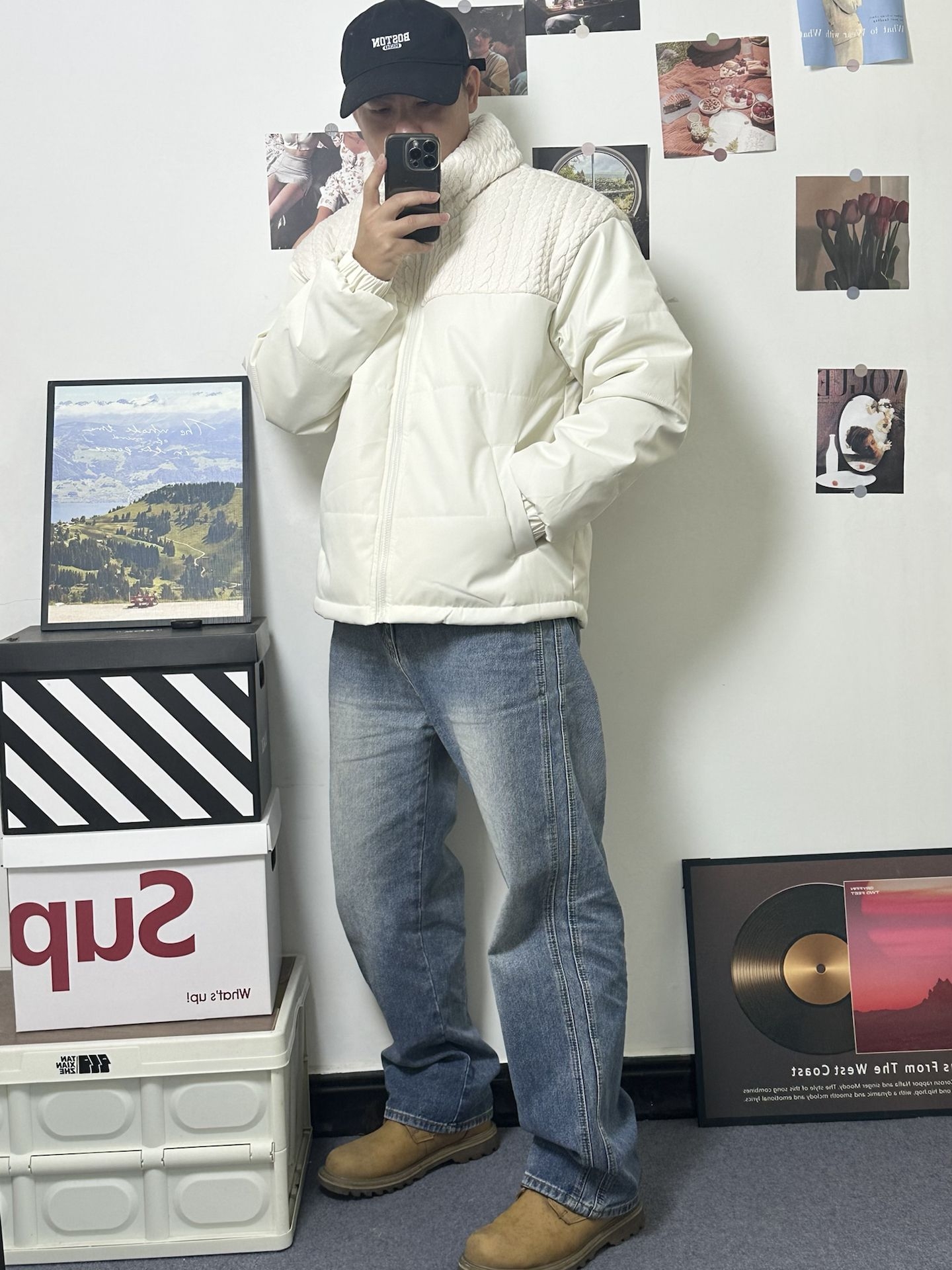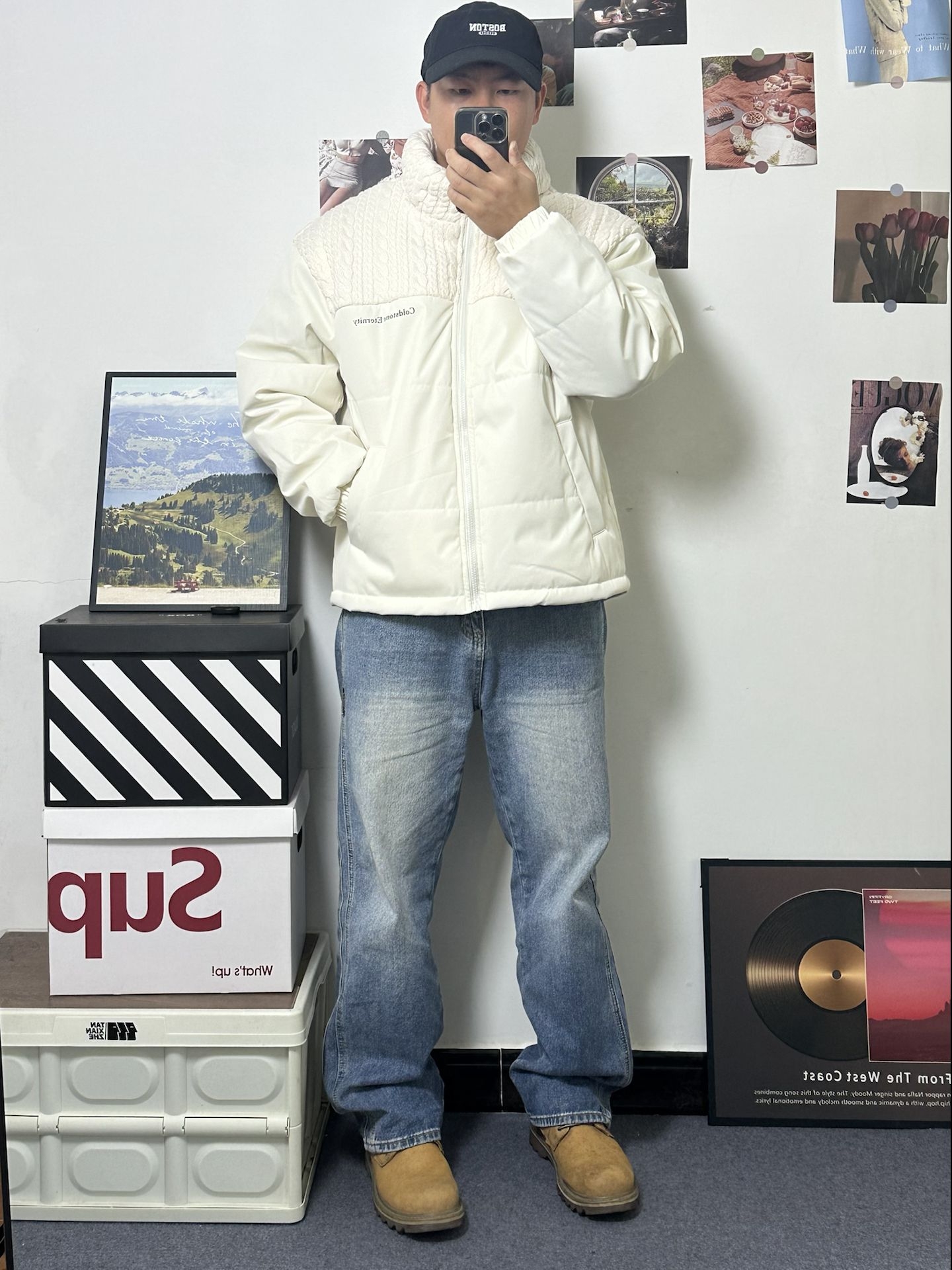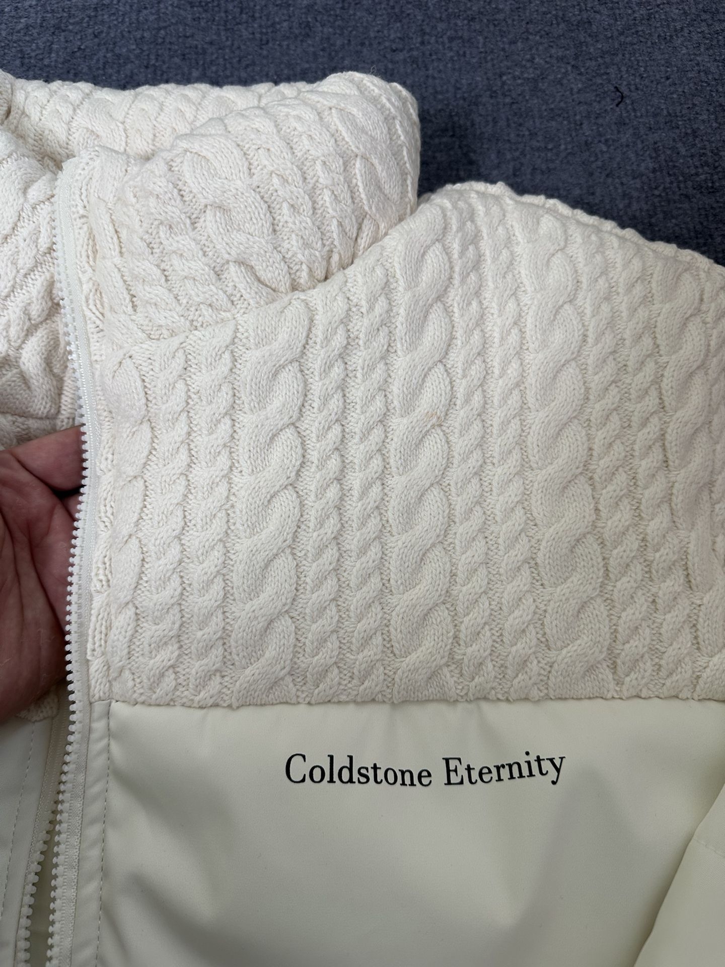 上半截是那种很有质感的麻花编织纹理 软软厚厚的,看着就很暖和 下半截是经典绗缝棉服 蓬蓬的但一点不显胖 版型是偏宽松的短款,真的很好搭 下身配条浅蓝牛仔裤,休闲感满满👌🏻