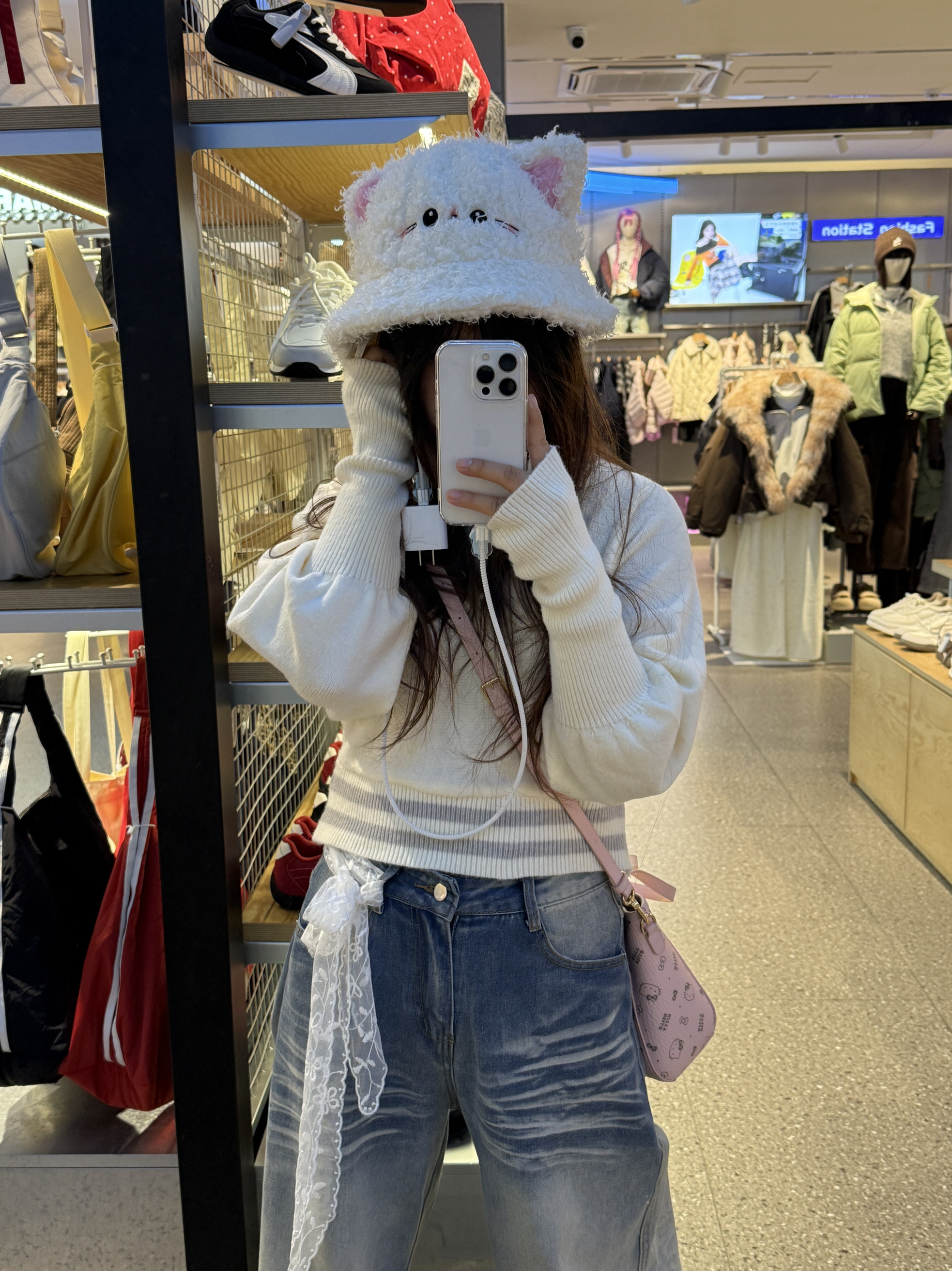 甜妹韩系穿搭🍧粉灰撞色也太嫩了 谁懂