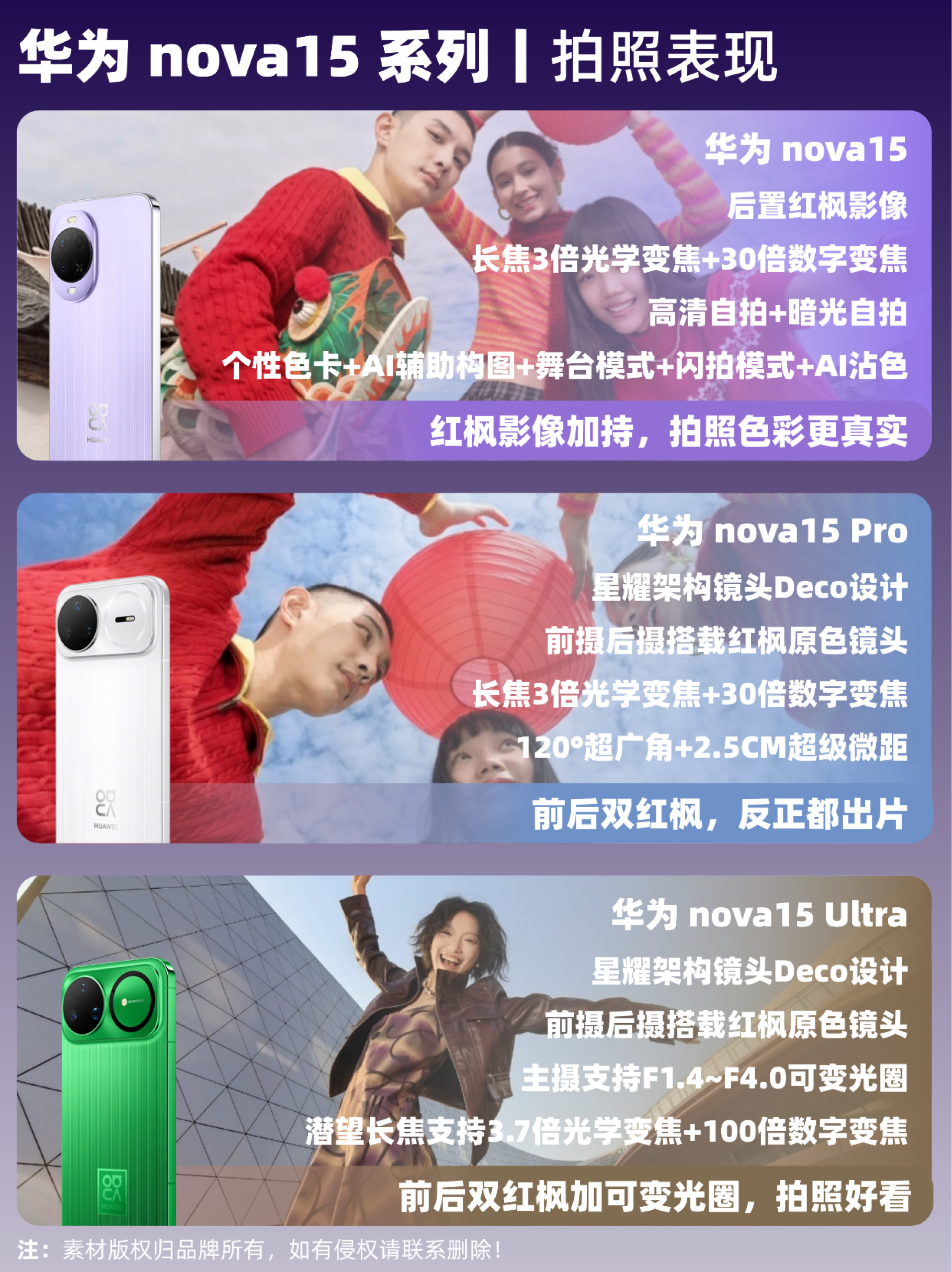 本篇笔记关联了HUAWEI/华为 nova 15 Ultra 5G 手机 AI大模型 双卫星通信 轻薄 LTPO屏幕 超动态臻彩护眼屏 前后红枫影像 昆仑玻璃 多焦段 无线充电 带感绿、HUAWEI/华为 nova 15 5G 手机 麒麟8020芯片 鸿蒙AI 臻彩 OLED直屏 快充 大电池 双卡 北斗卫星消息 直面屏 前后红枫影像 鸿蒙系统 多焦段 好搭紫、HUAWEI/华为 nova 15 Pro 5G 手机 麒麟9系芯片 前后红枫影像 鸿蒙AI 超动态臻彩护眼屏 快充 北斗卫星消息 多焦段 鸿蒙智能 昆仑玻璃 大电池 双卡 带感绿等商品,为用户提供真实的使用体验和购买参考。