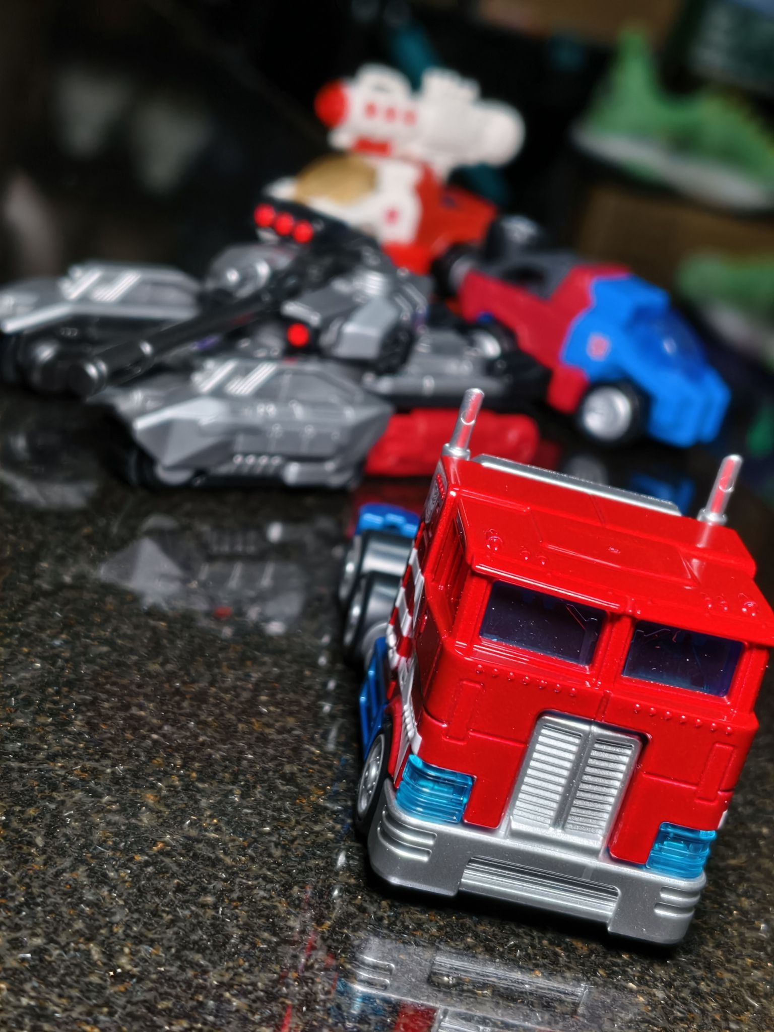 这第一下入了两盒新的积木车 看到小人板件就很激动了,再一看是大隐[爱心_blue]涂装的质感外观看着就是爽 另一发威震天虽然没用金属外壳,但我感觉是整个系列最霸气的一款。炮塔转动还有⚙️声,把玩蛮舒心