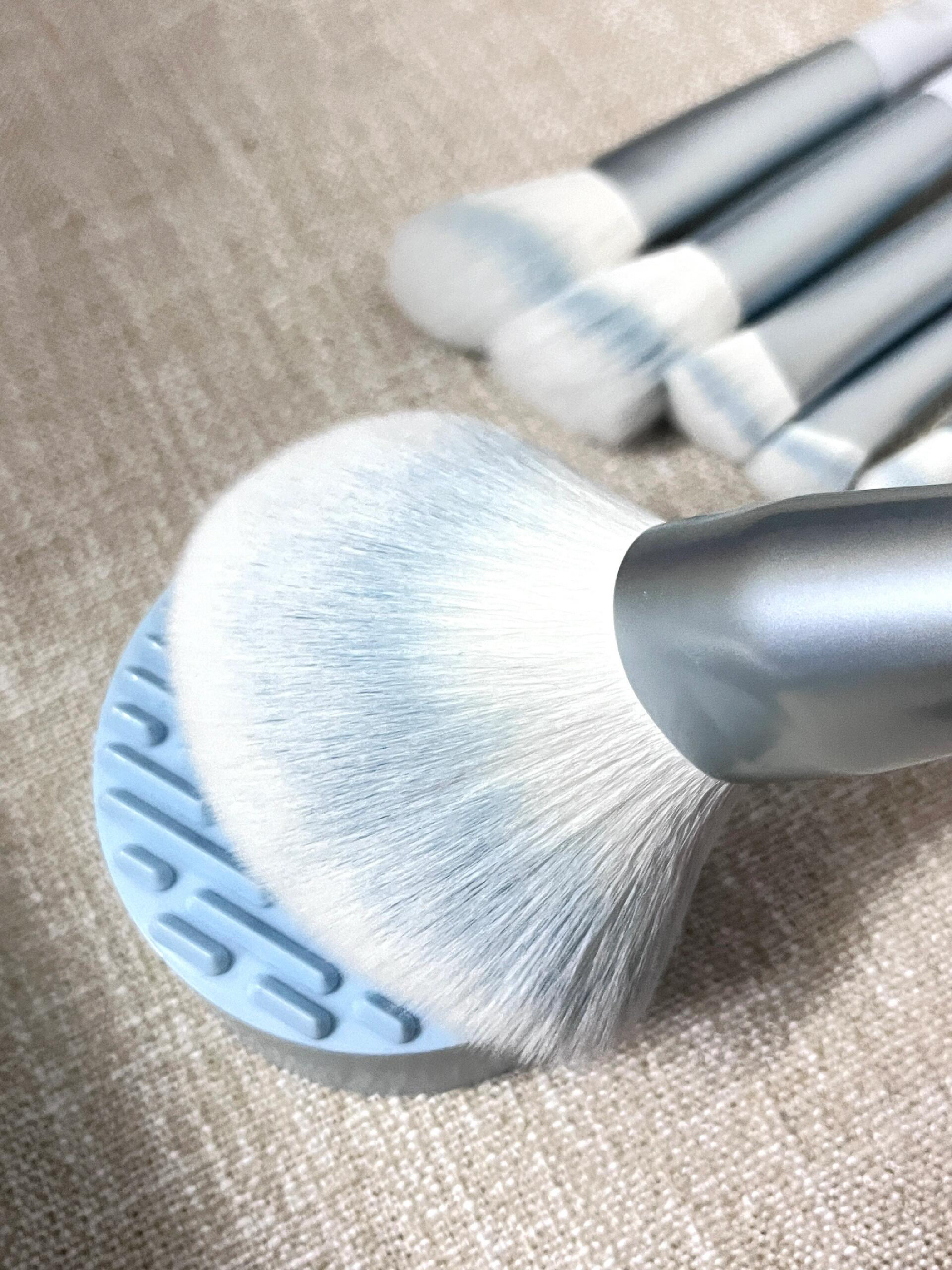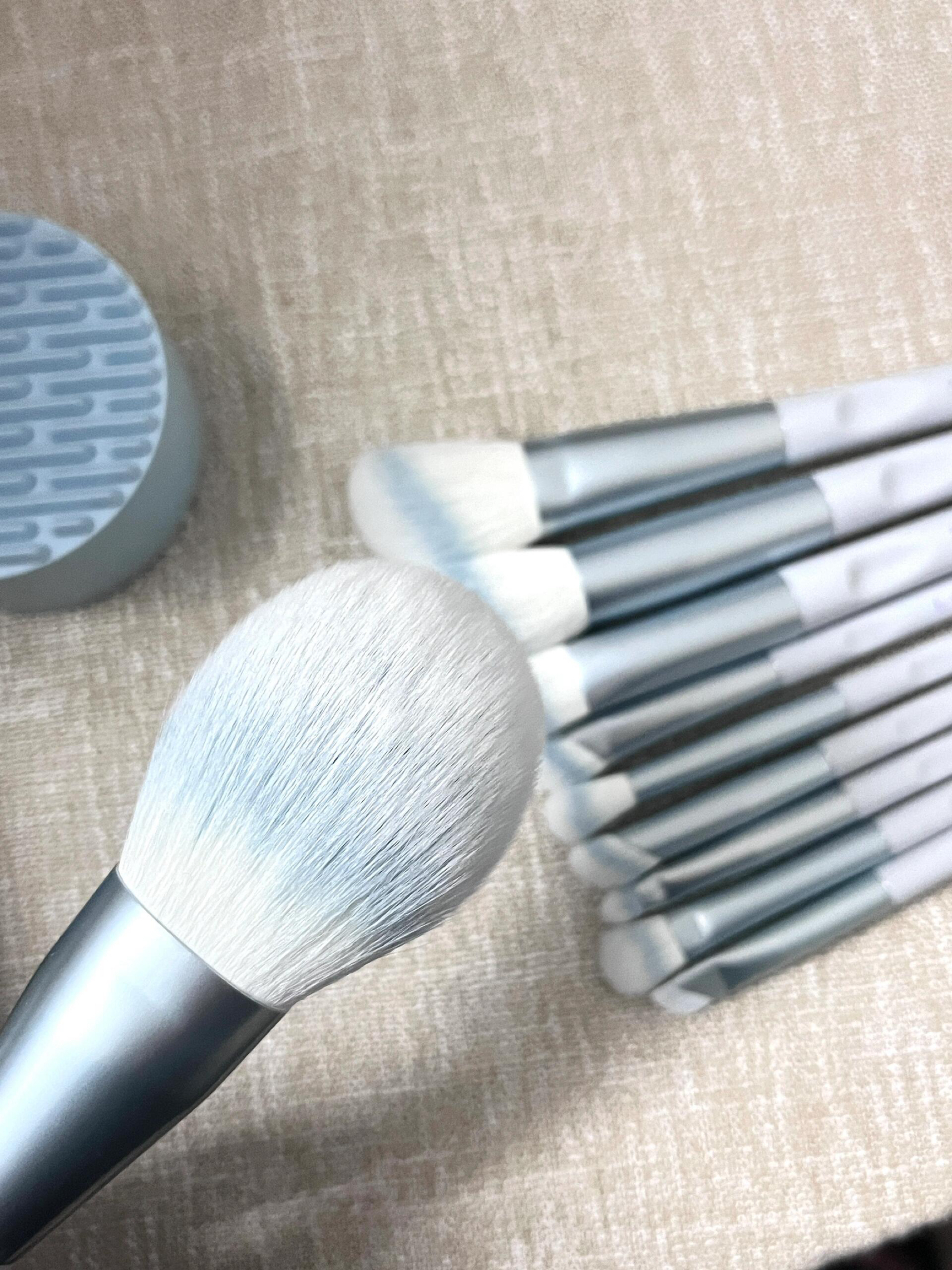 蓝色的好清新!夏天这个颜色看着就很开心! 各种刷子都有,大到散粉刷,小到刀锋刷,真的很全! 刷子毛也软乎乎的,不扎脸,用起来很方便!这回化妆又有动力啦