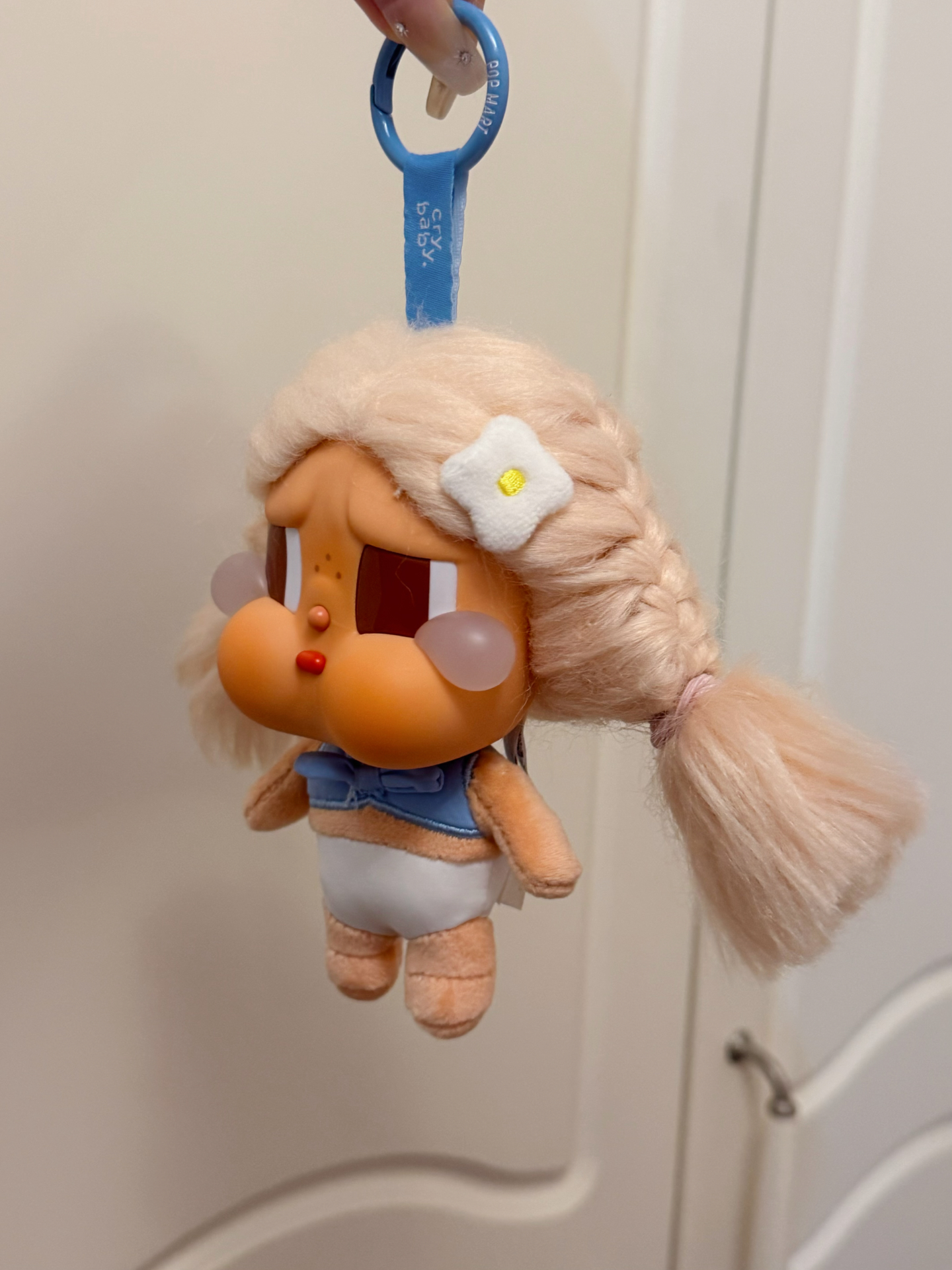我入秋收到的第一只毛绒挂件,是Crybaby新款搪胶公仔挂件诶!她头发好大一扎,能自己diy换发型~我今天给扎了辫发,用自己皮筋和小夹子一配,可爱度up✨ 要是能再加套衣服就更萌啦,现在挂包包上已经很吸睛咯🥰