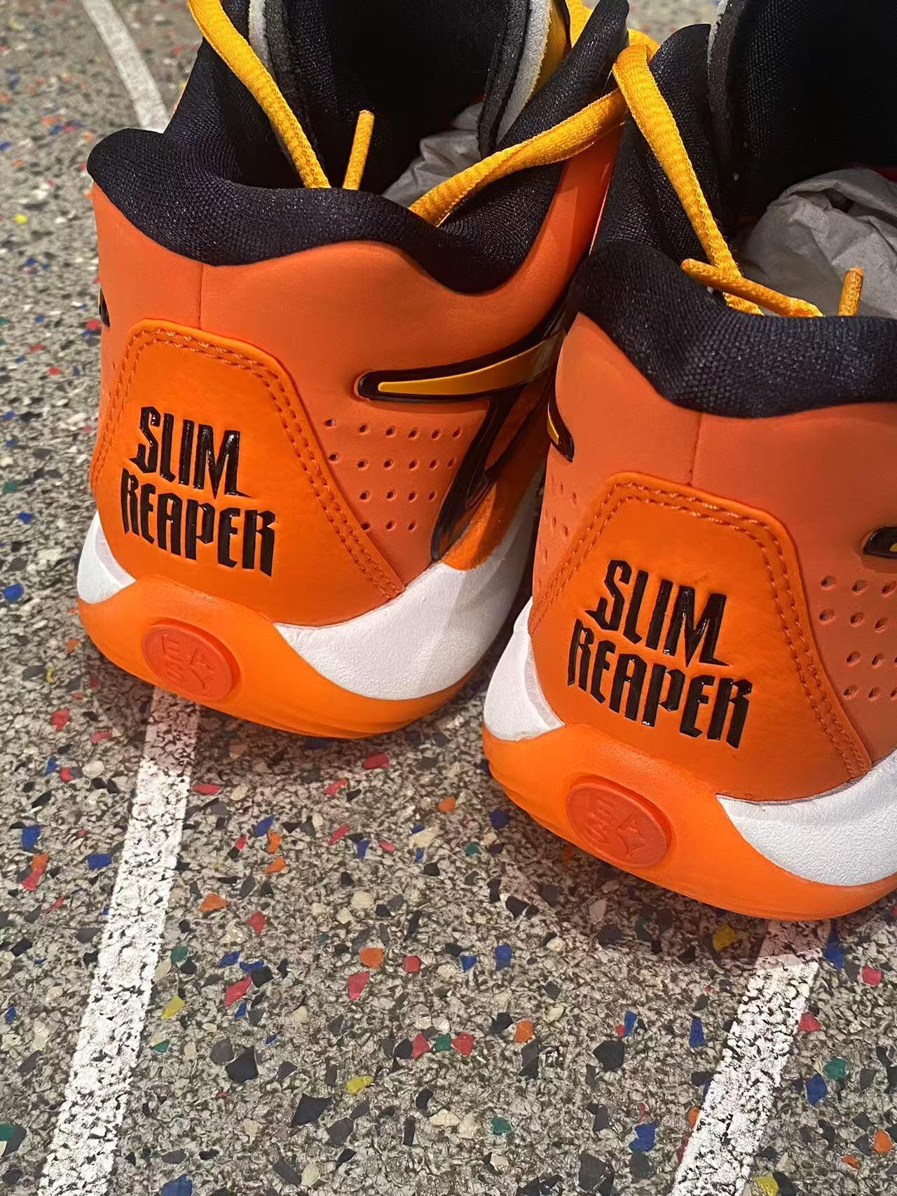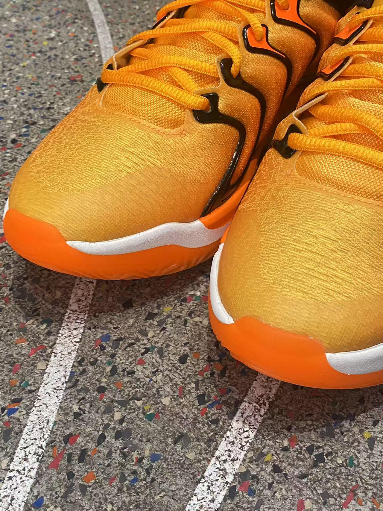 KD17“死神”系列新配色! 比起以往的此系列都是偏向黑色,这次的颜色也是借鉴了杜兰特母队 太阳队的一个元素。 鞋面的橙色部分也是用了渐变色的技术打造,层次感也是相当的丰富。 这款鞋子的名字“Slim Reaper 死神”印到了后跟处,也是对本款鞋子配色的一个点题。 KD17实战性能不言而喻,整个2025年,各大平台博主也是给予这双鞋子高度评价!