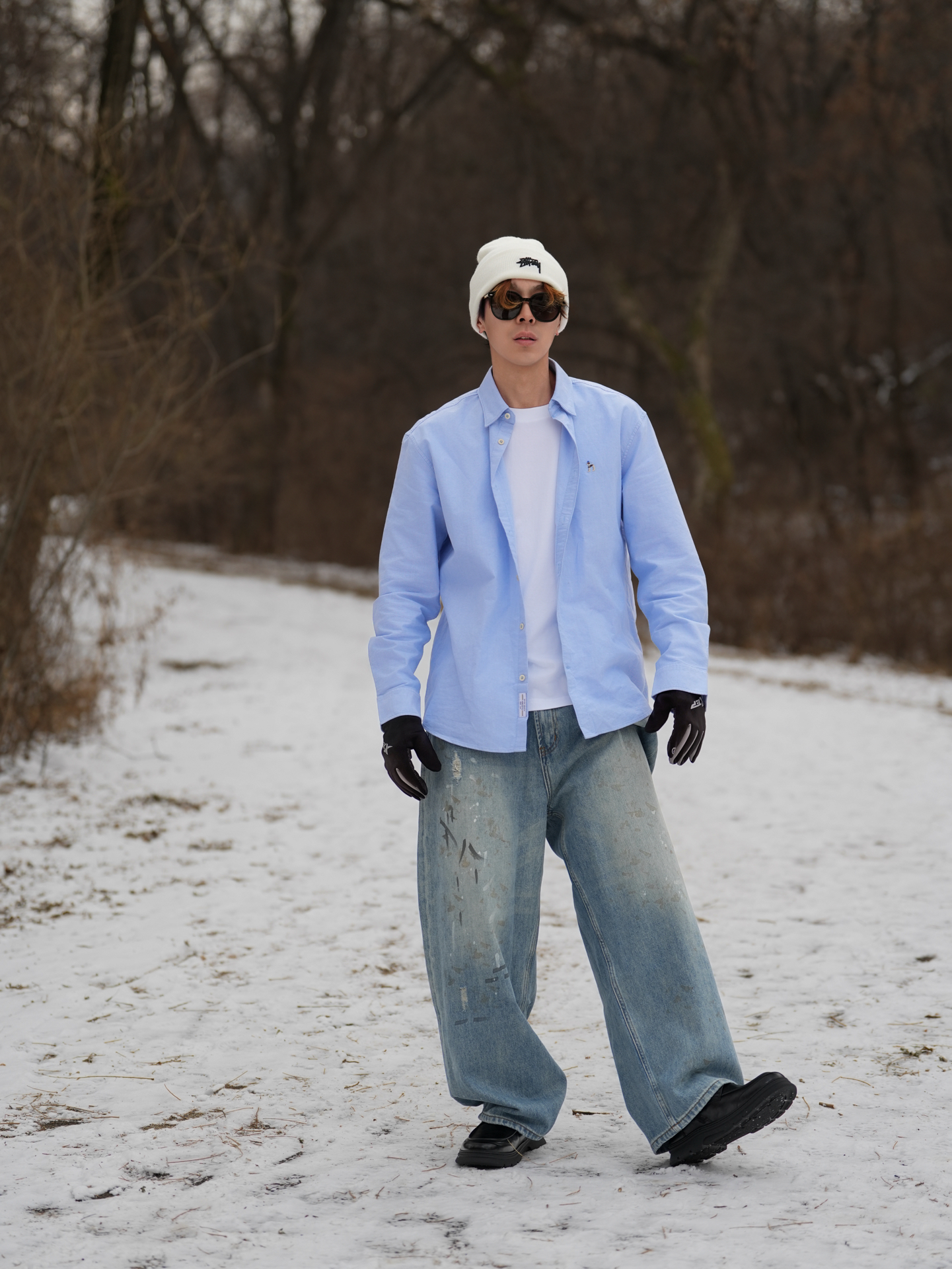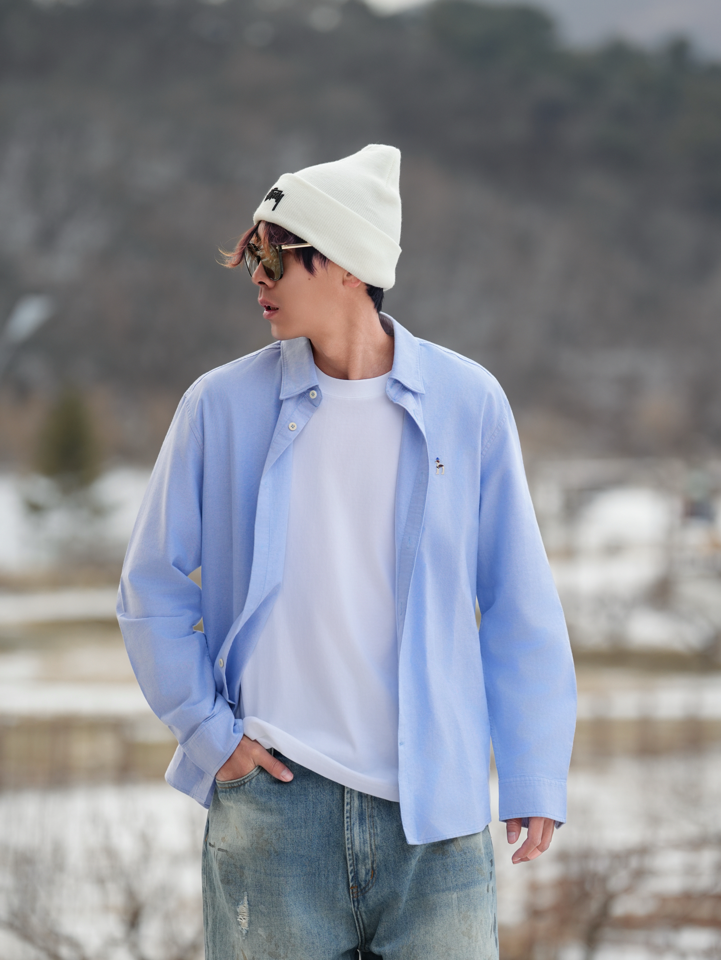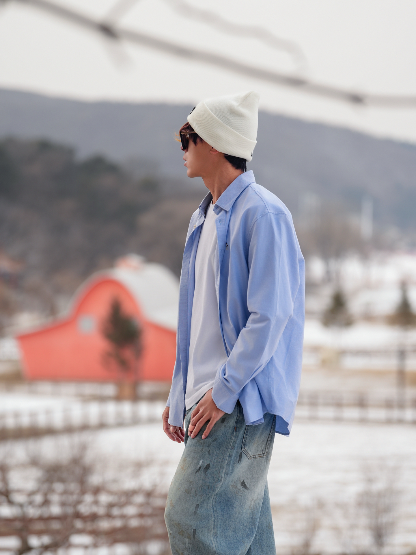 冬日韩系出街 衬衫👔➕牛仔裤 搭配这款 HAZZYS 哈吉斯休闲通勤衬衫 多带更有感觉 让穿搭更有层次感 出街很好搭配回头率高 版型微宽松 身高 179CM 踢足球62kg 尺码 XL #我的降温装备 #预热一下秋冬穿搭 #穿搭尽头是极简 #降温要换新装备 #我的降温装备