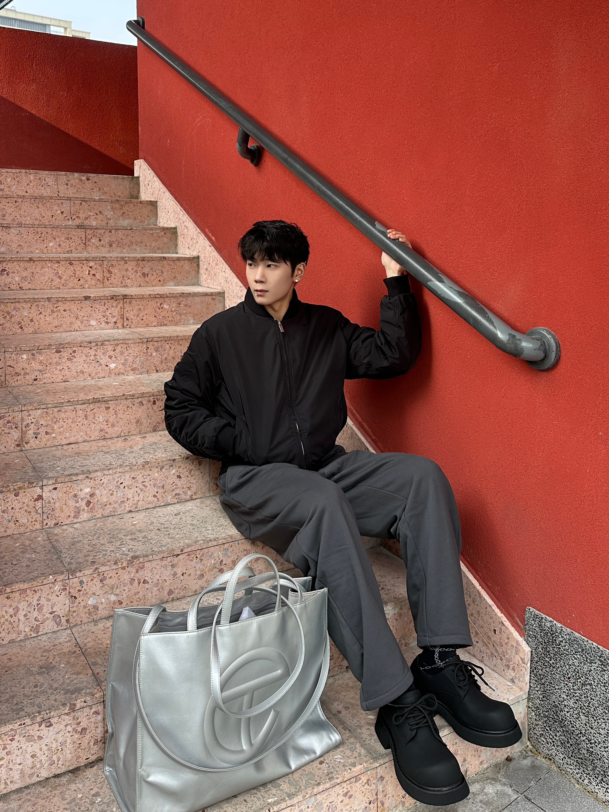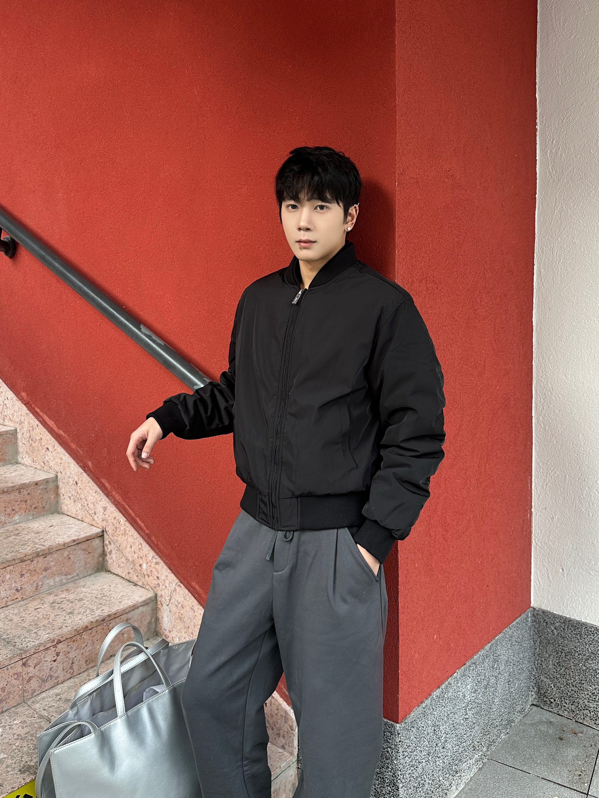 今天这套属于是“随便穿穿但被问链接”系列 这夹克拿到手就知道质感很顶 软乎乎的但有型 套上直接满满松弛感 单穿或者套在卫衣上都不错 弯刀加绒裤是真的很适合冬天 灰色非常百搭且高级 弯刀裤型也很显腿细 黑血德比鞋这厚底我能吹一万次 踩上去像踩棉花 增高5.5cm还贼自然 随手拍都出片的一套 懒人穿搭直接抄作业