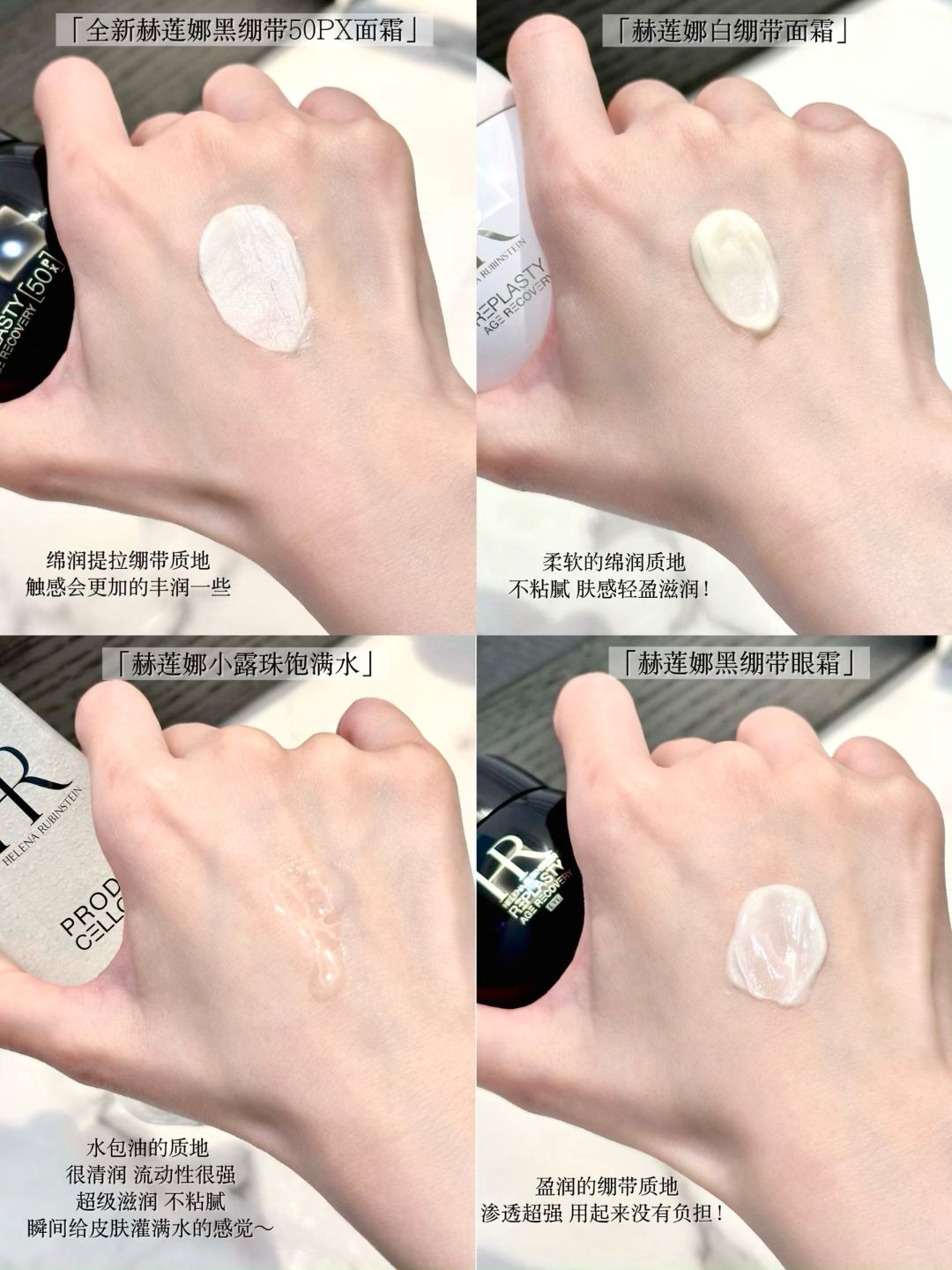 本篇笔记关联了HR/赫莲娜 白绷带日霜 滋润抗皱紧致活颜修护舒缓 【经典版】、HR/赫莲娜 黑绷带面霜 玻色因溶液抗皱紧致修复抗老化舒缓淡纹活颜 升级版 50%玻色因、HR/赫莲娜 小露珠至美琉光恒采高光饱满精华水爽肤水 修护保湿提亮紧致抗老 【旧版】补水等商品,为用户提供真实的使用体验和购买参考。