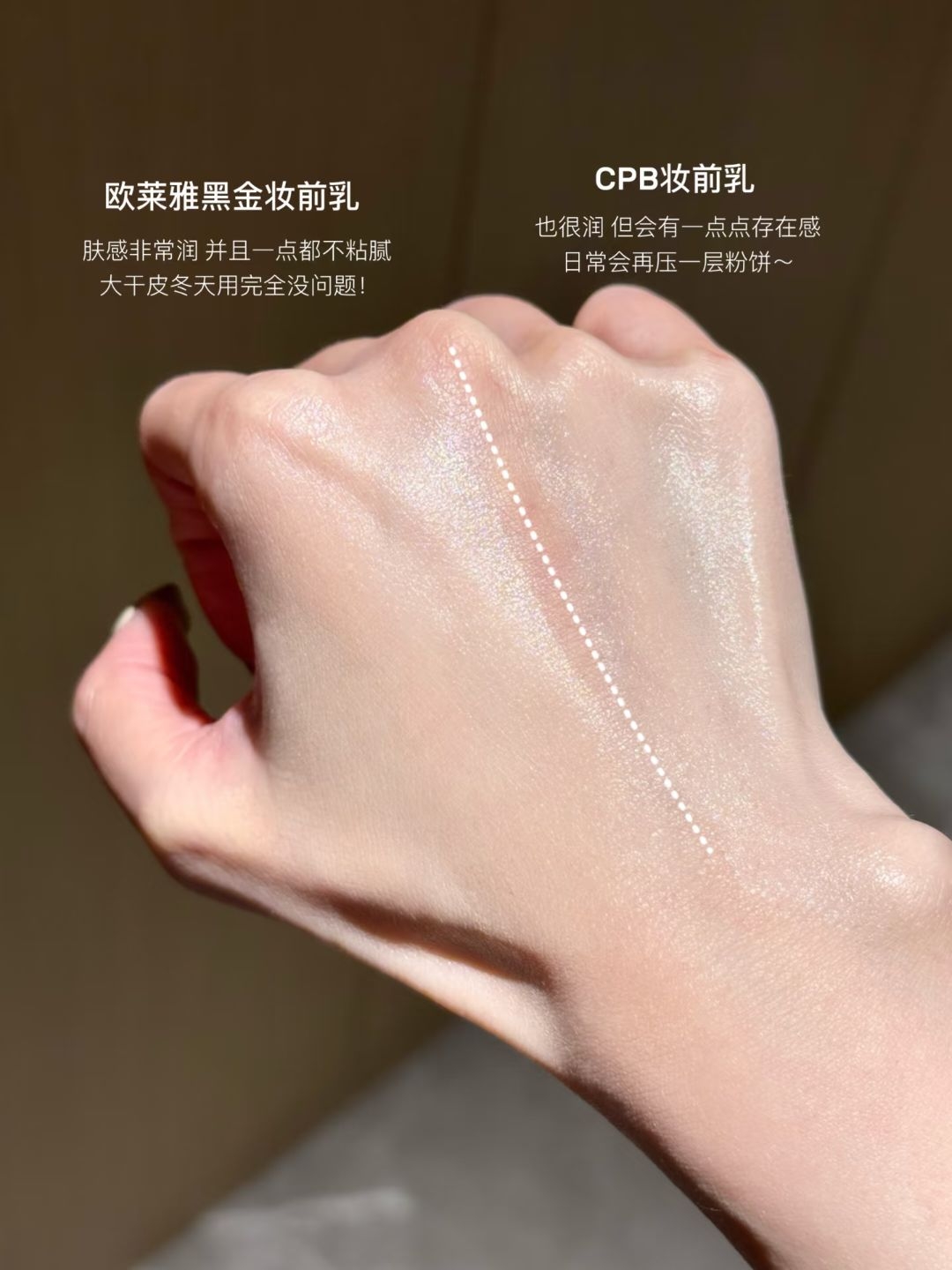 让底妆开挂的妆前搭子 超润服帖 不卡粉! 我化妆台 C位的这两位狠角色必须拥有姓名 欧莱雅黑金妆前乳和CPB妆前乳! 不夸张的说 这俩就是我底妆的"黄金搭档" - 欧莱雅黑金妆前乳 这支性价比真的超高! 加了"小蜜罐"同款重组胶原成分 上妆的同时顺便还把胶原一块补了!! 好家伙!这哪里是妆前乳… 简直就是面霜才该有的样子啊!! 97%的精华入妆 质地超级润 涂完鼻翼、眼下这些干巴地方瞬间水嫩住了 ...