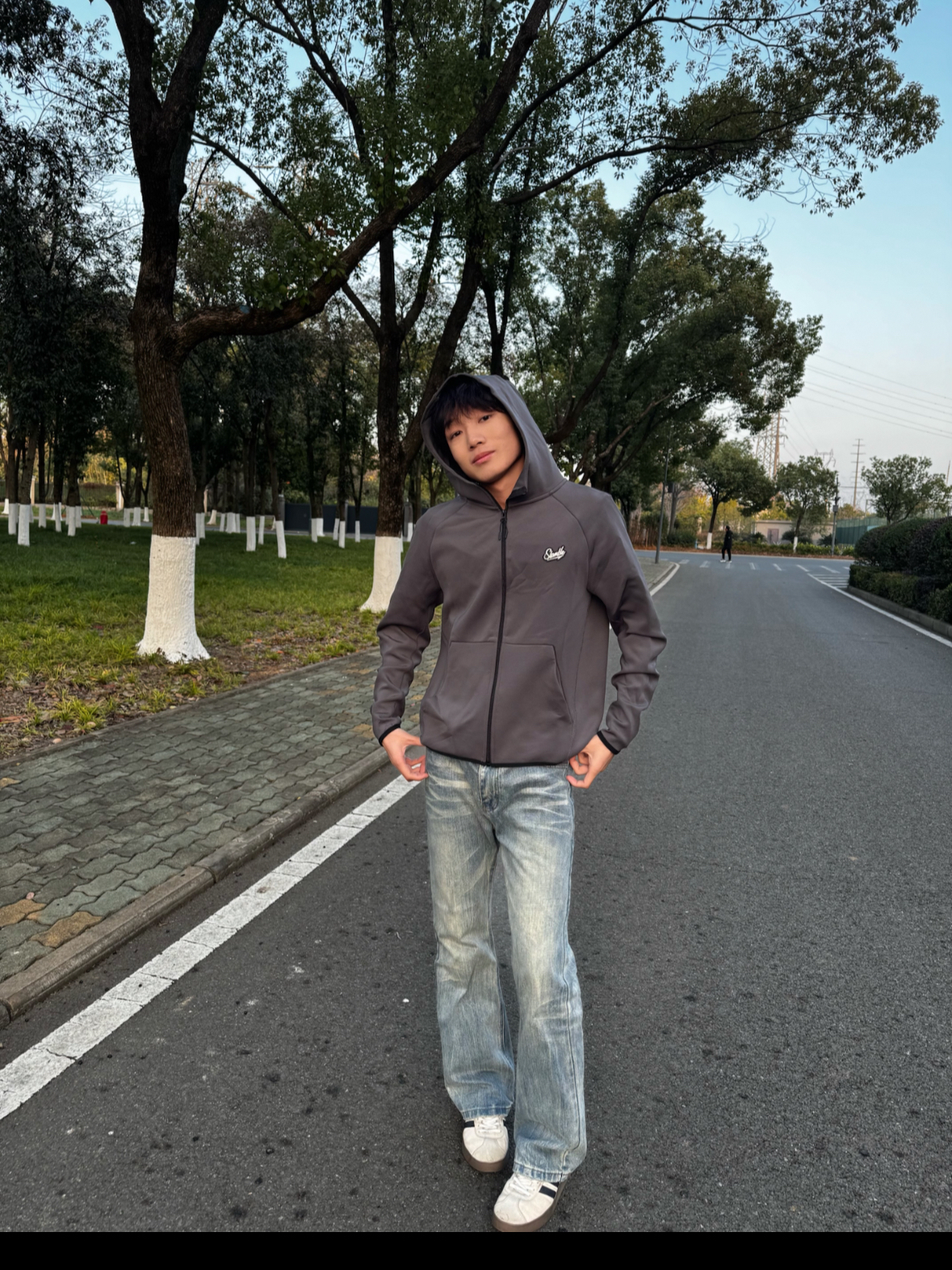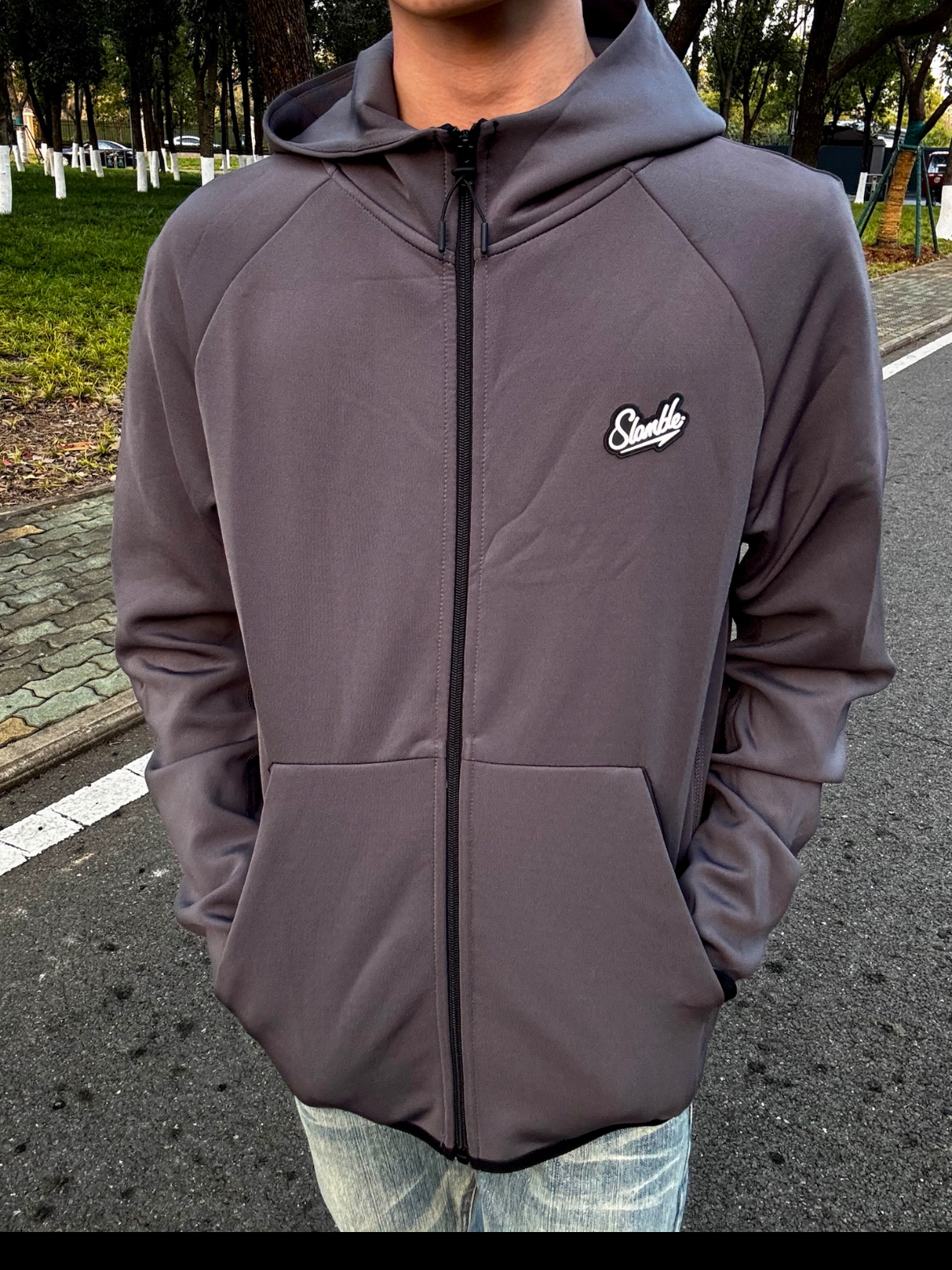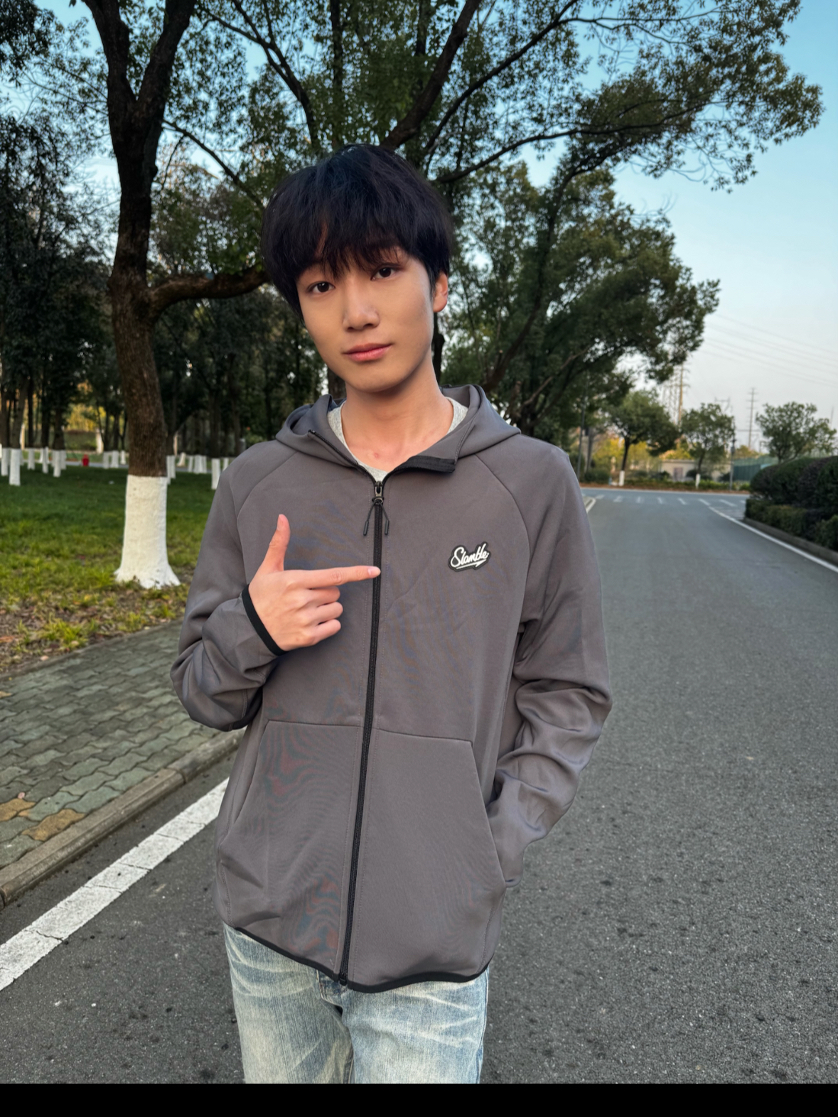 • 今日上身Slamble灰色连帽拉链外套,简约的深灰色调,胸前小logo做点缀,街头休闲风拉满 • 面料是顺滑的软质材质,上身亲肤又透气,连帽设计还能增加穿搭层次感 • 版型是宽松的休闲款,搭配牛仔裤超适配,日常出街、户外溜达穿都很合适 • 小帅身高178体重115穿M码.