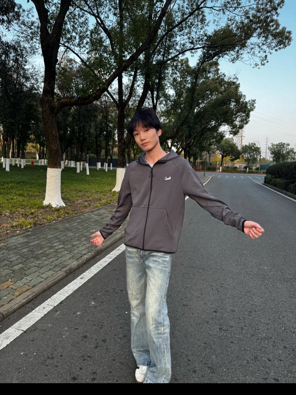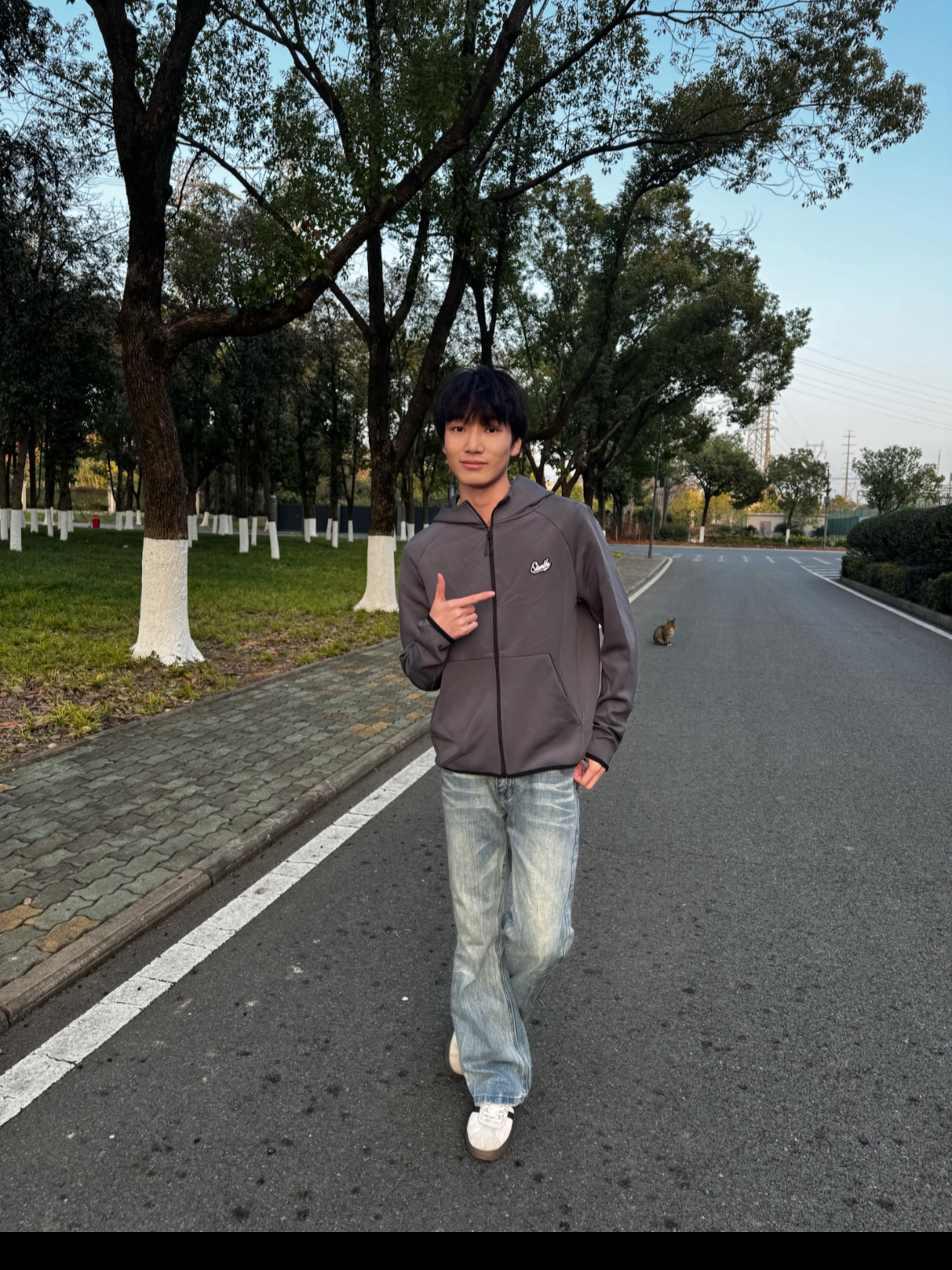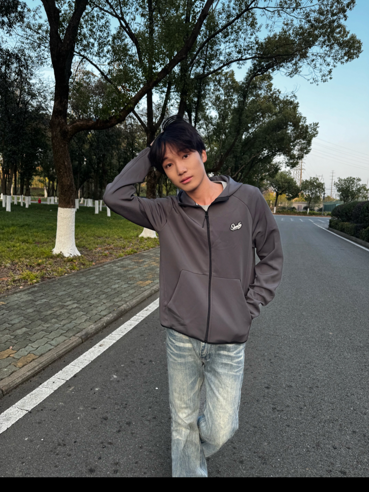 • 今日上身Slamble灰色连帽拉链外套,简约的深灰色调,胸前小logo做点缀,街头休闲风拉满 • 面料是顺滑的软质材质,上身亲肤又透气,连帽设计还能增加穿搭层次感 • 版型是宽松的休闲款,搭配牛仔裤超适配,日常出街、户外溜达穿都很合适 • 小帅身高178体重115穿M码.