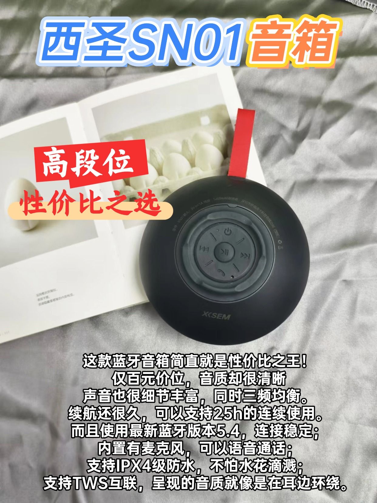 朋友们,别再乱跟风去买蓝牙音箱了! 一旦踩雷了,浪费钱不说,听歌还很破坏心情! 大家一定要多做做功课,看准再入, 真的能少走不少弯路❗❗ 要买蓝牙音箱的我给你们整理了一些比较好用的 还有一款我平时用的比较多的,有需要的宝子可以做个参考! - 西圣SN01蓝牙音箱(149¥) 这款蓝牙音箱挺有性价比的! 仅百元价位,音质却很清晰🎶! 声音也很细节丰富,同时三频均衡。 续航还很久,可以支持25h的连续...
