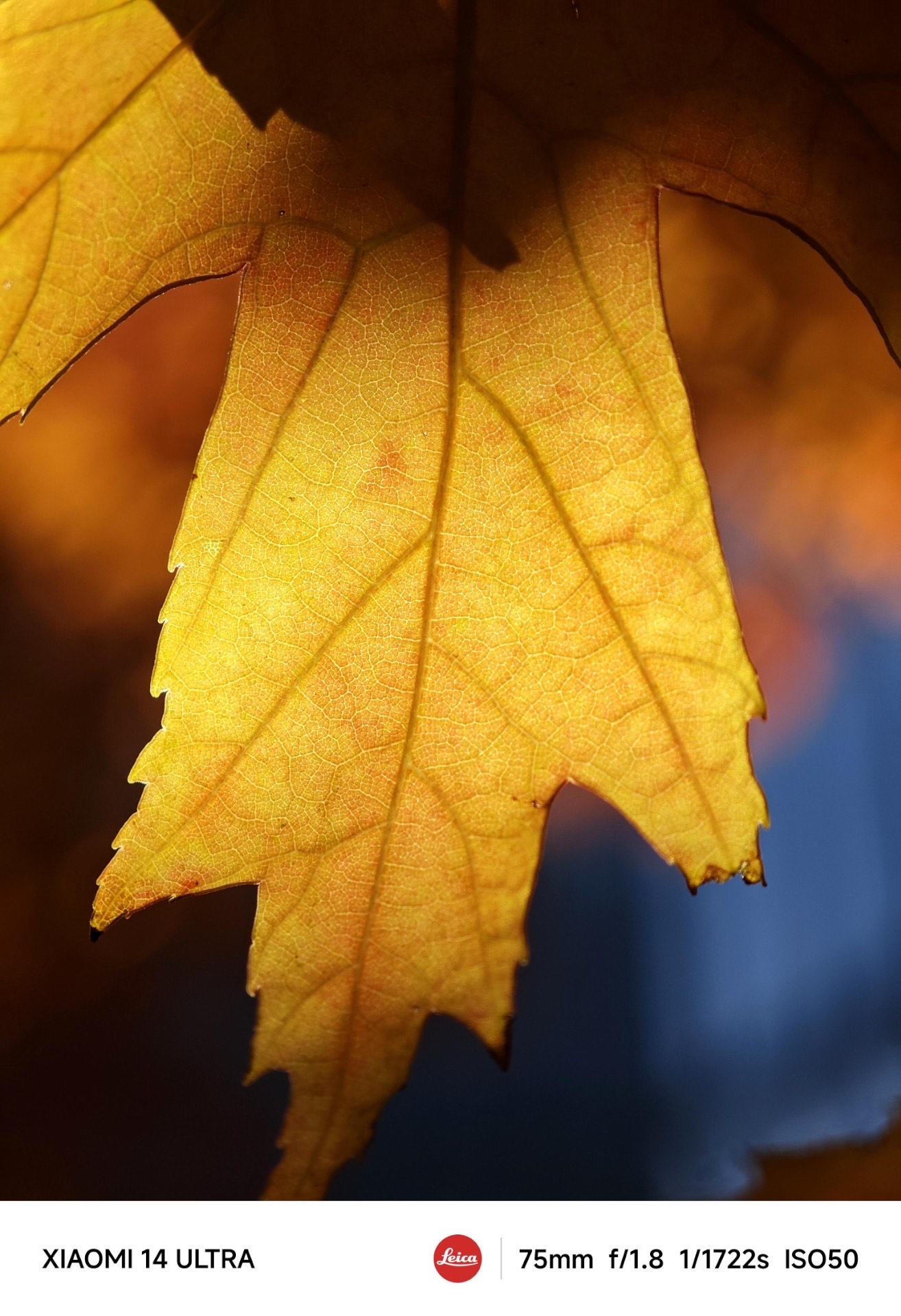 最近拿着小米14Ultra拍秋天,真的打开新世界大门!试了超级微距模式,树叶脉络甚至细毛都清晰到起鸡皮疙瘩,可惜平台压缩画质,原图细节更震撼,你们一定得自己试试📸