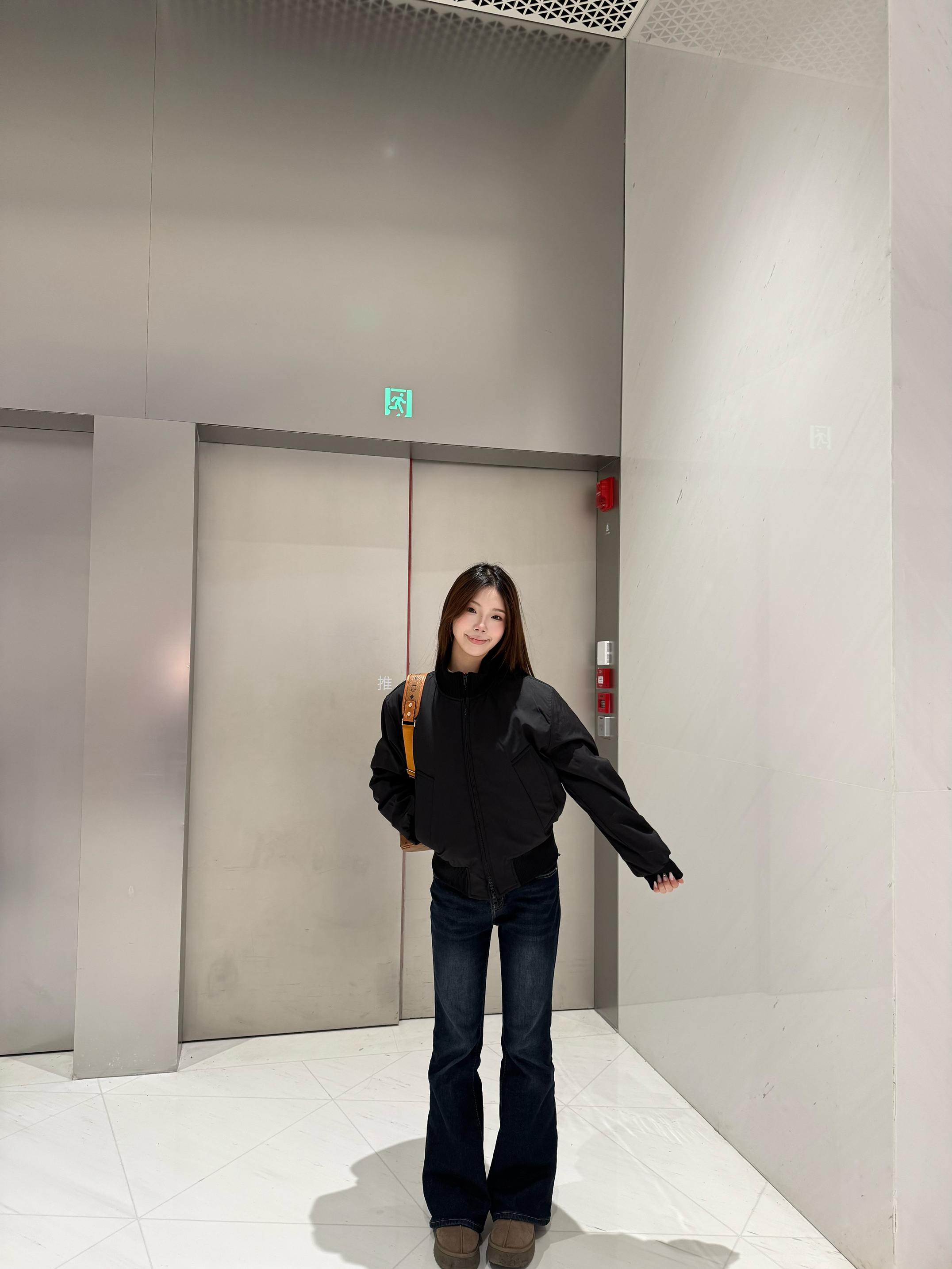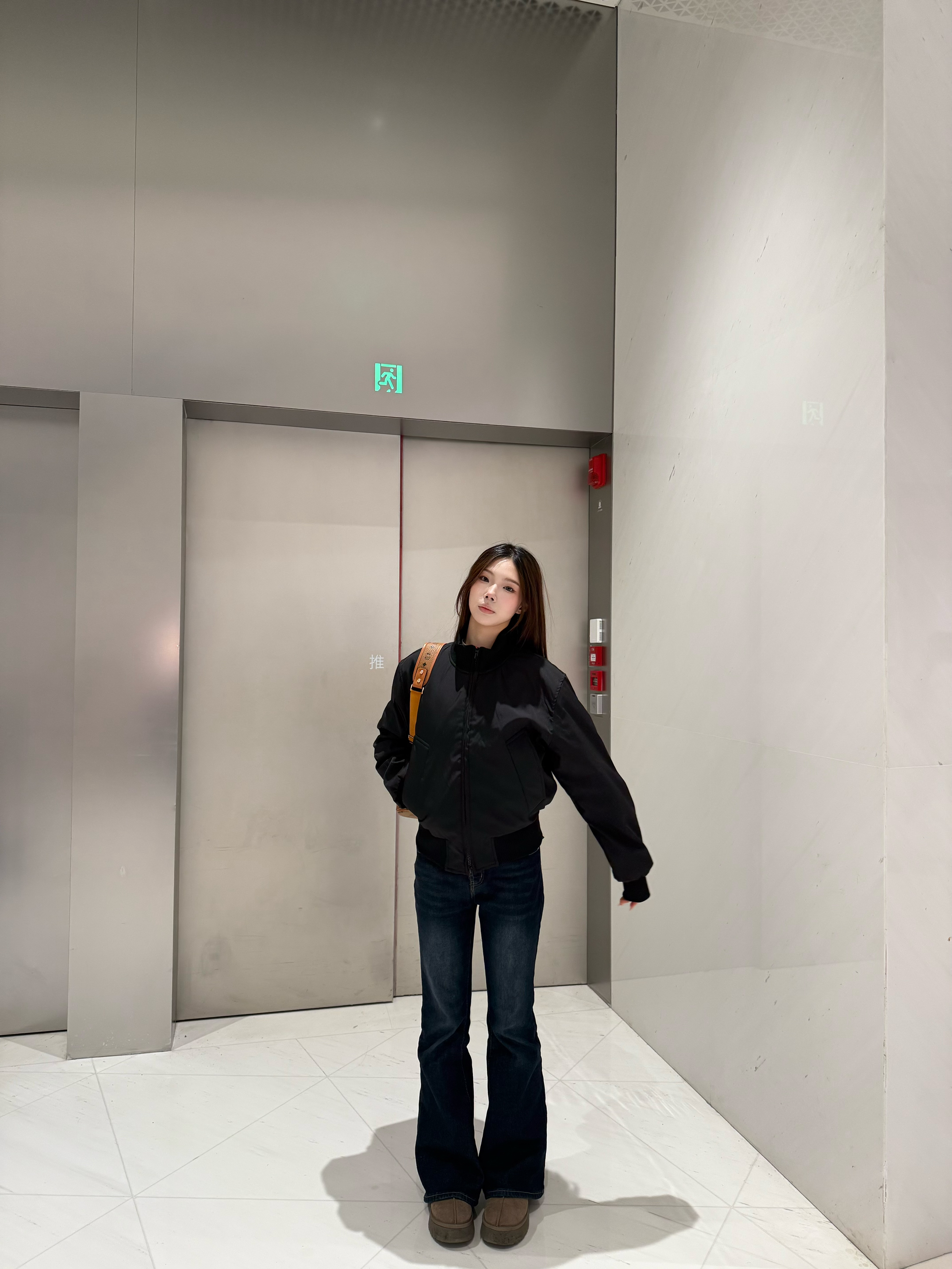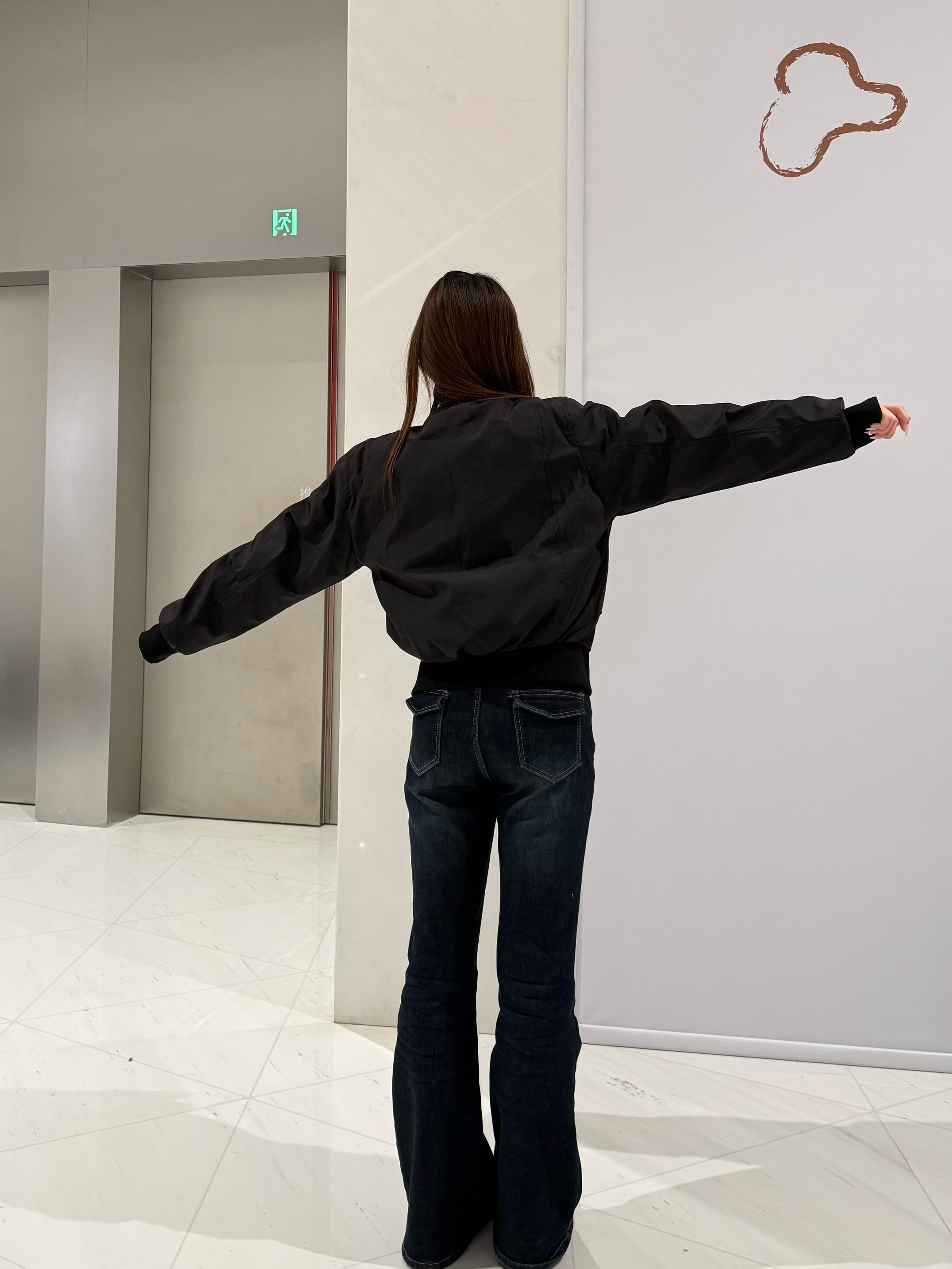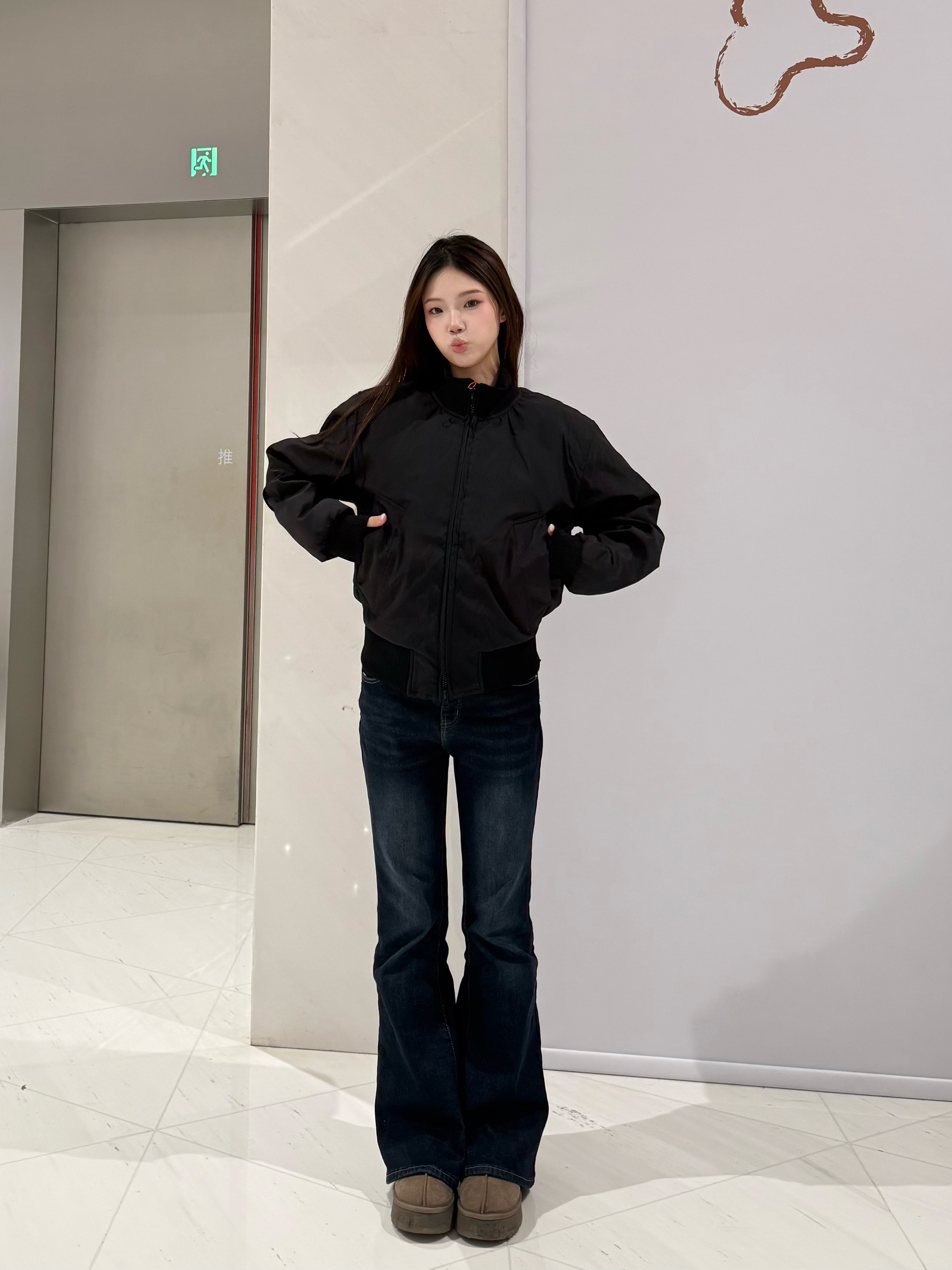 黑色飞行夹克也太百搭了吧🖤 利落的版型超显气场,面料挺括还不压个子 搭深色微喇牛仔裤,酷飒韩系风直接拉满 踩一双勃肯鞋,又帅又有松弛感,日常出街超合适!