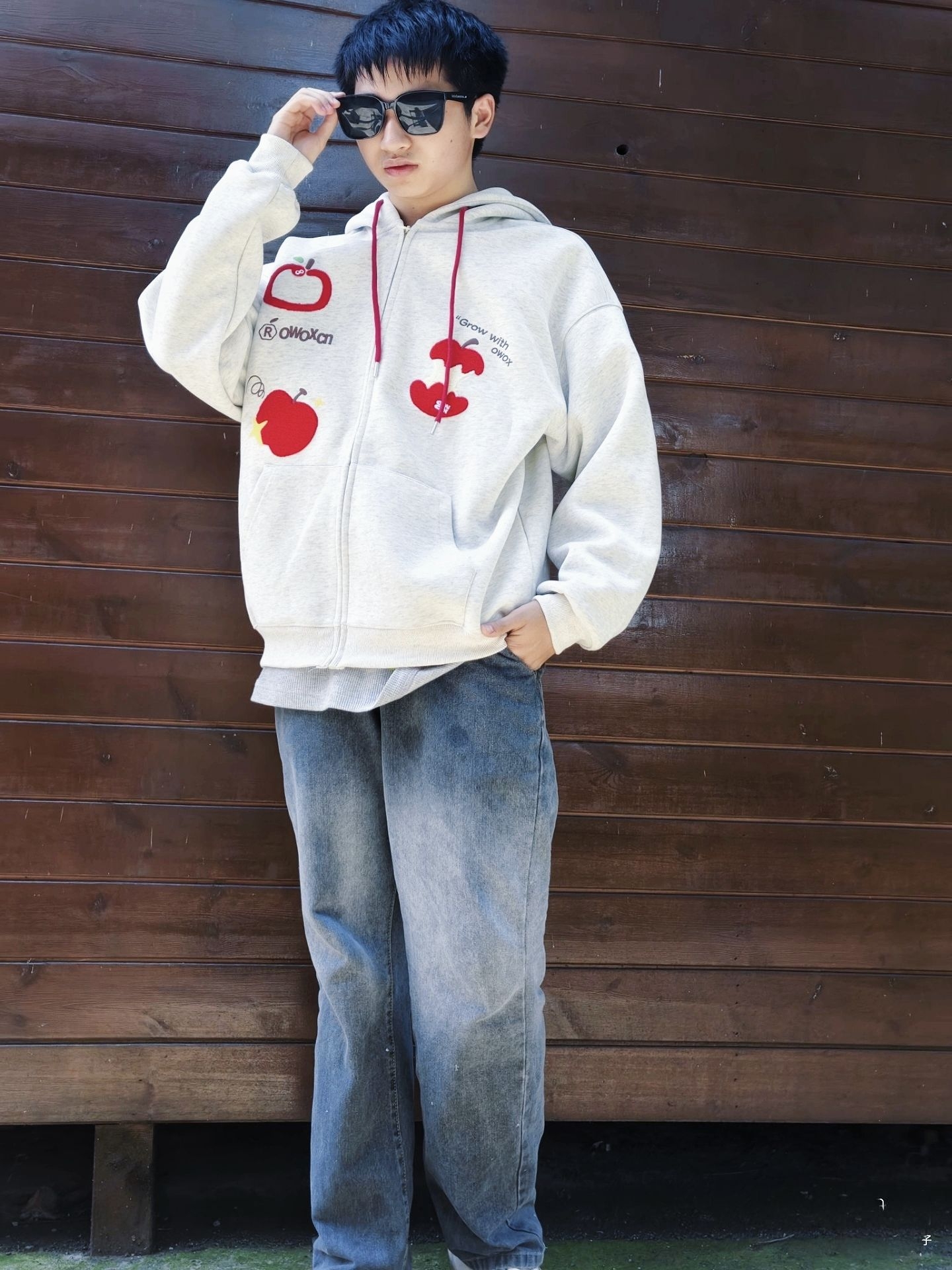 卫衣样式:主体以白红配色,中间绣着3个不同的苹果刺绣为这件卫衣增添了十足的趣味感。好看又有趣。 上身感受:卫衣很暖和,很是和冬天和秋天,整天蓬松。而且衣服摸起来也很舒服,两侧的口袋包也能装下很多的东西。 穿搭推荐:这件衣服对于我们来说还是比较百搭的牛仔裤等,复古板鞋,或者跑鞋等都可以搭配。而且还可以作为冲锋衣的内搭。