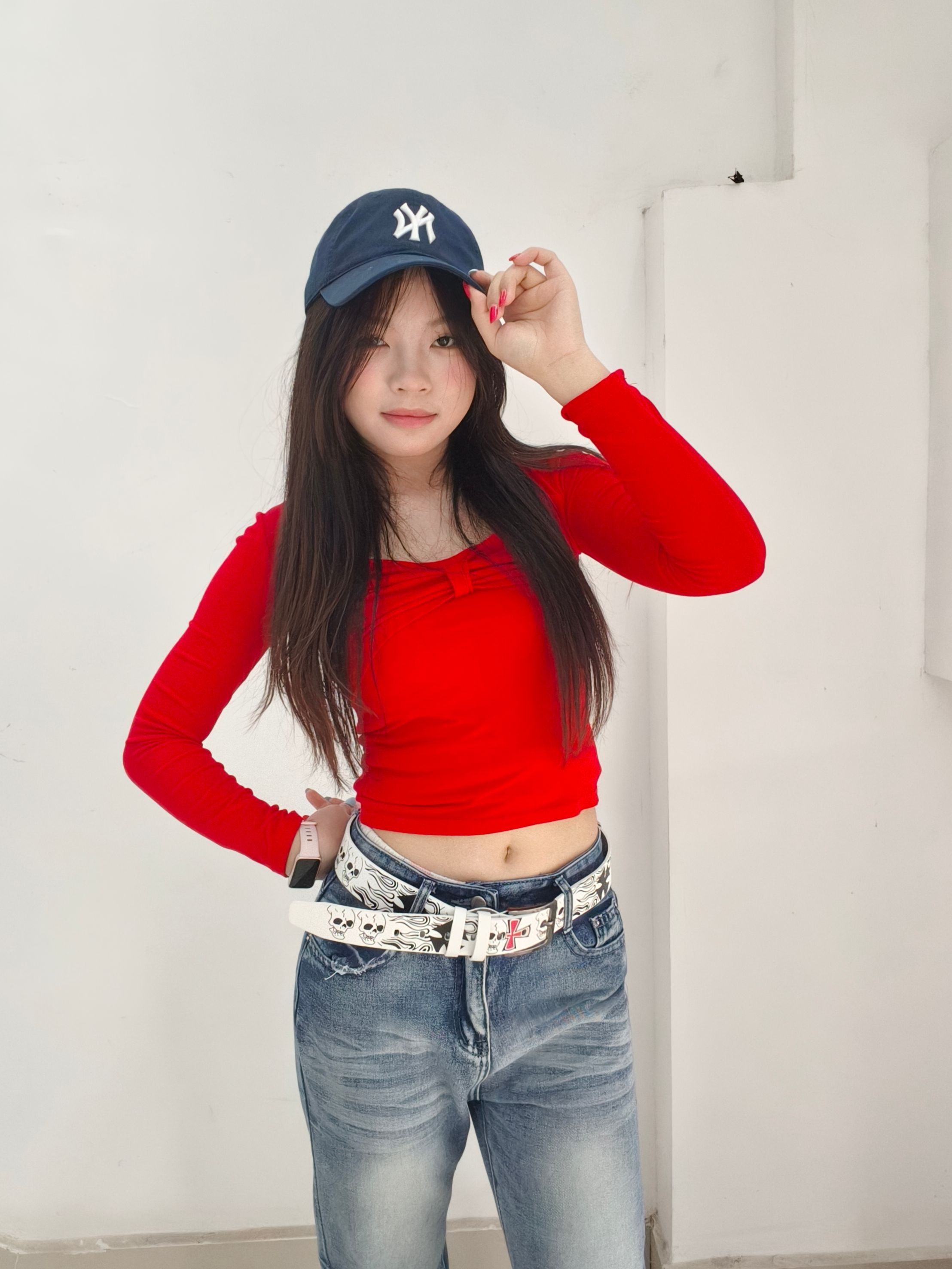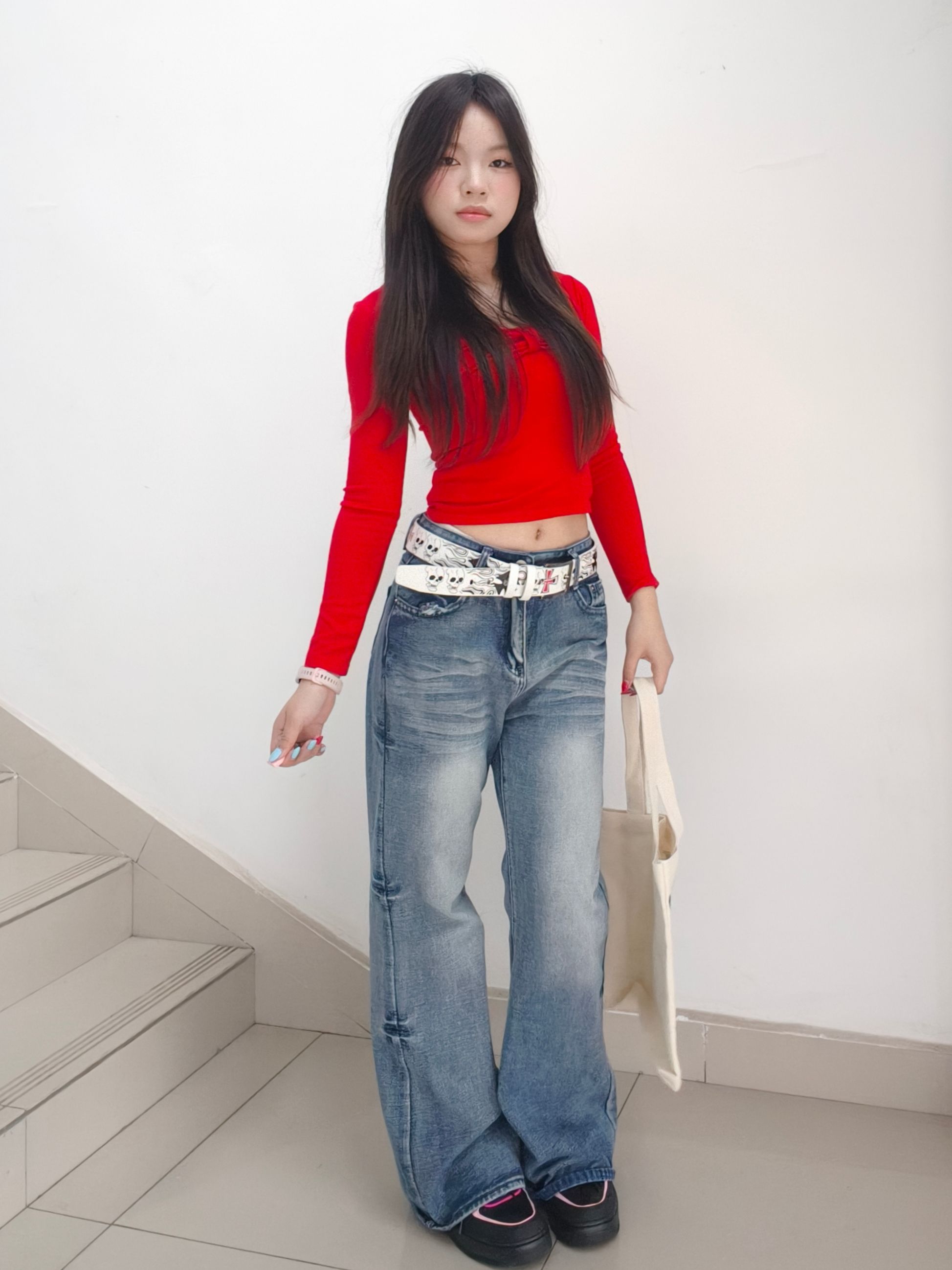轻亚的皮带配上红色上衣真的超级酷 衣服的面料特别亲肤,上身很舒服 修身的版型超显瘦 真的超级好看~