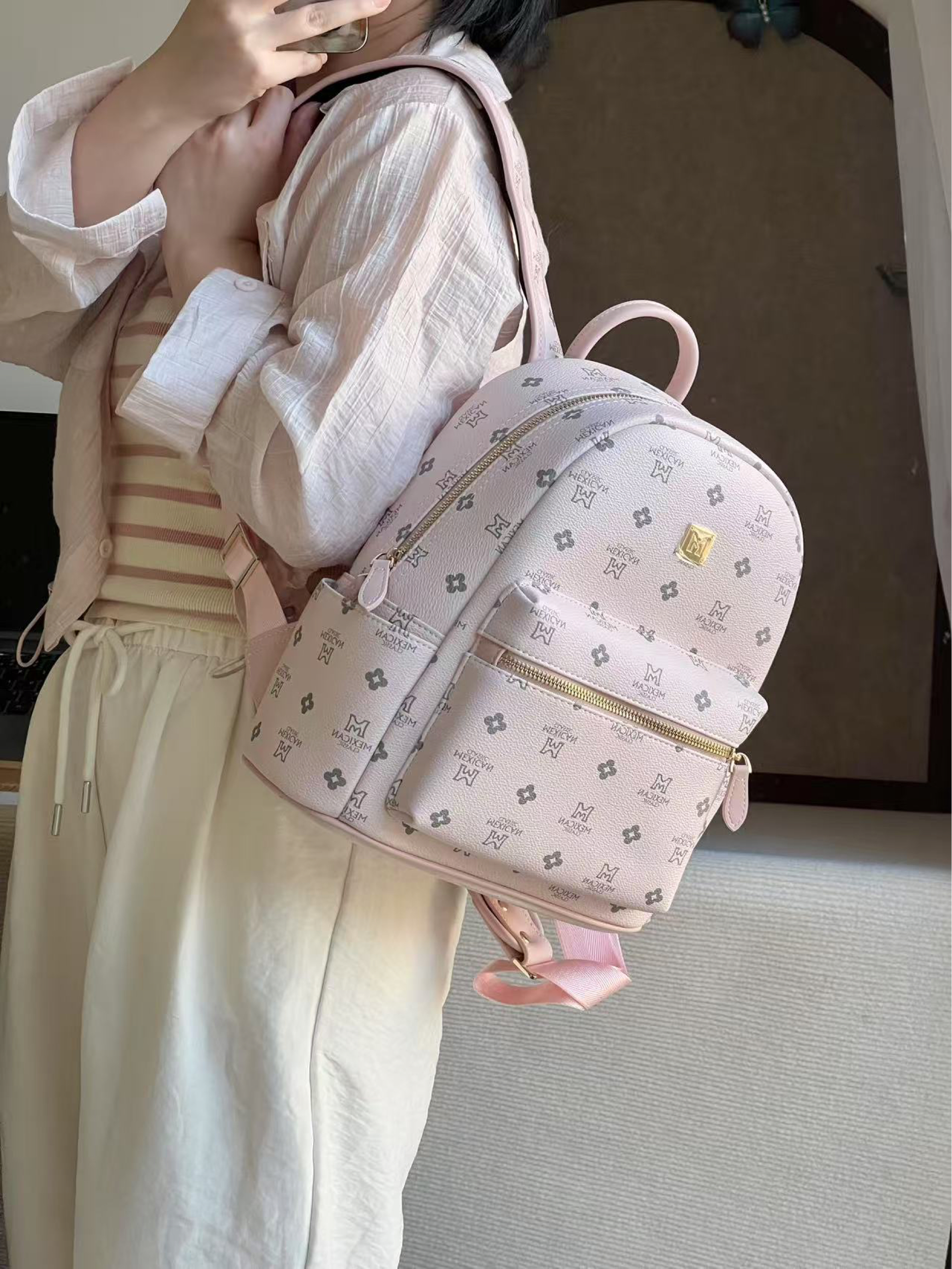 本篇笔记关联了Mexican/稻草人 2025新款时尚百搭大容量高级质感通勤旅游背包书包双肩包 粉色等商品,为用户提供真实的使用体验和购买参考。