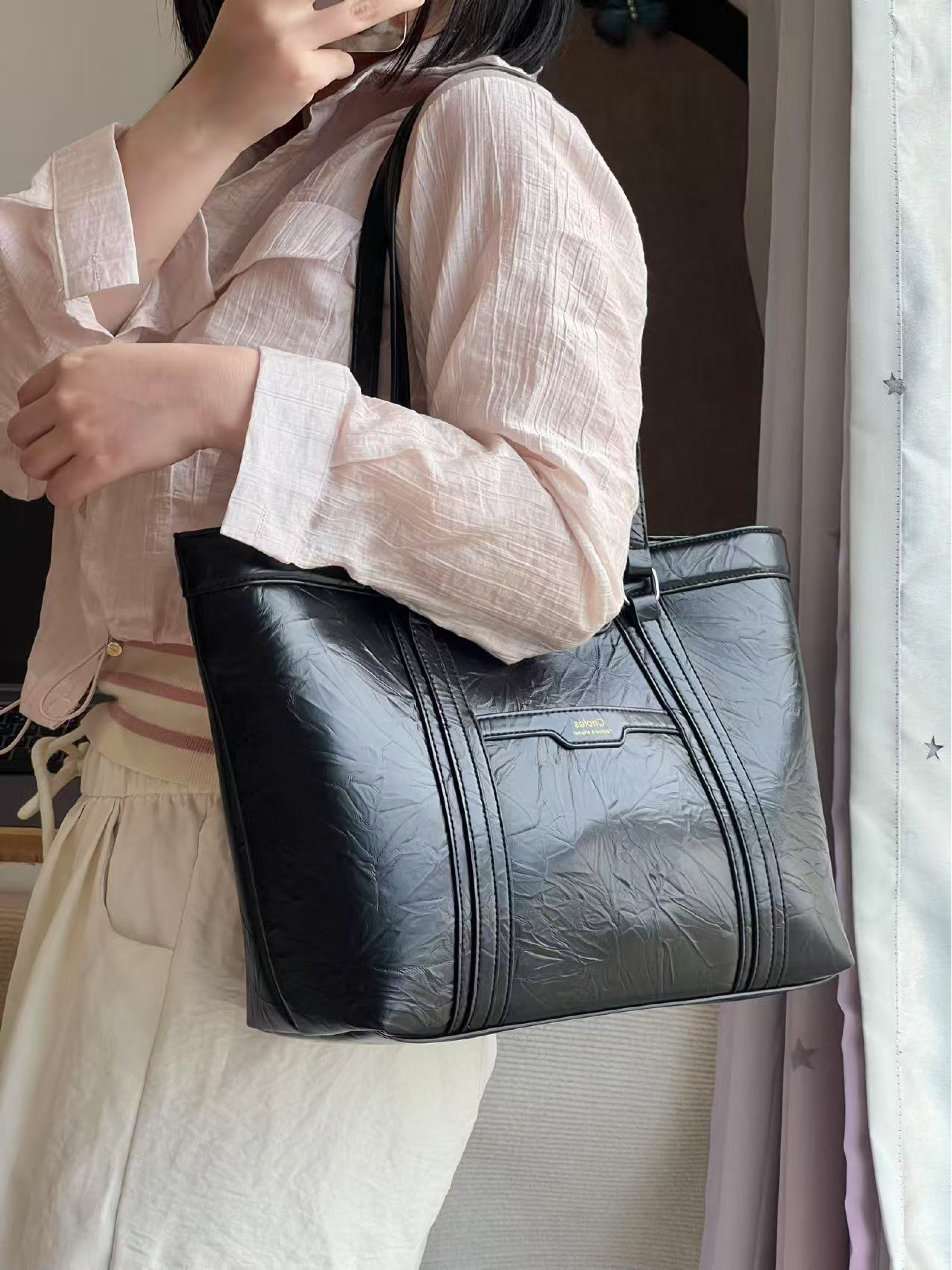 本篇笔记关联了CNOLES 简约通勤大容量高级感百搭质感PU个性款式腋下包手提包单肩包 黑色等商品,为用户提供真实的使用体验和购买参考。