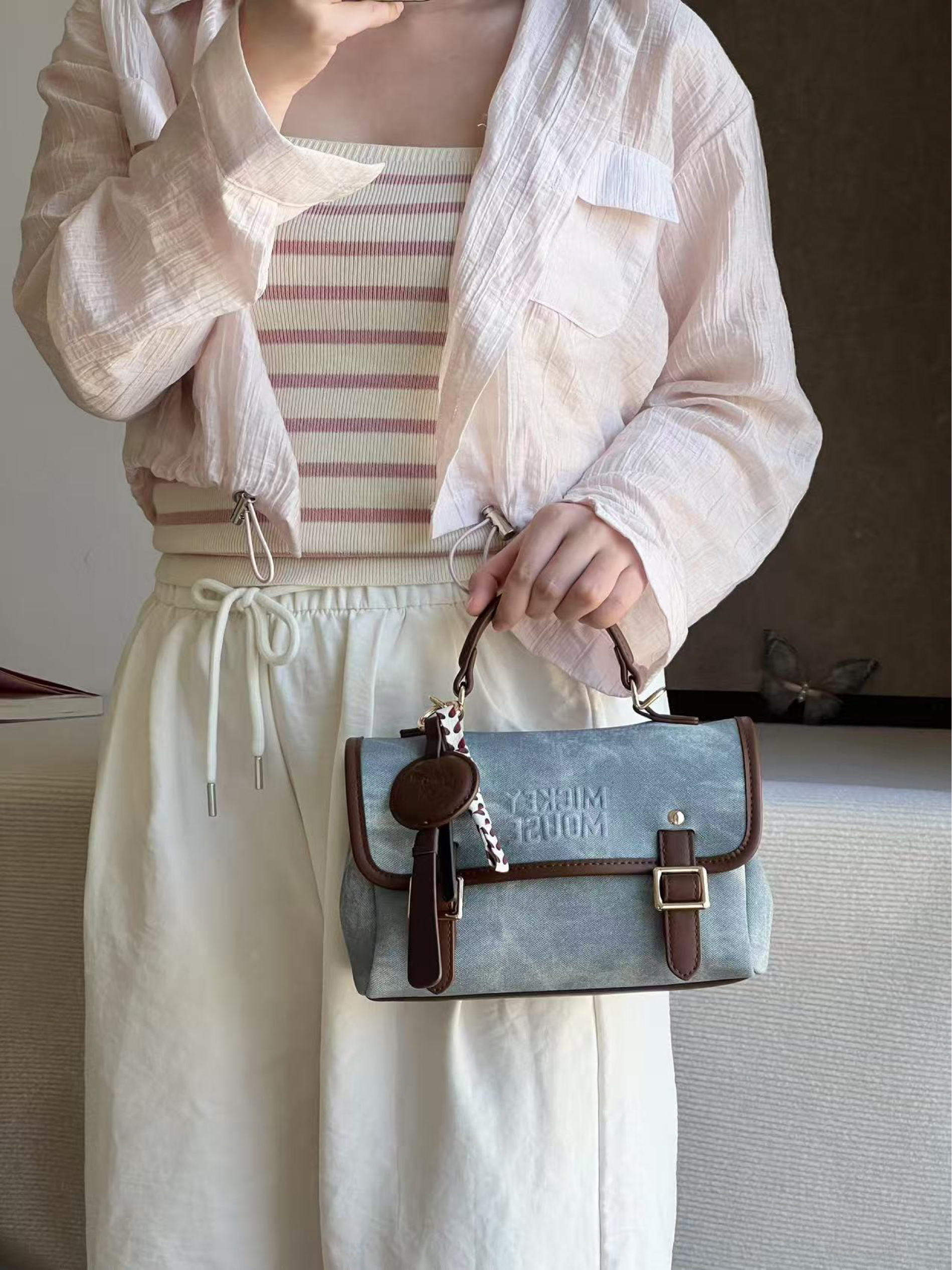 本篇笔记关联了Disney/迪士尼 米奇系列 复古丹宁风时尚通勤水洗印花逛街约会出游PU高中生大学生包小背包斜挎手提包双肩包 牛仔蓝等商品,为用户提供真实的使用体验和购买参考。