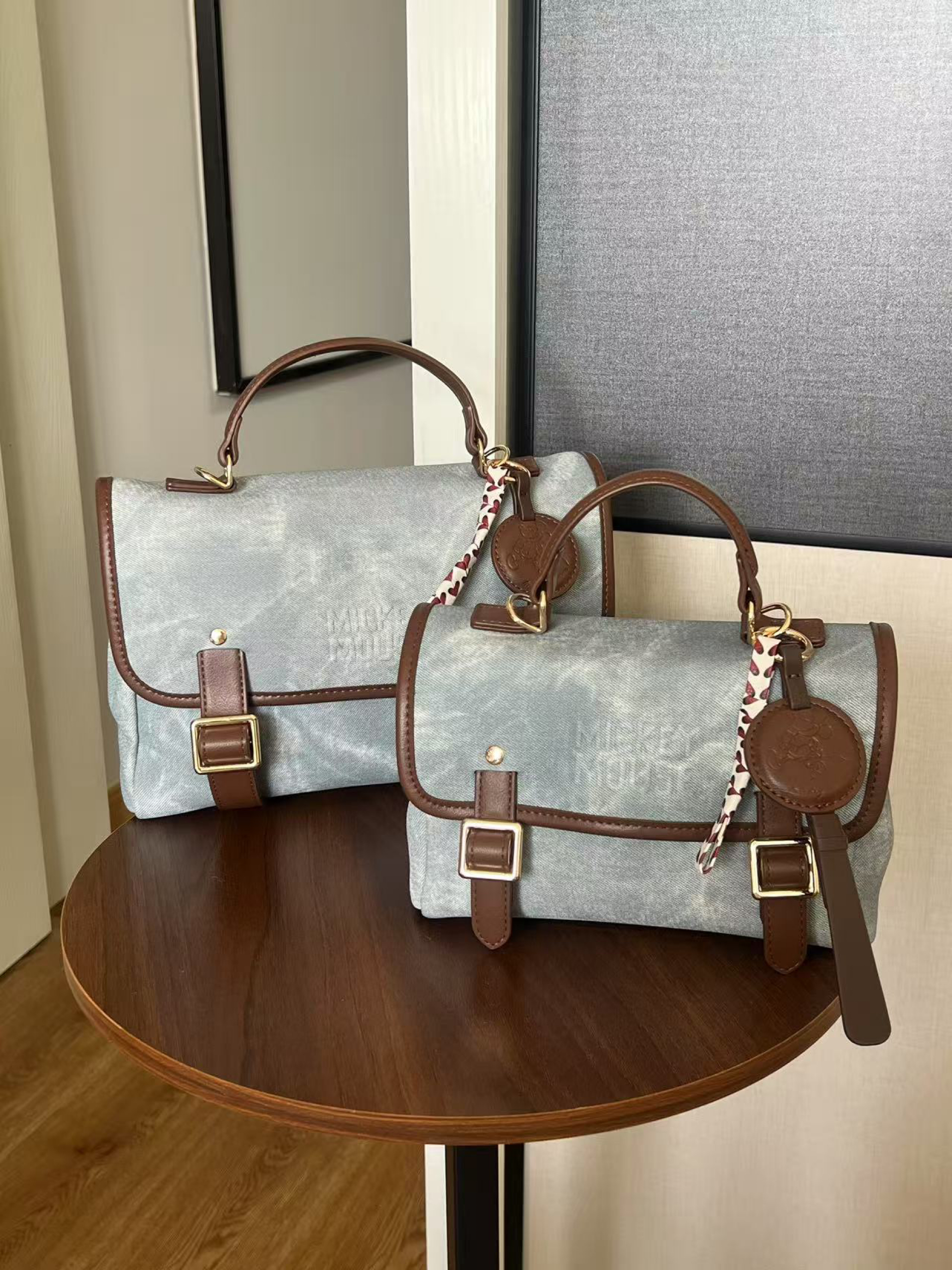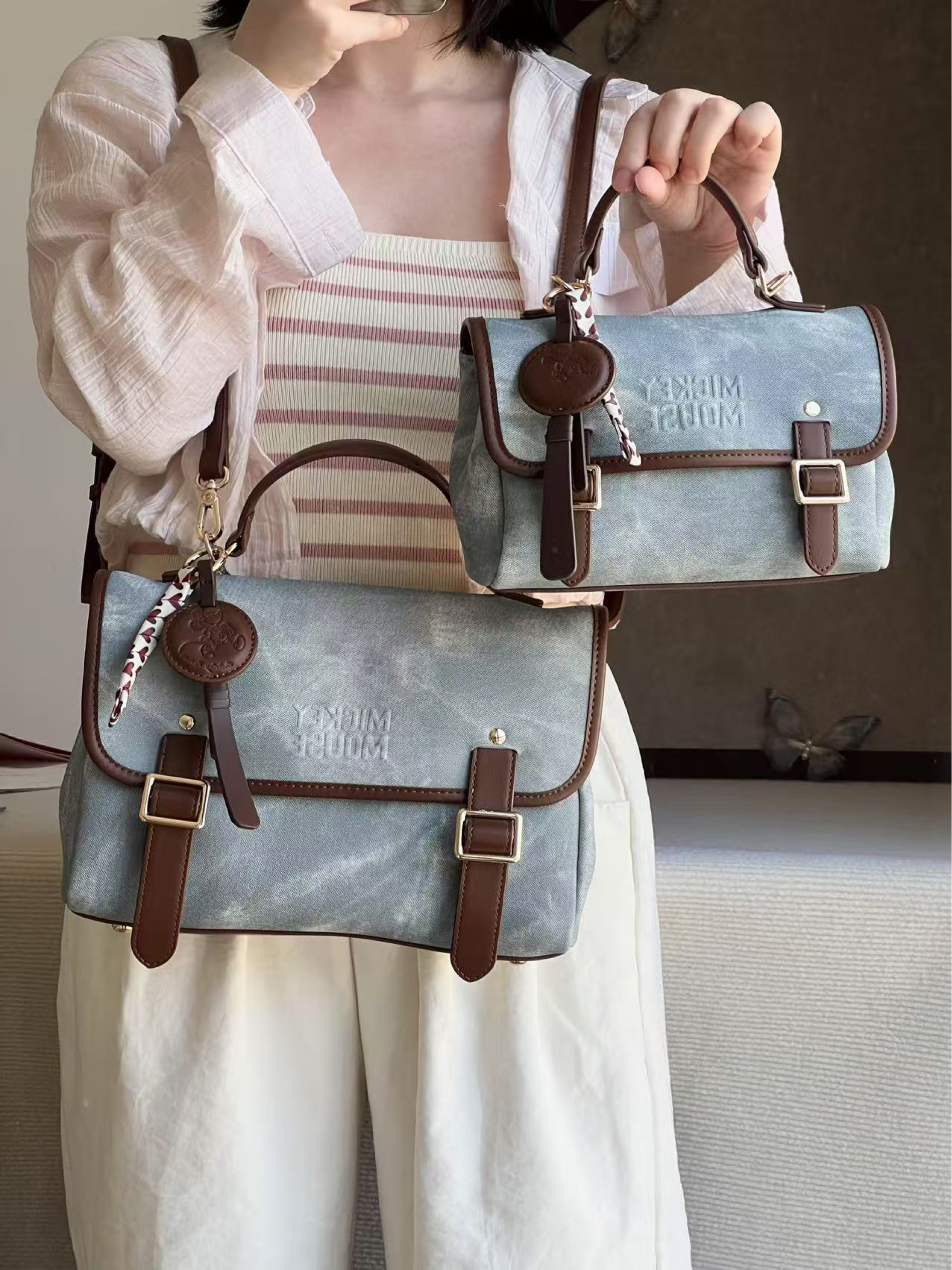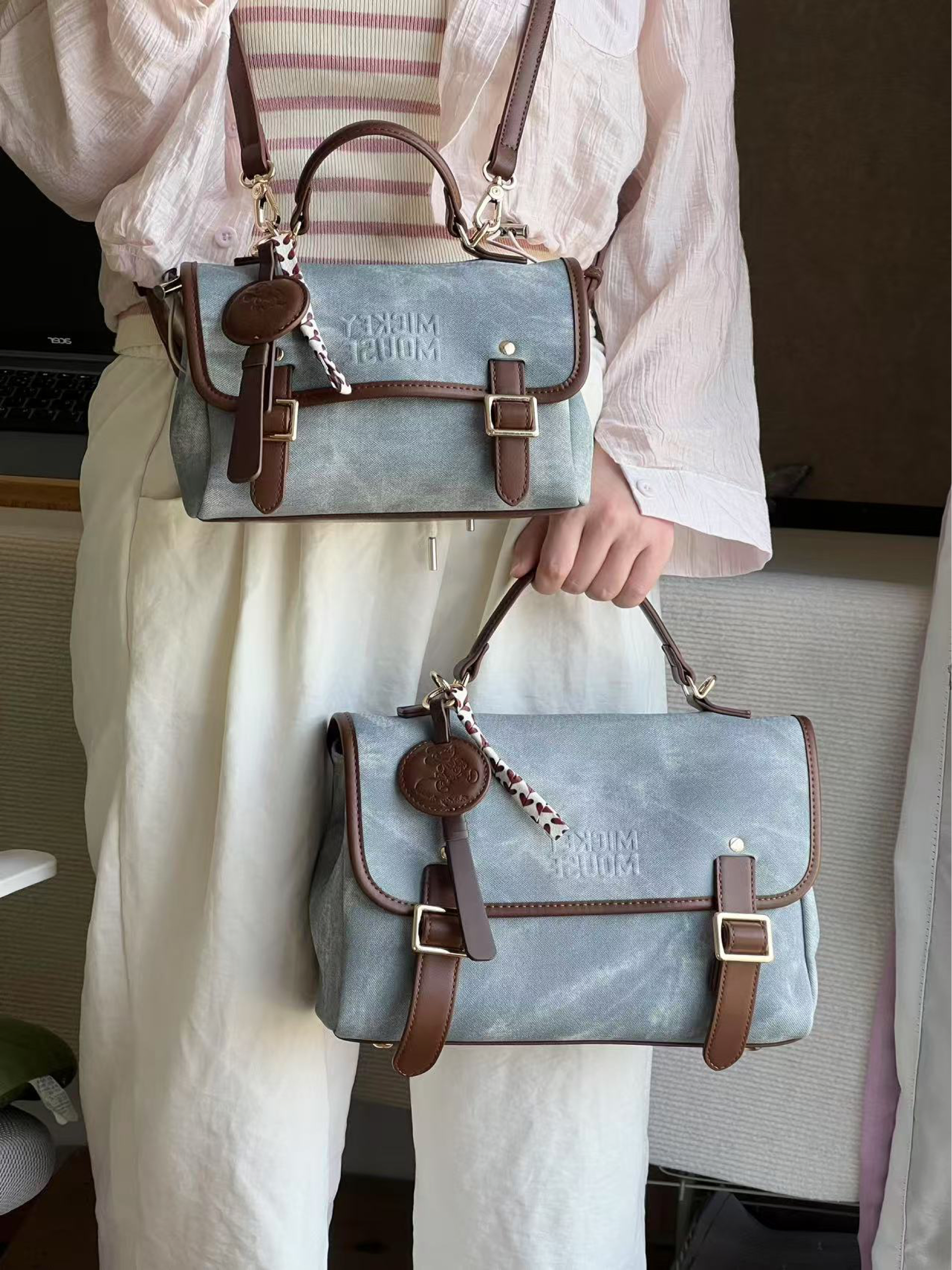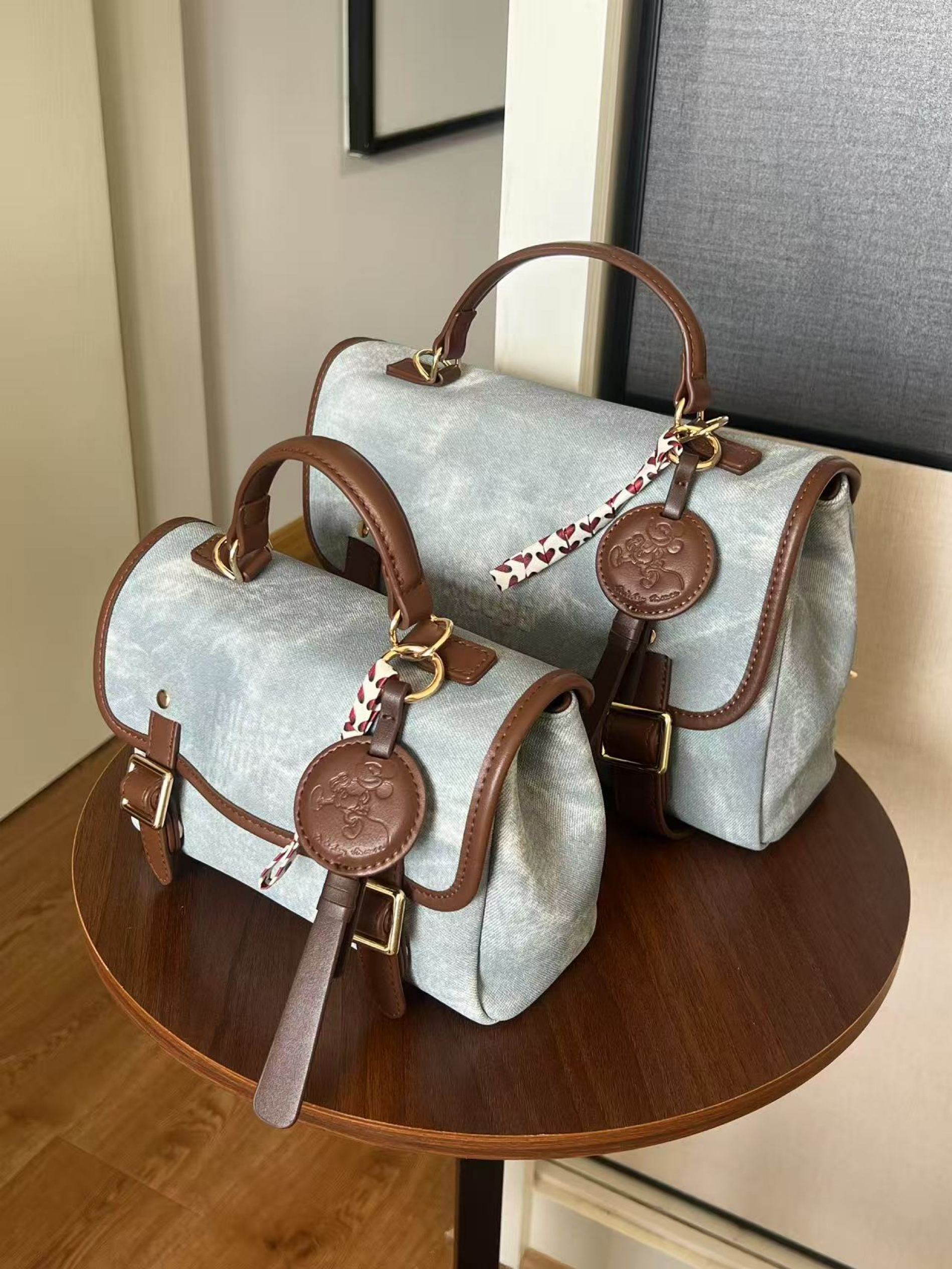 而且是!两个Disney双肩包耶 都介么可爱 这下真是很难抉择了 包包是皮质的 但做出了牛仔的颜色和纹理 尊嘟敲百搭 双肩➕手提➕单肩➕斜挎都ok 小号感觉适合平常出去玩 大号可以通勤 *͈ᴗ͈ˬᴗ͈ෆ大家按各自需求选就好啦ww