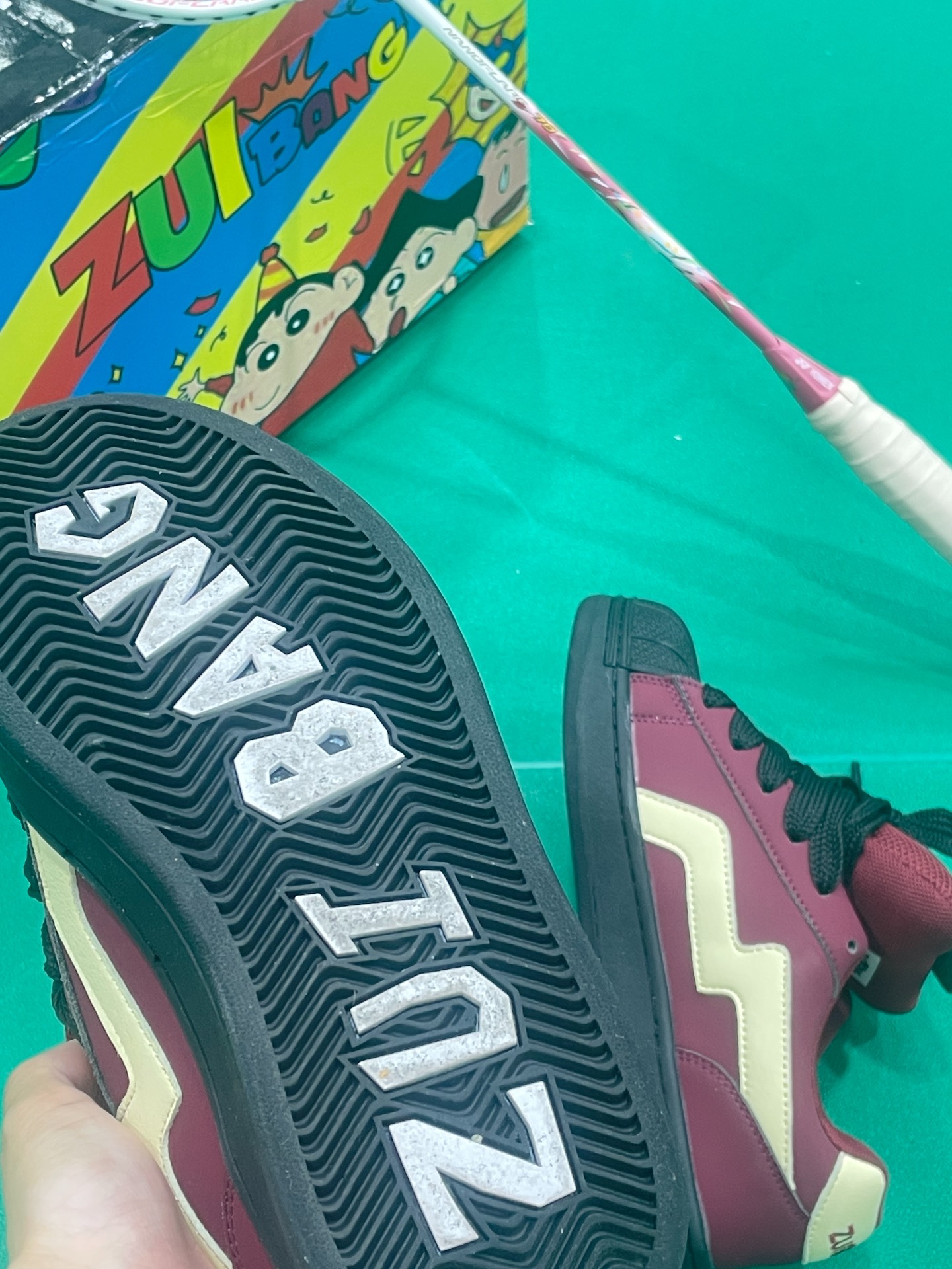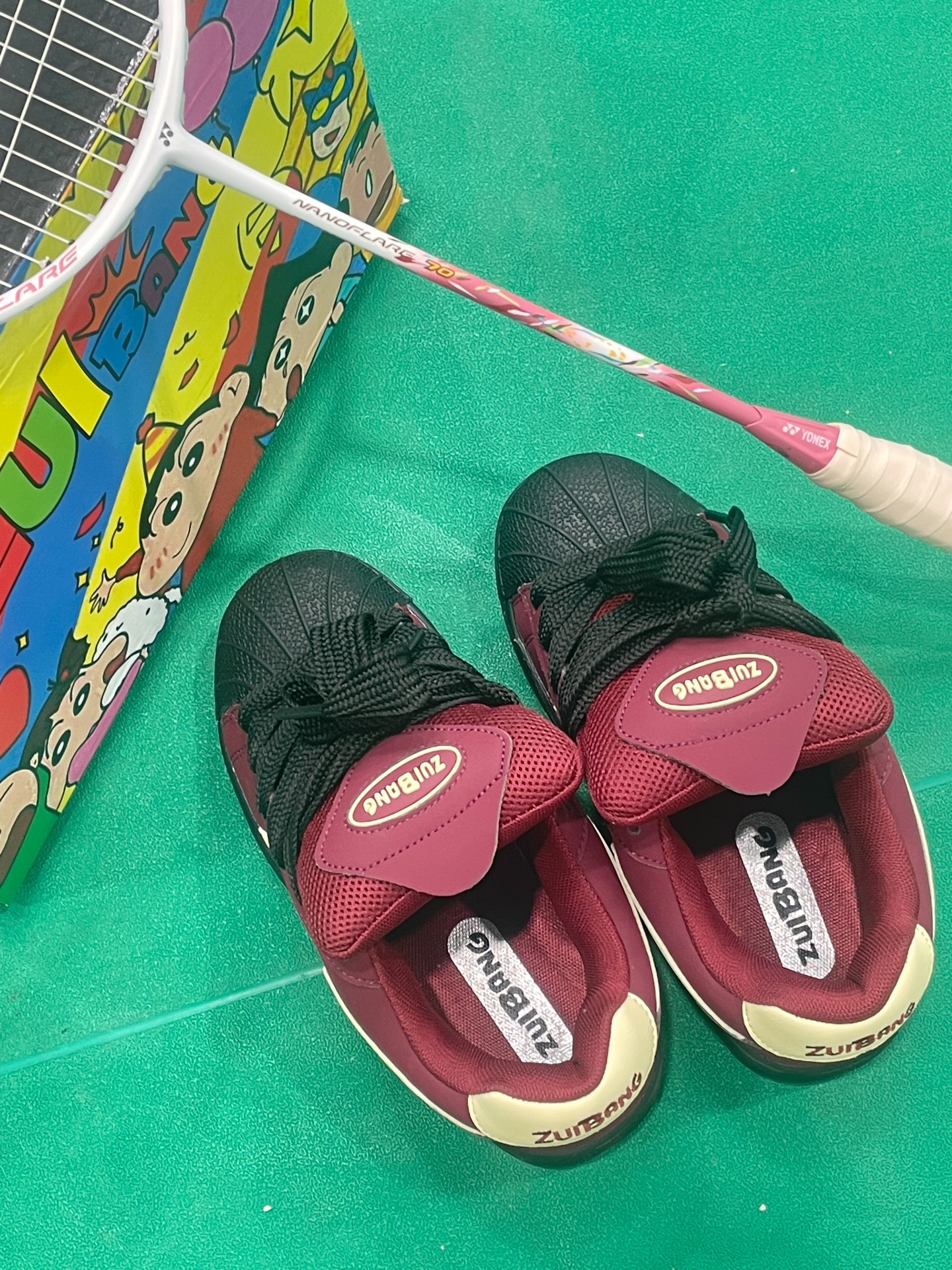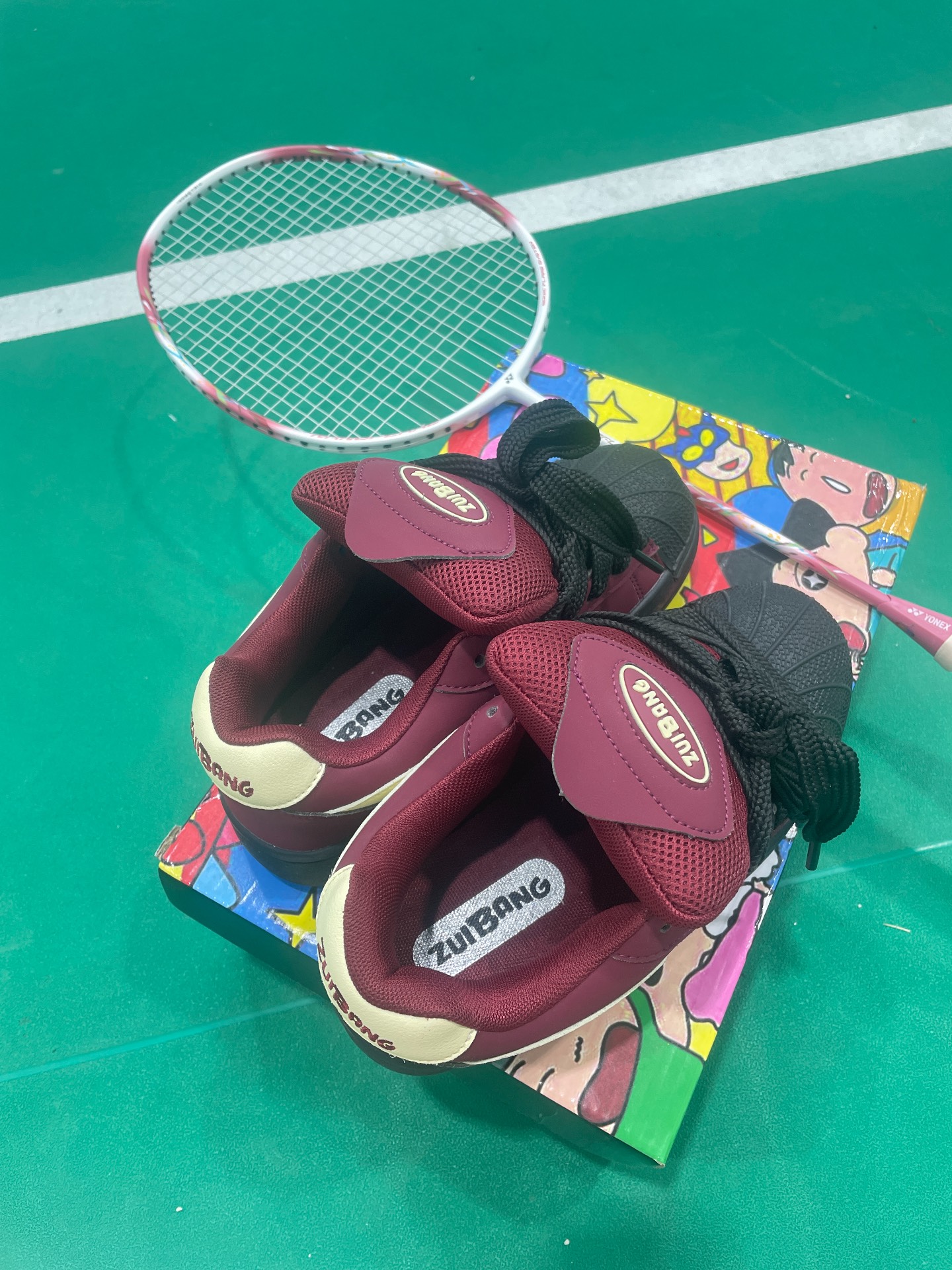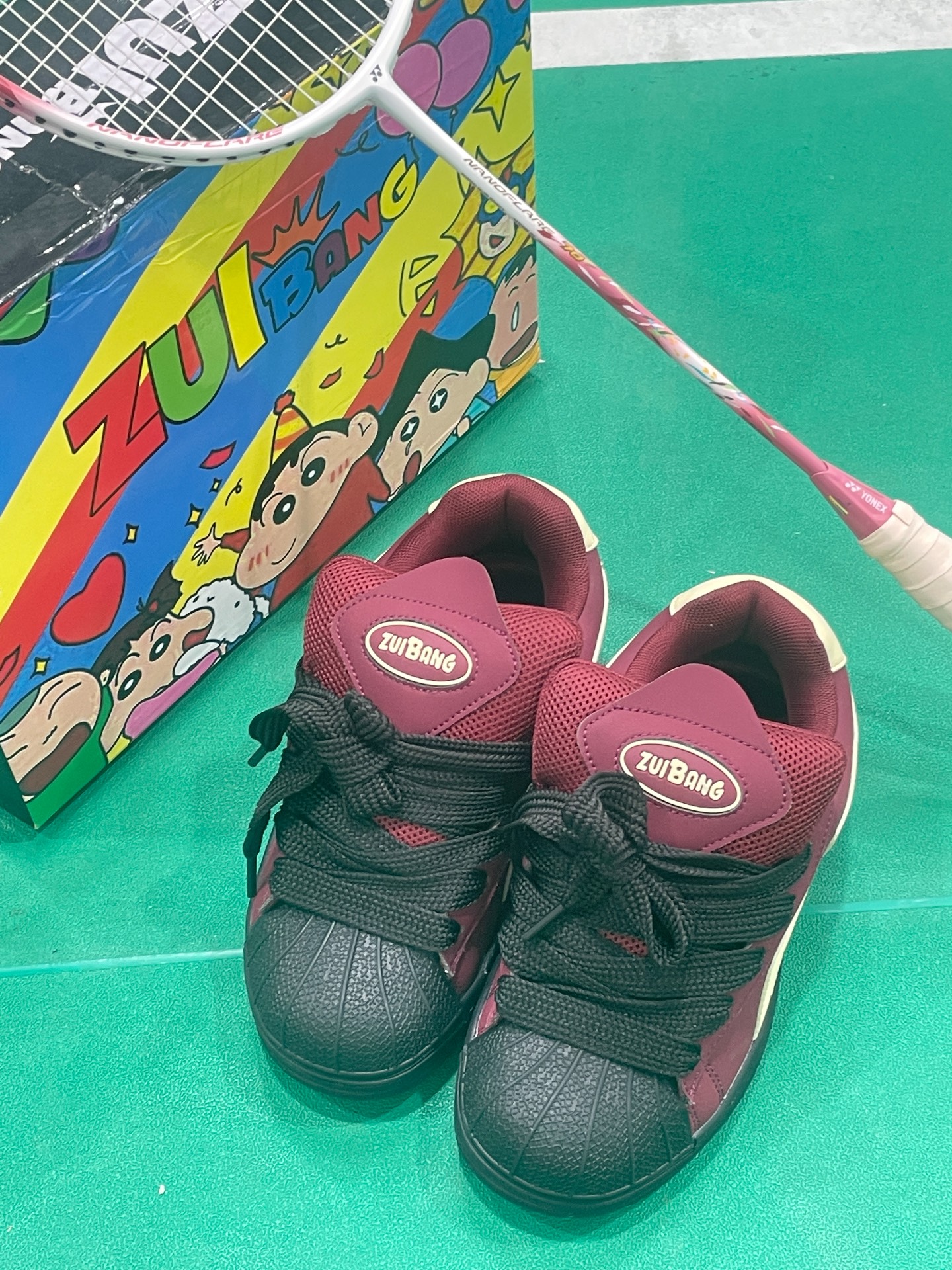 最近穿这双酒红色低帮板鞋去球馆打球,被好几个球友问链接!外观胖嘟嘟的,logo设计很突出,氛围感拉满~抬起鞋还能看到独特风格的鞋底呢✨ 上脚轻盈透气,运动时没负担~性价比也不错~就是鞋码我觉得有点偏大,我平时穿37码,这个得选36码才合脚😂
