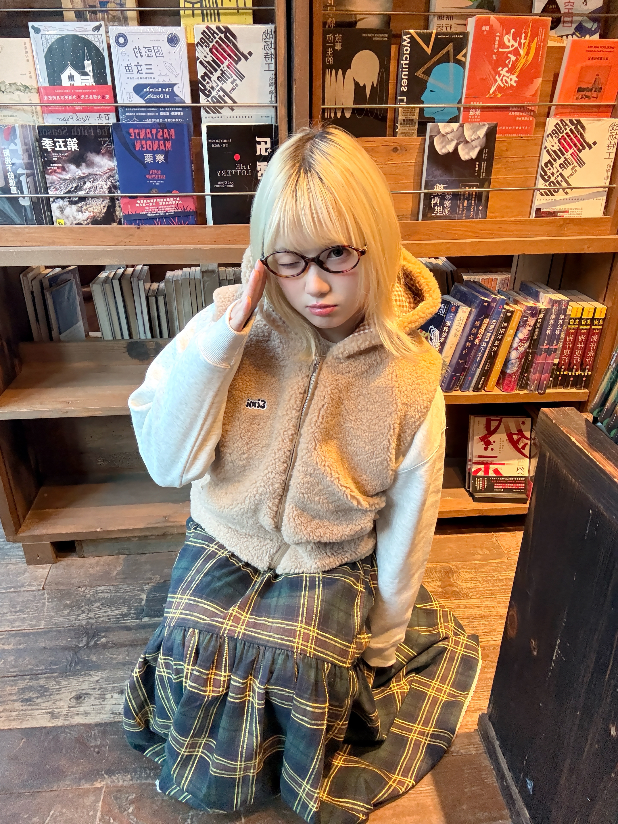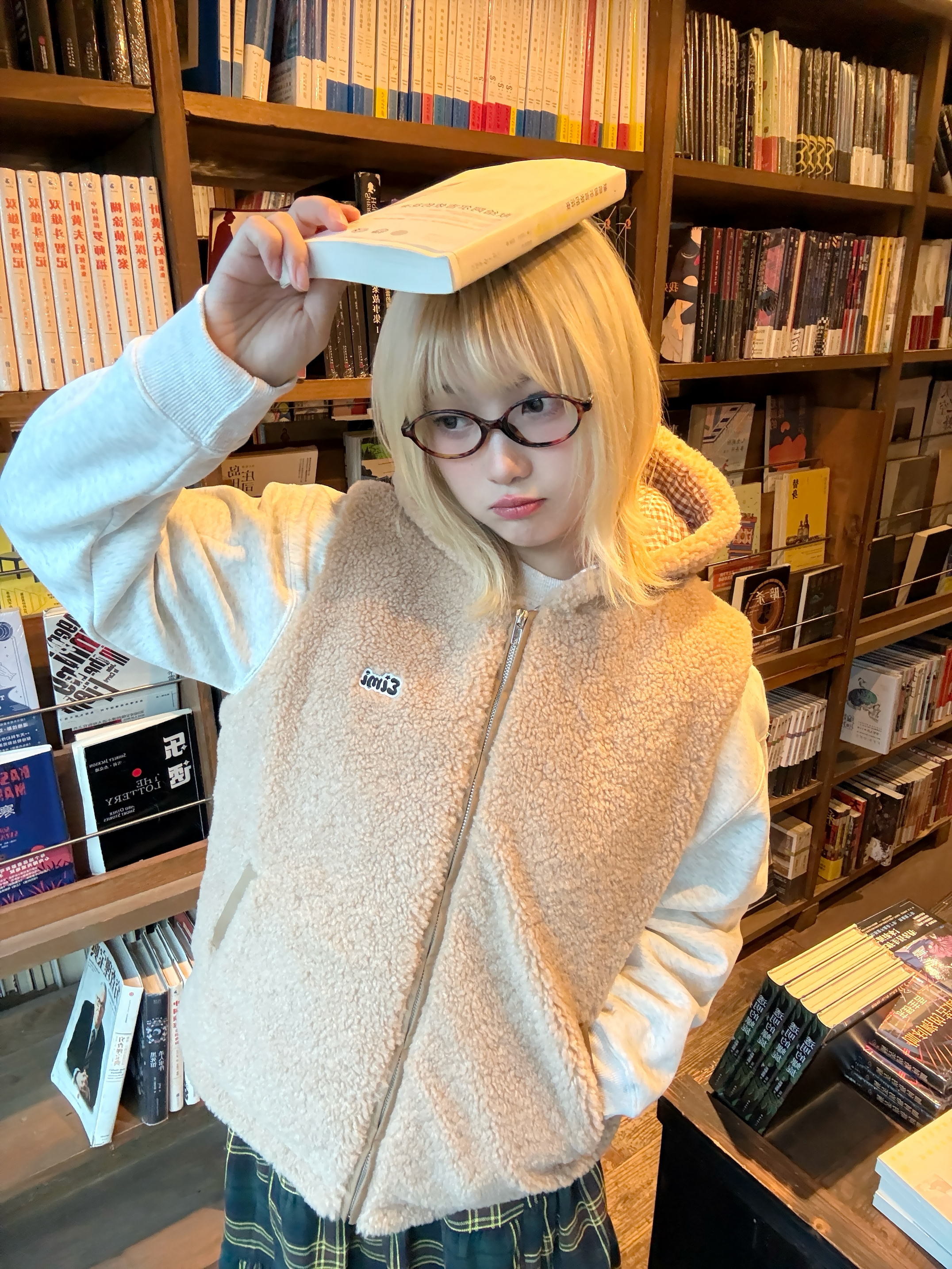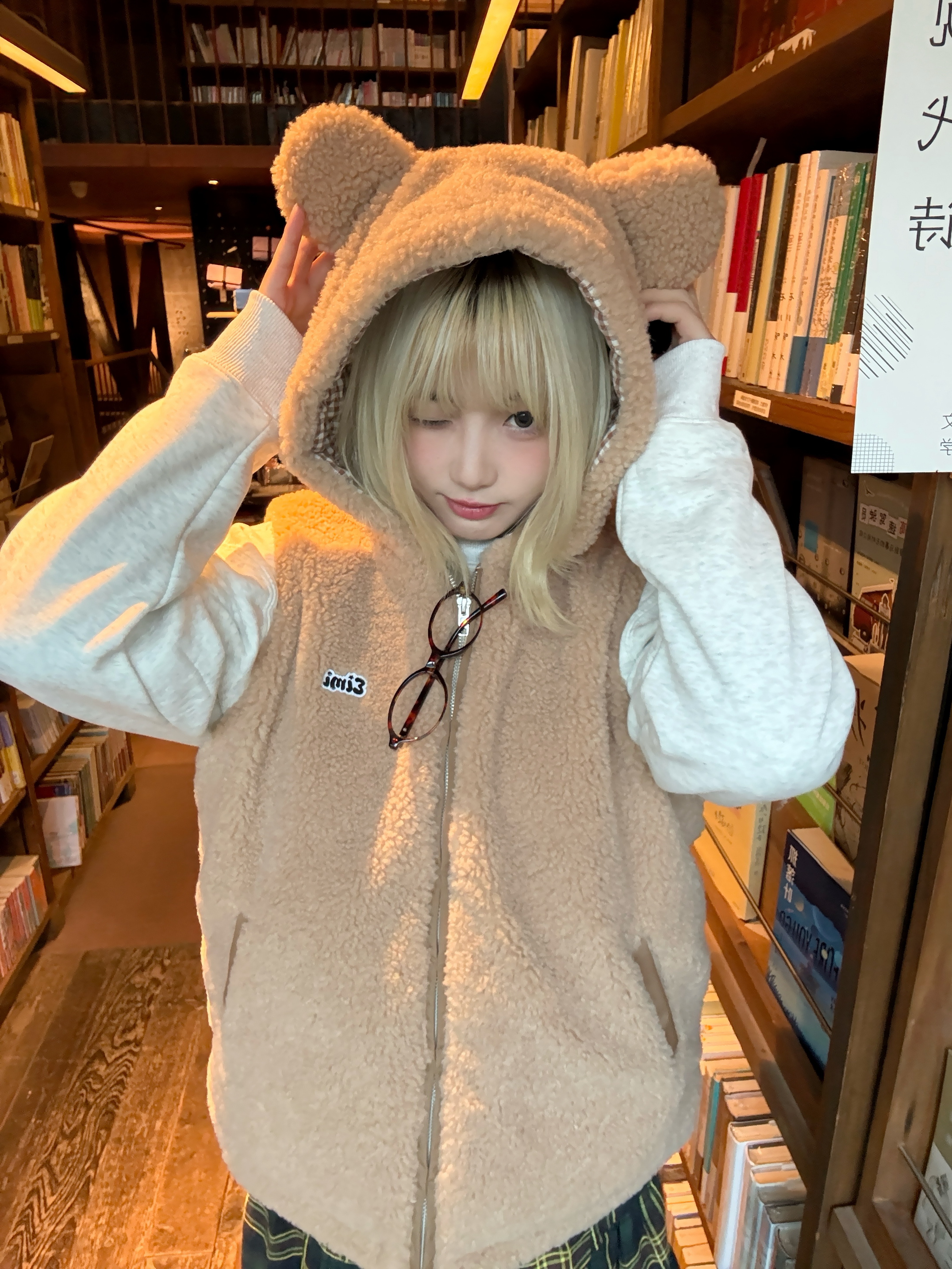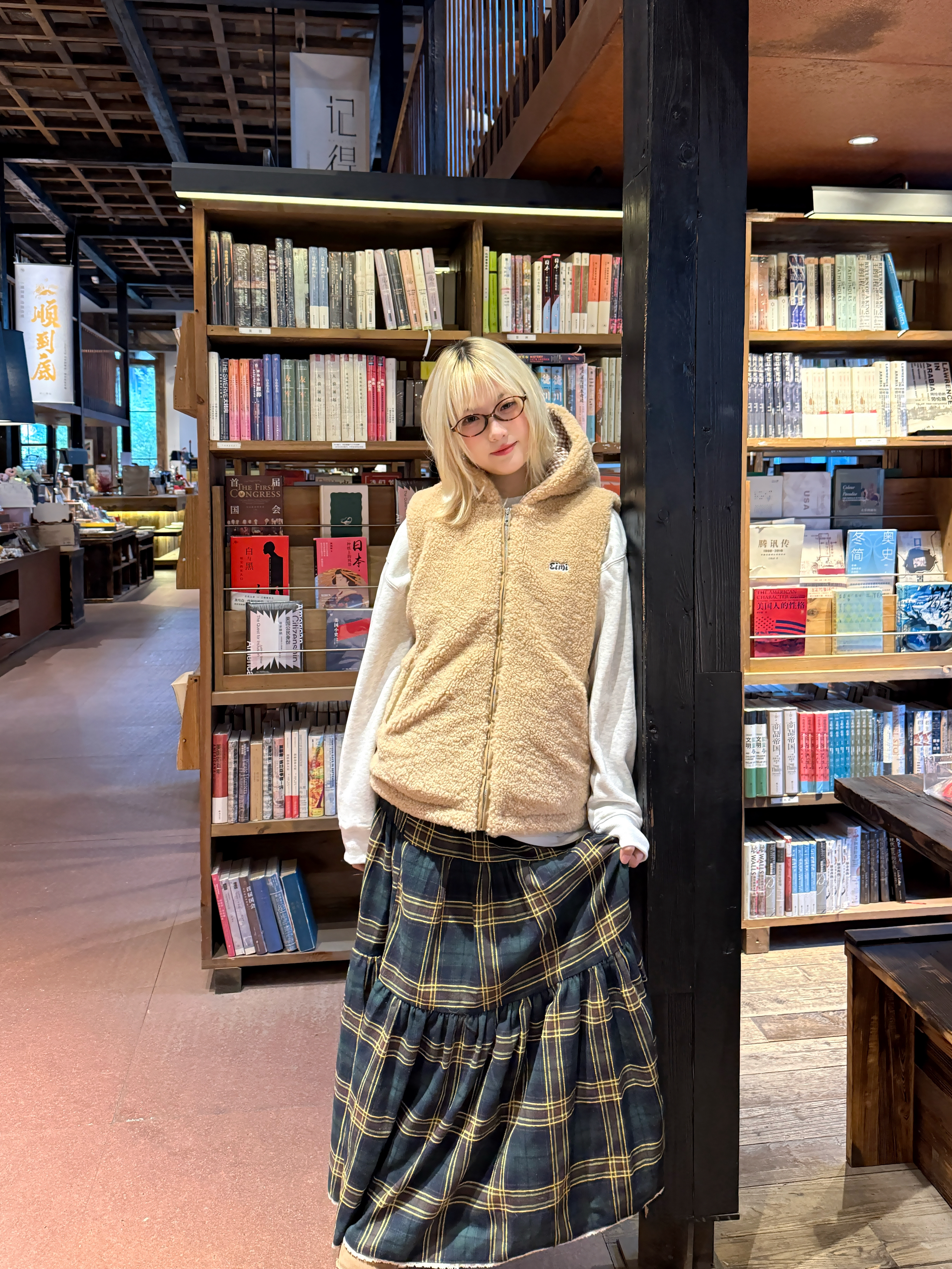 一到冬天就爱穿羊羔毛实在是太可爱啦 熊熊马甲萌度拉满了 搭配的格子长裙和雪地靴有点日系超好看