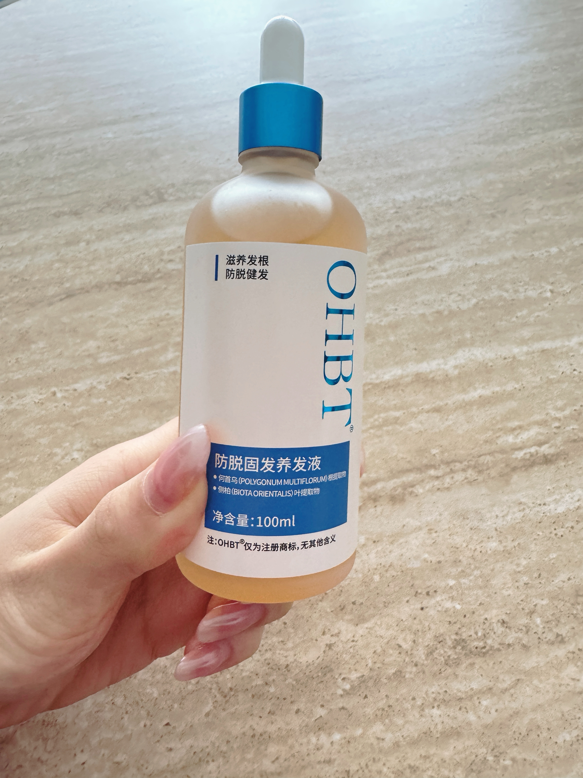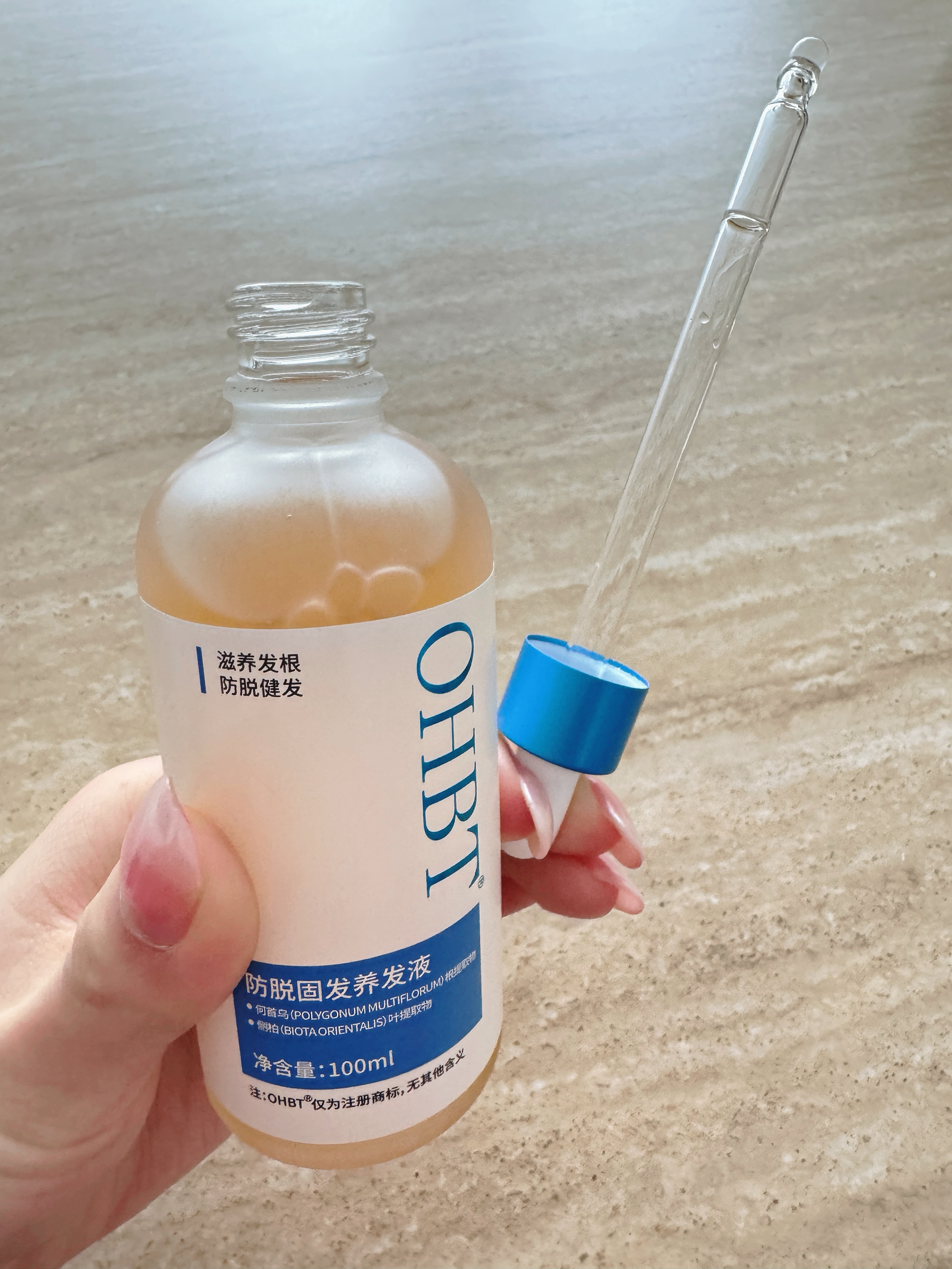 谁懂啊家人们!发际线后移真的太显老了😭 跟风入的这个OHBT育发液,本来没抱太大希望,结果用了一段时间直接惊到!它里面是何首乌、姜根这些植物提取的,用着也放心~质地清清爽爽的,抹在头皮上很快就吸收了,一点不黏腻,油头也不怕闷!我每天洗完头涂在发际线和发缝处,轻轻按摩几下,坚持下来发缝真的密了不少,发际线也慢慢长小绒毛了✨ 而且头皮出油、头屑的情况也改善了,头皮状态稳得一批!真心建议被脱发、发际线困...