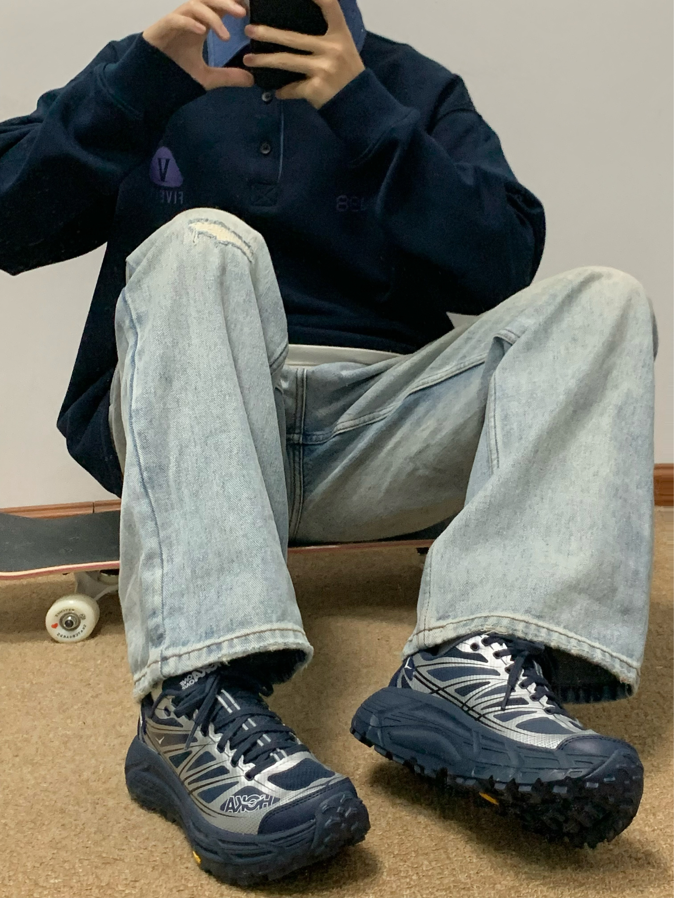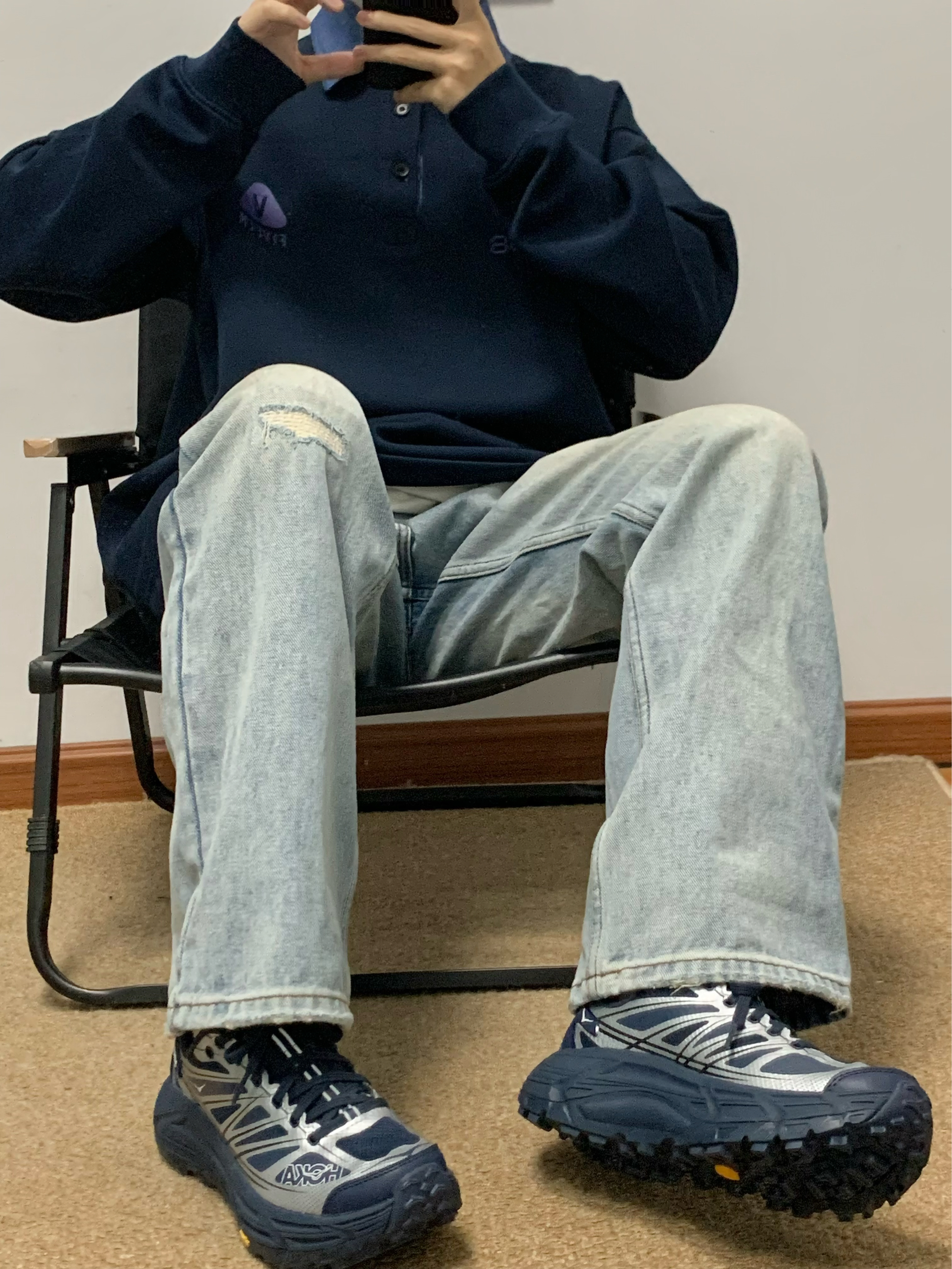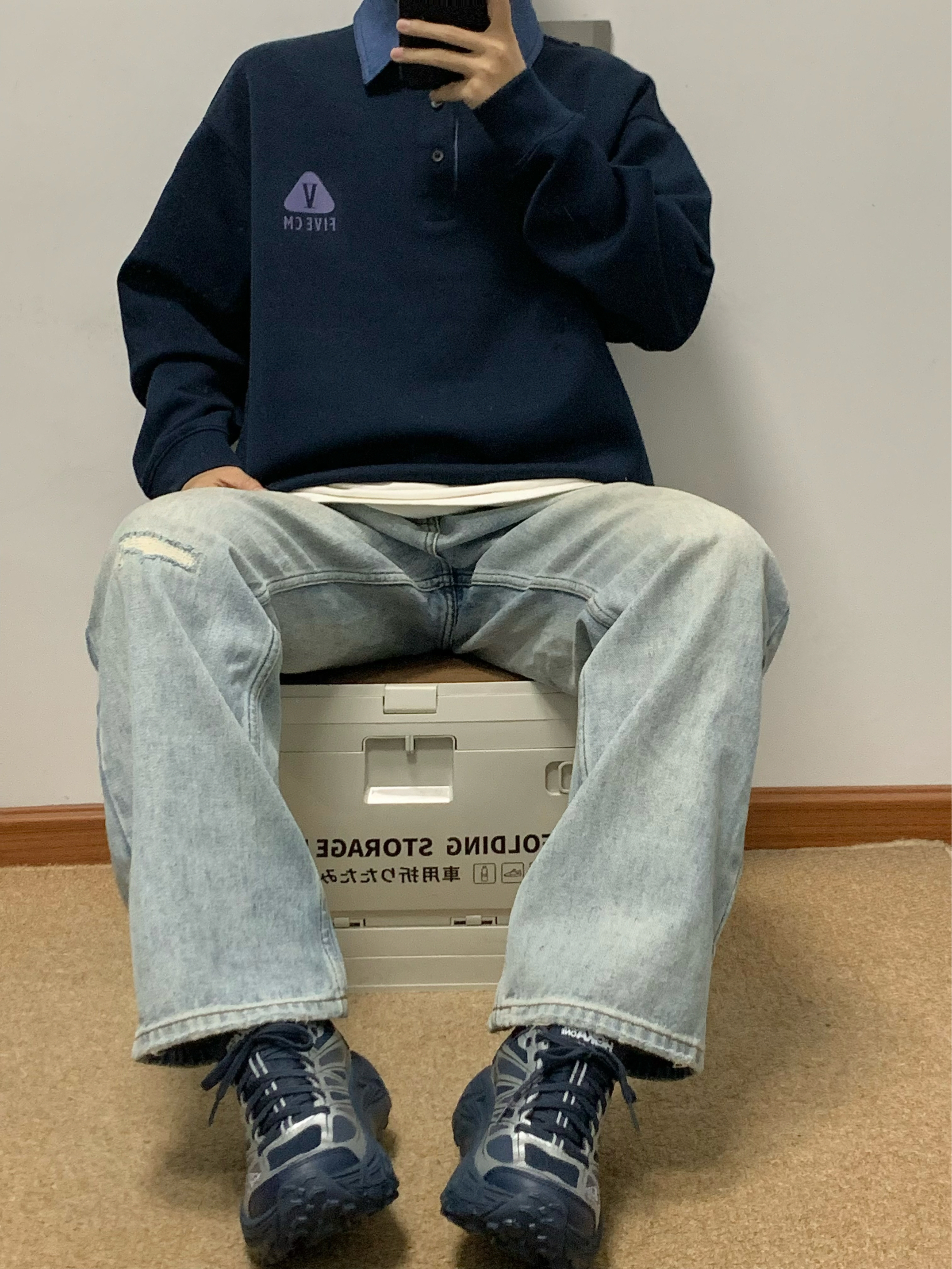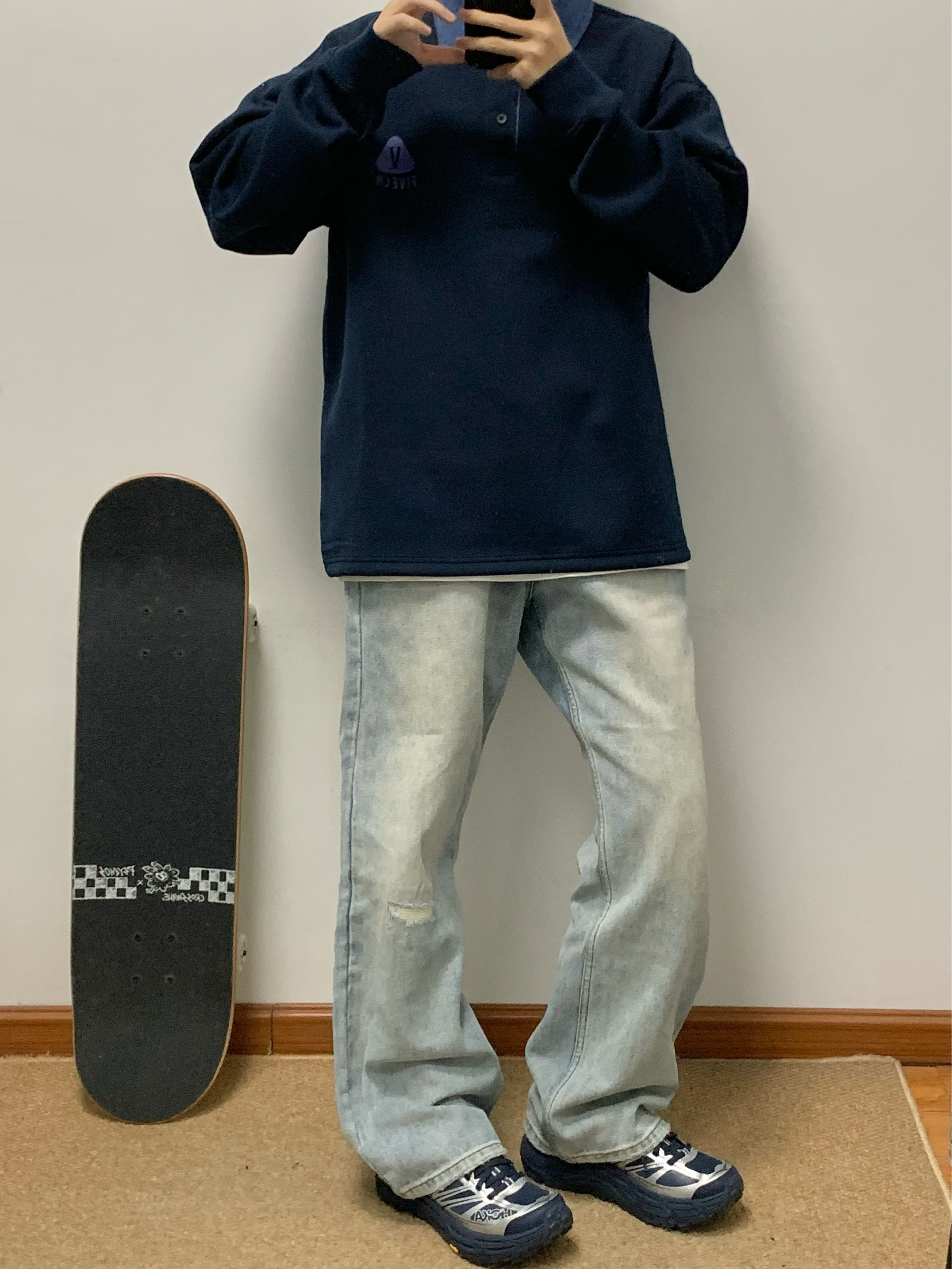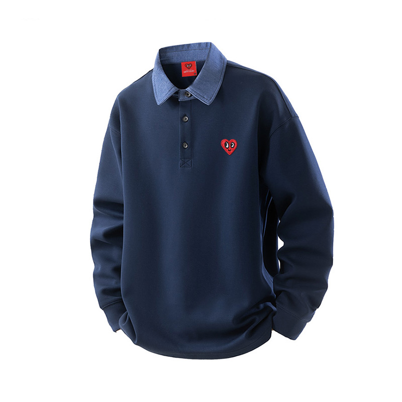 蓝色卫衣搭配蓝色牛仔裤 美式风拿捏 Polo领的撞色设计 很吸睛 面料软软糯糯的 穿起来很舒服 宽松的版型 不挑身材 入秋就穿这一身 包帅的!