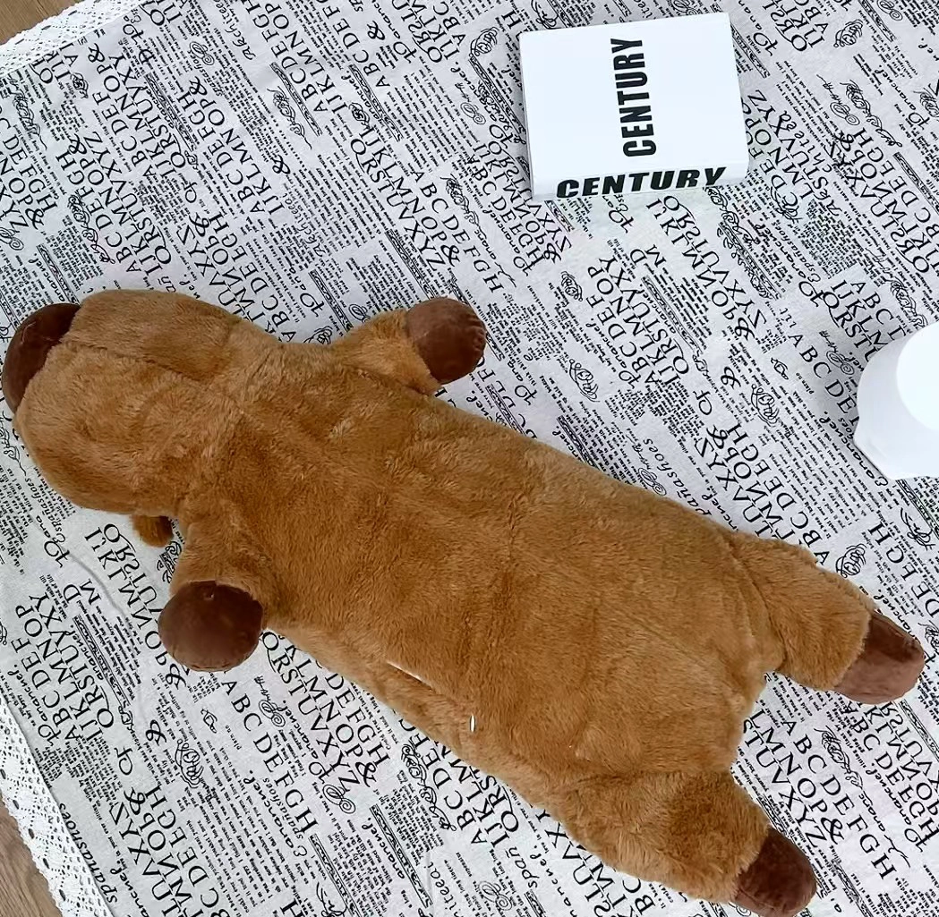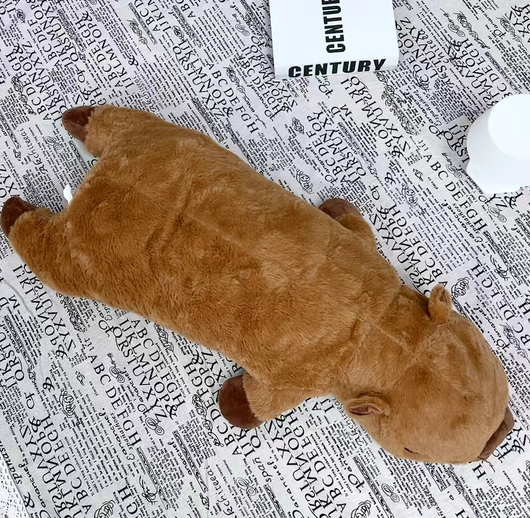 谁能拒绝卡皮巴拉啊!我发现这个趴姿抱枕真的好戳我~毛绒软乎乎的,摸起来像rua棉花糖一样,抱着追剧、午睡都特舒服🥰 造型就是卡皮巴拉经典躺平姿势,摆家里还特治愈,感觉焦虑都被它‘传染’没了!