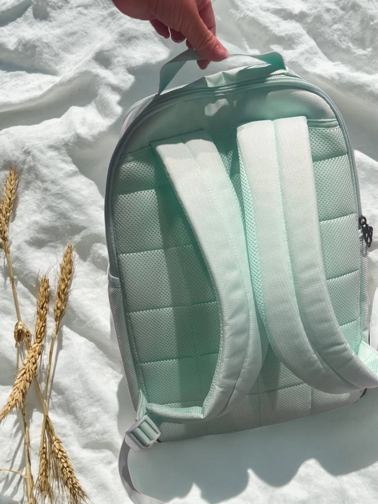 我入了个薄荷绿双肩包,配白色大勾子好清爽~帆布材质软乎乎的,容量也够能装!充电宝、湿巾、防晒都能塞,旅游装吃的也ok~就是背带久了有点勒肩,但日常上学通勤背背还挺香🥳